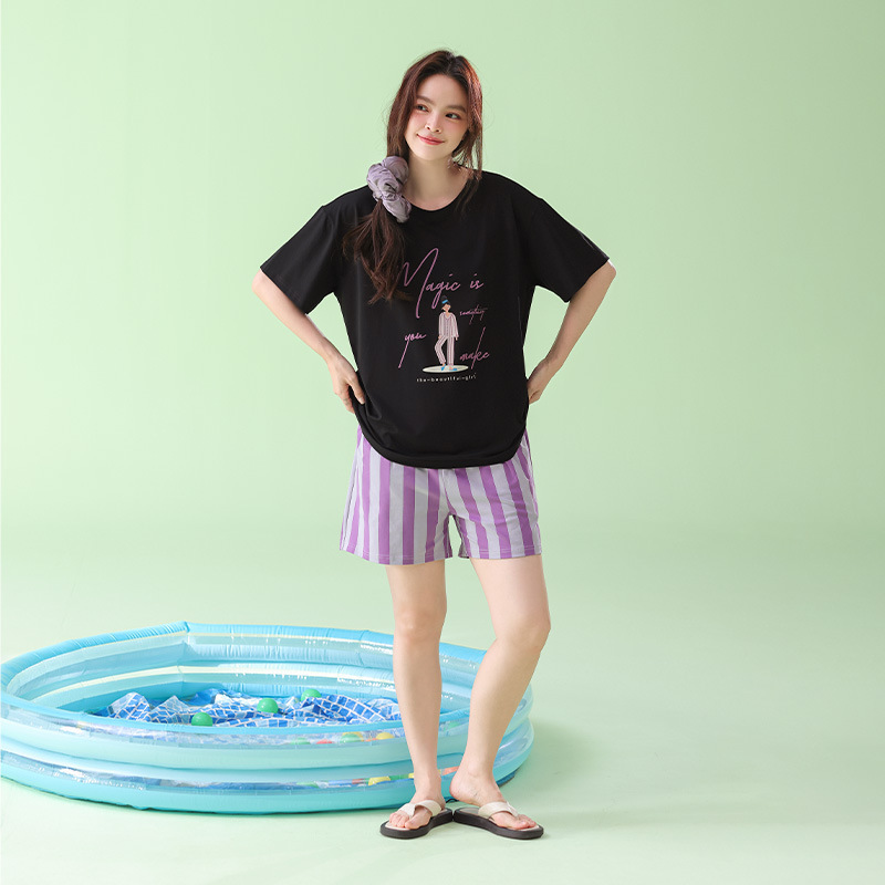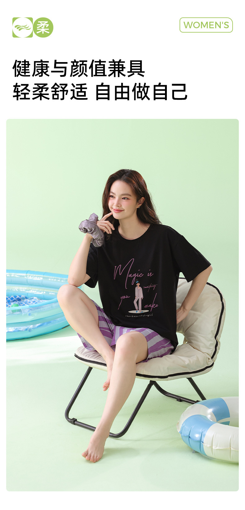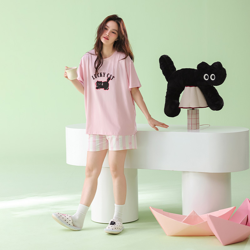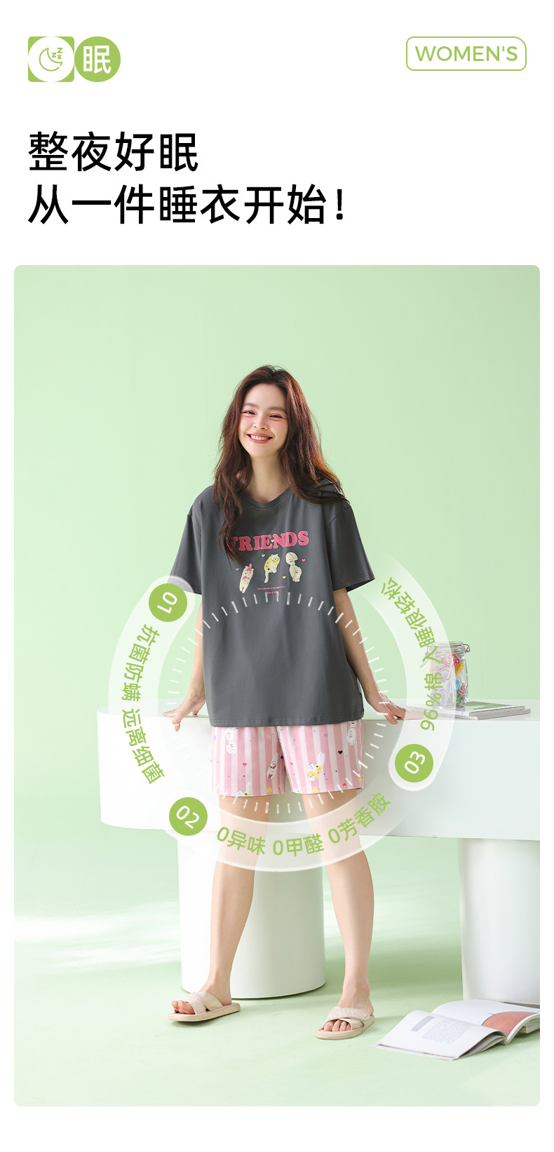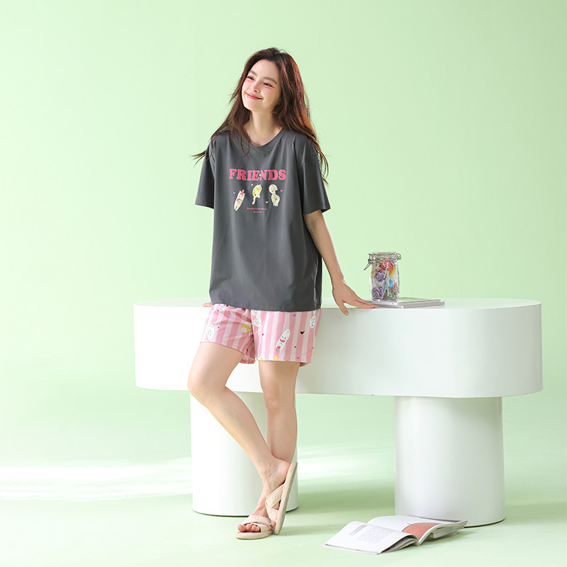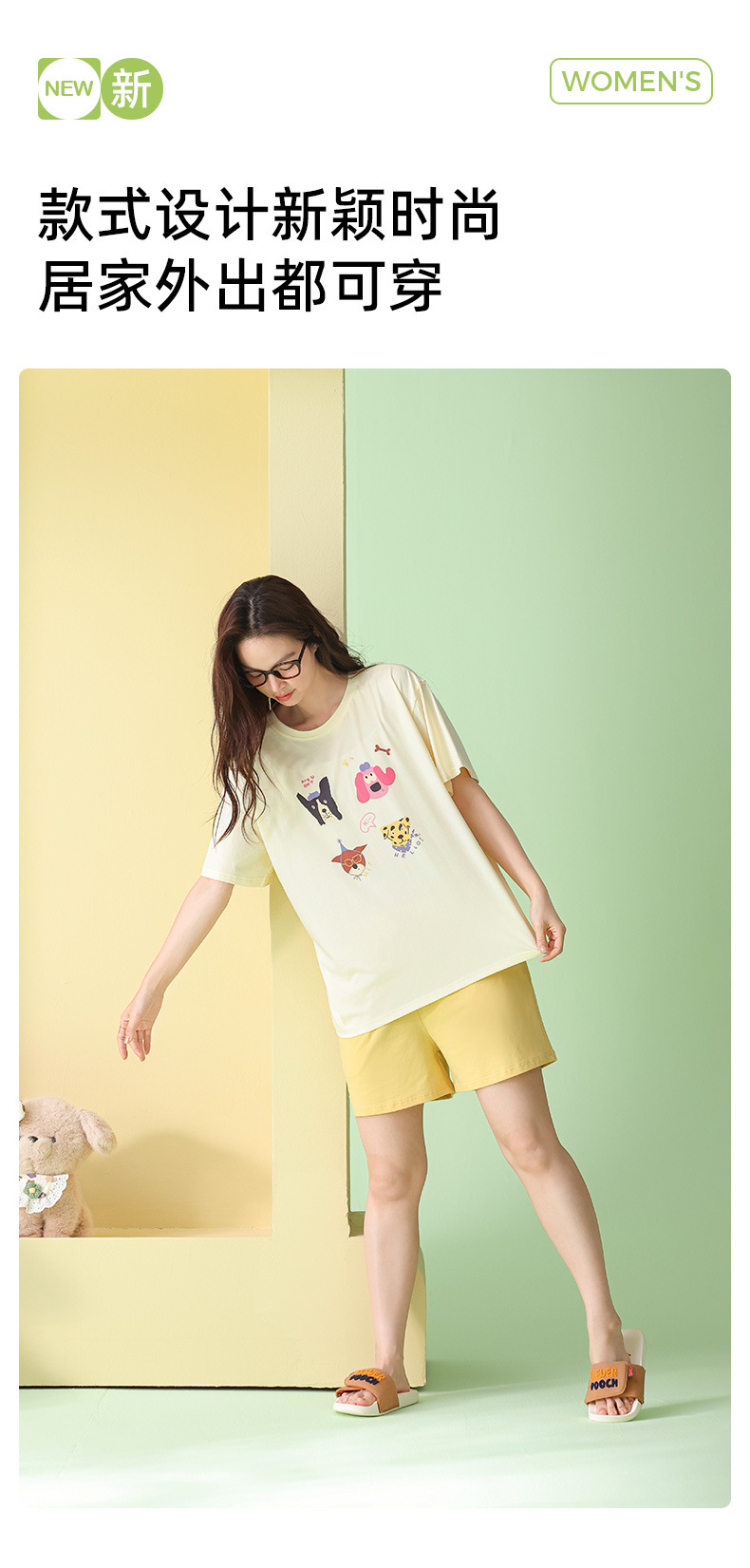 [항균성 신장면] A 급 여름 반소매 잠옷 여성면 고급 세트 홈웨어스토어 가기