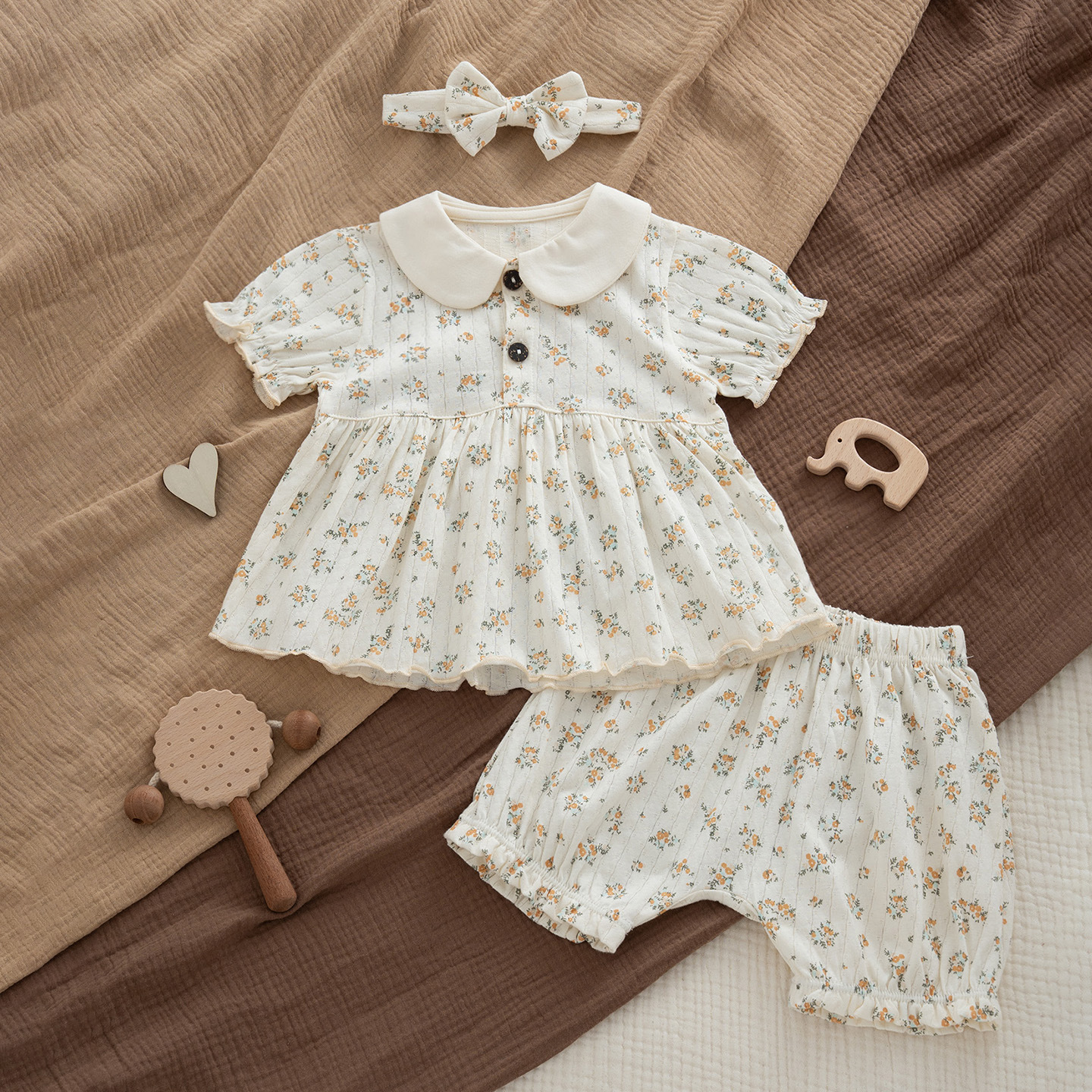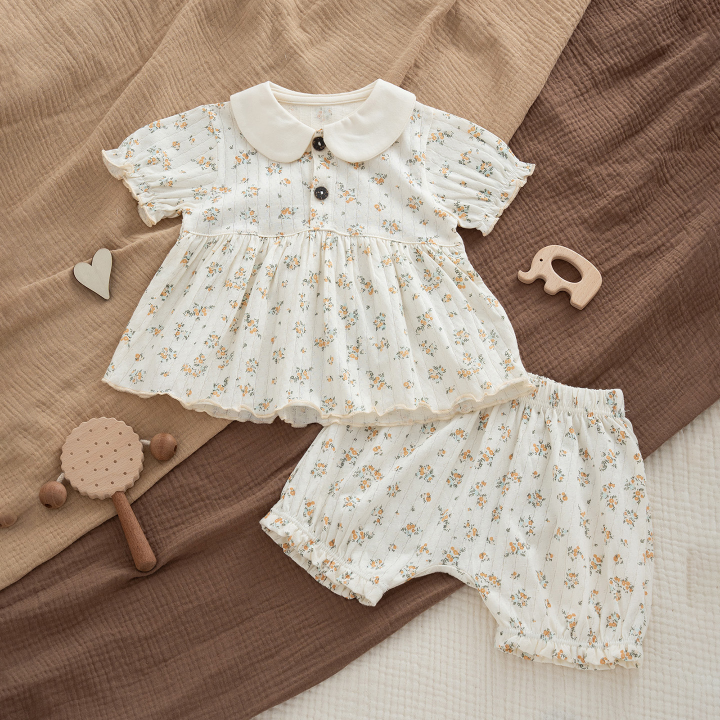 아기 소녀 여름 초박형 귀여운 작은 꽃 분할 세트 공주 1 세 순면 반팔 반바지