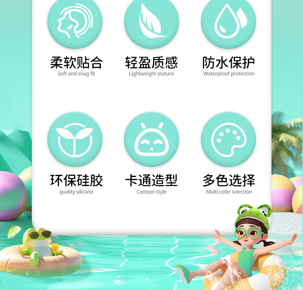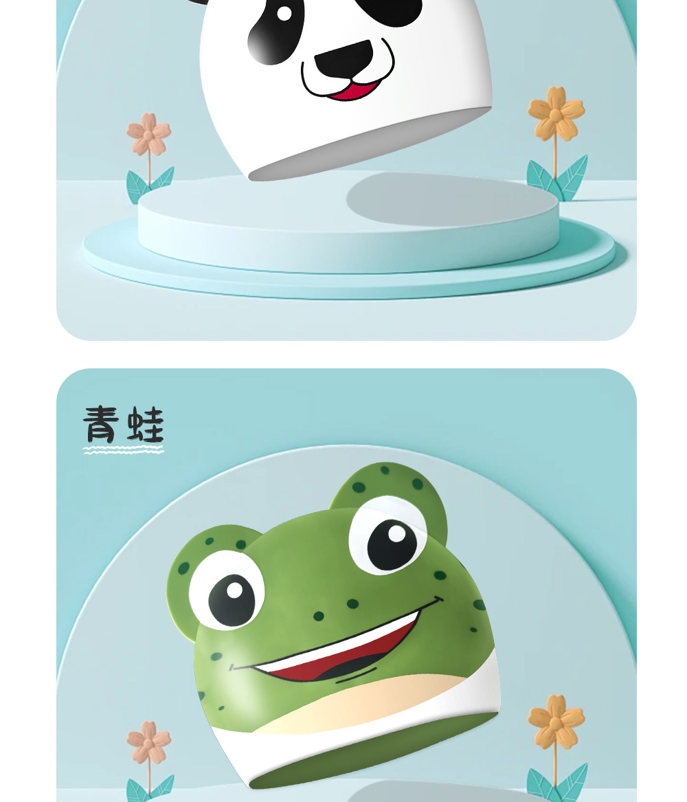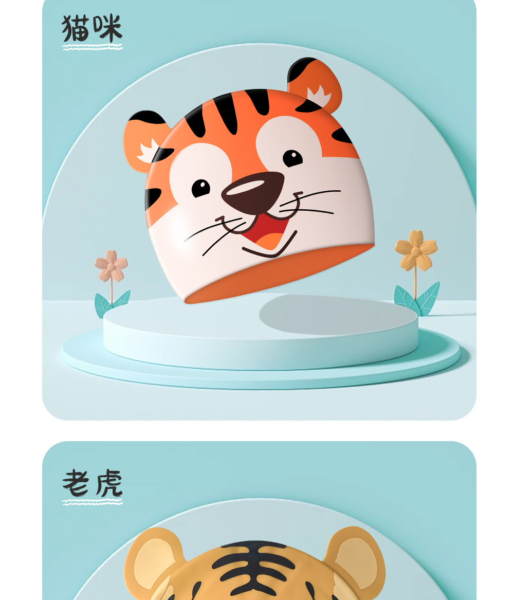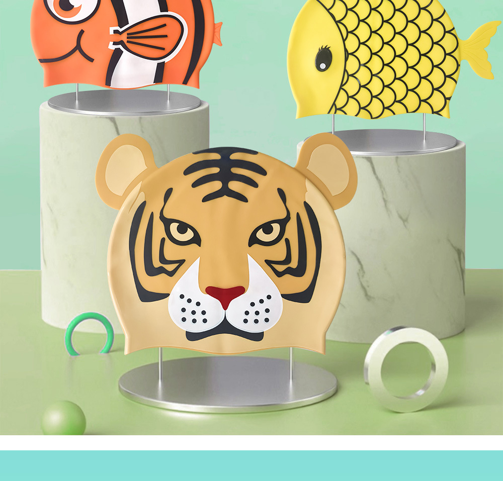 어린이 수영 모자 귀 보호 소녀와 소년을위한 실리콘 방수 수영 모자 만화 전문 아기의 긴 머리 편안한 수영 모자