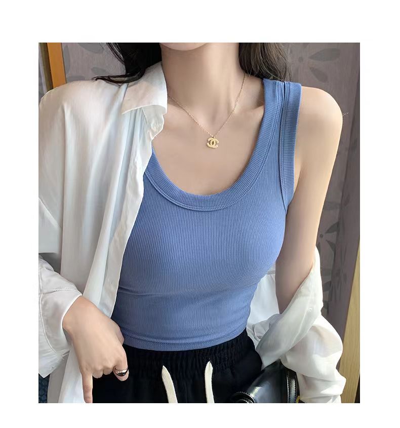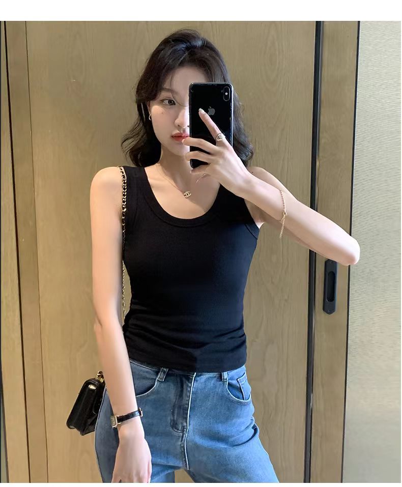 동대문 한국 조끼 라운드 넥 민소매 노출 방지 내부 및 외부 착용 가슴 커버 슬림 피트 아름다운 등 순면 조끼 여성용스토어 가기