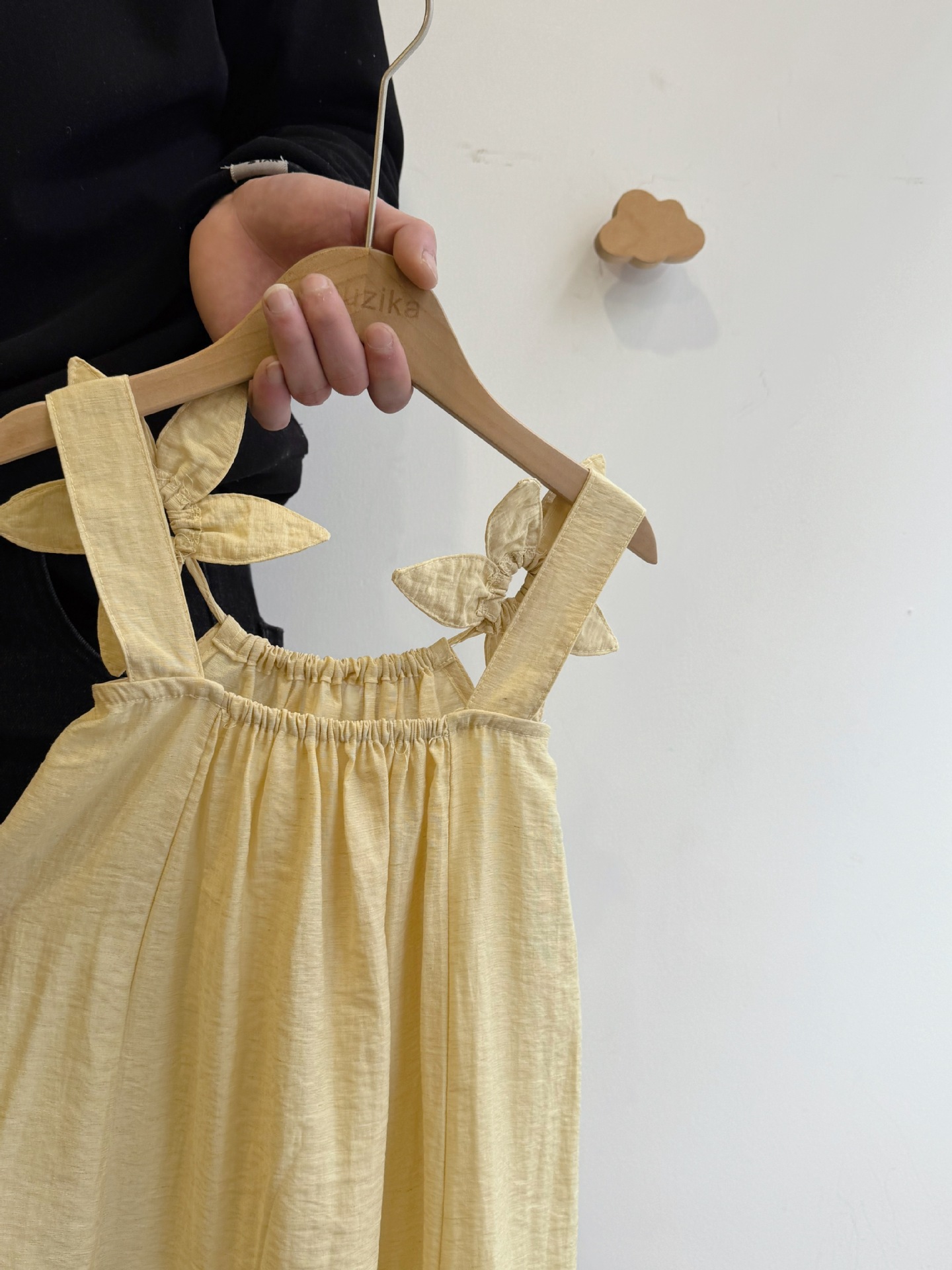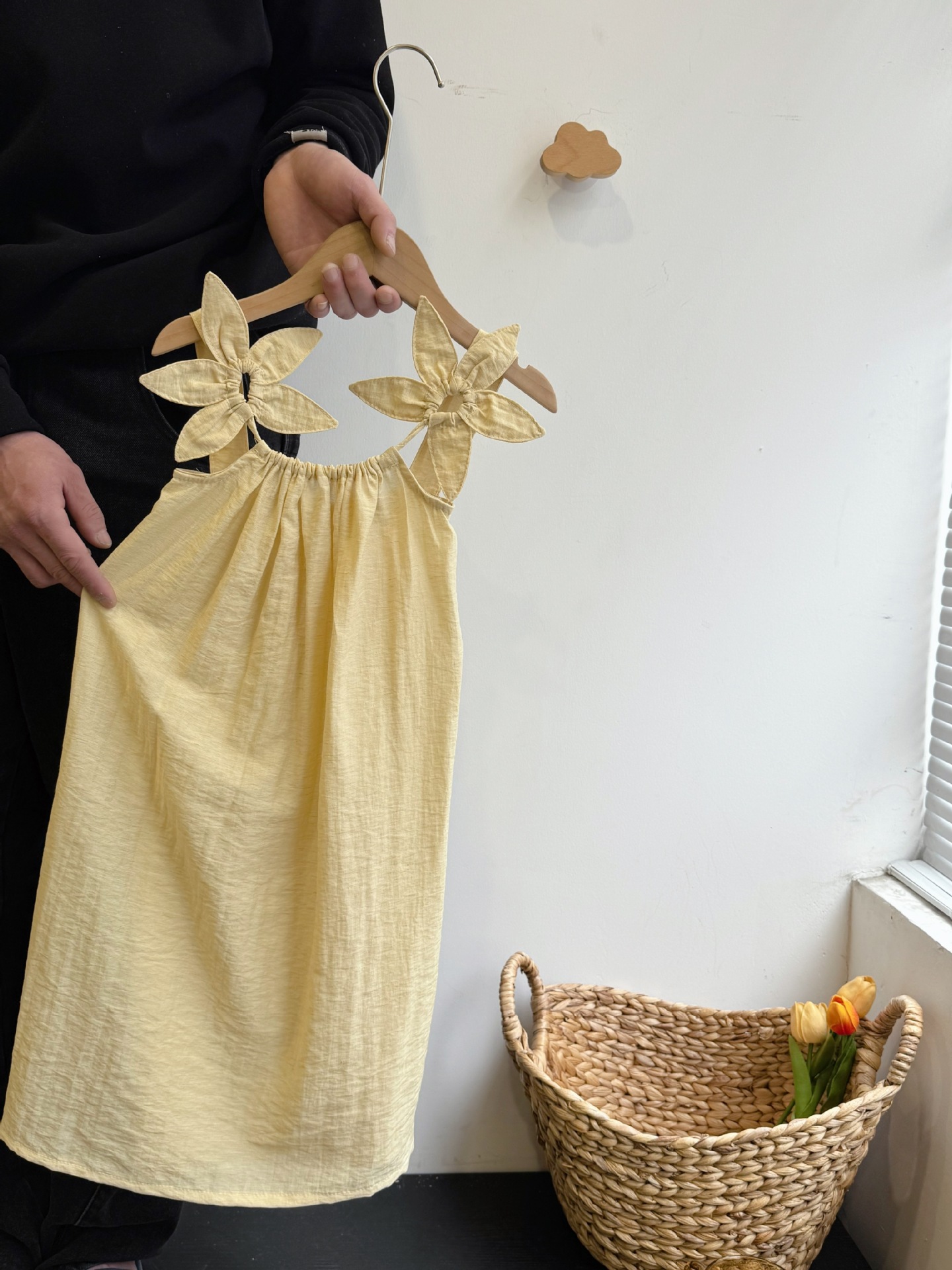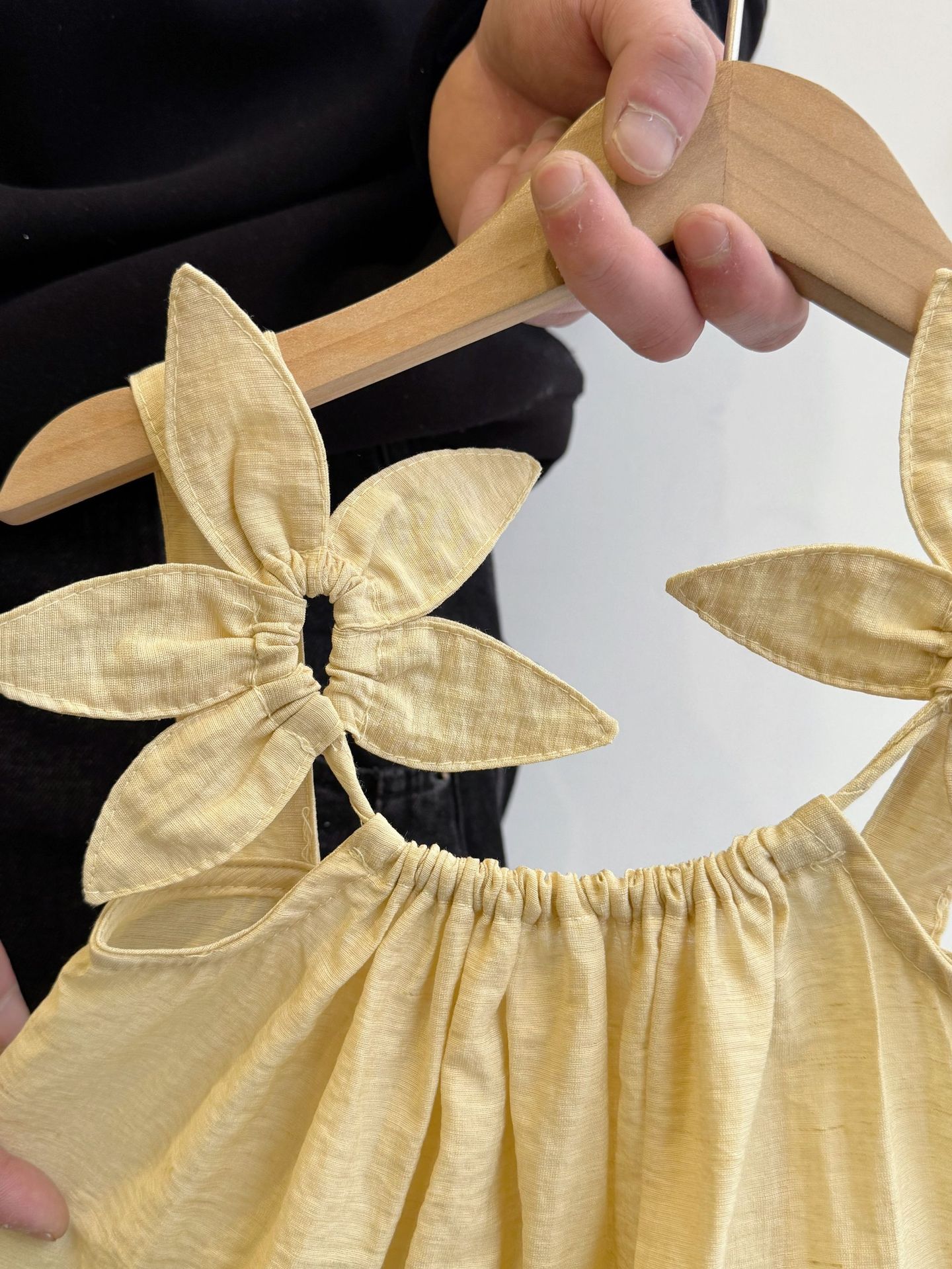 女童连衣裙2026春夏新款黄色背心裙韩系时髦女孩法式挂脖花苞裙