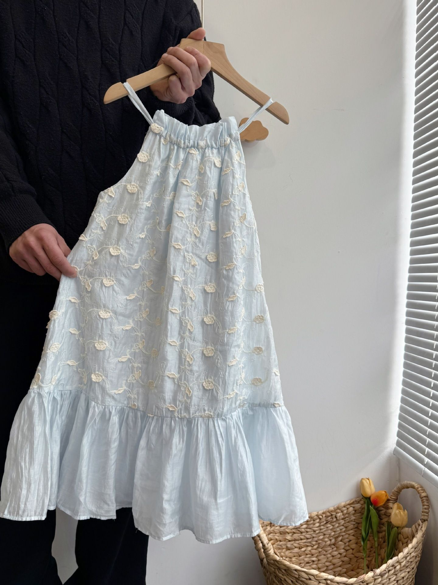 2026 여아용 드레스 봄 여름 꽃잎 스트랩 롱 드레스 여아용 해변 휴가 드레스 린넨 질감 드레스스토어 가기