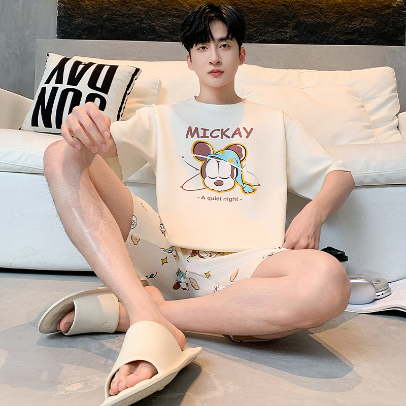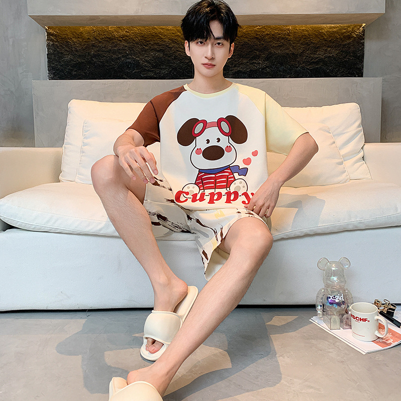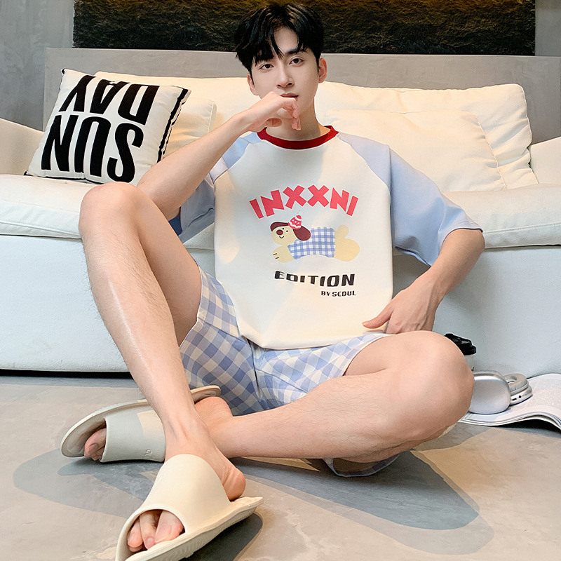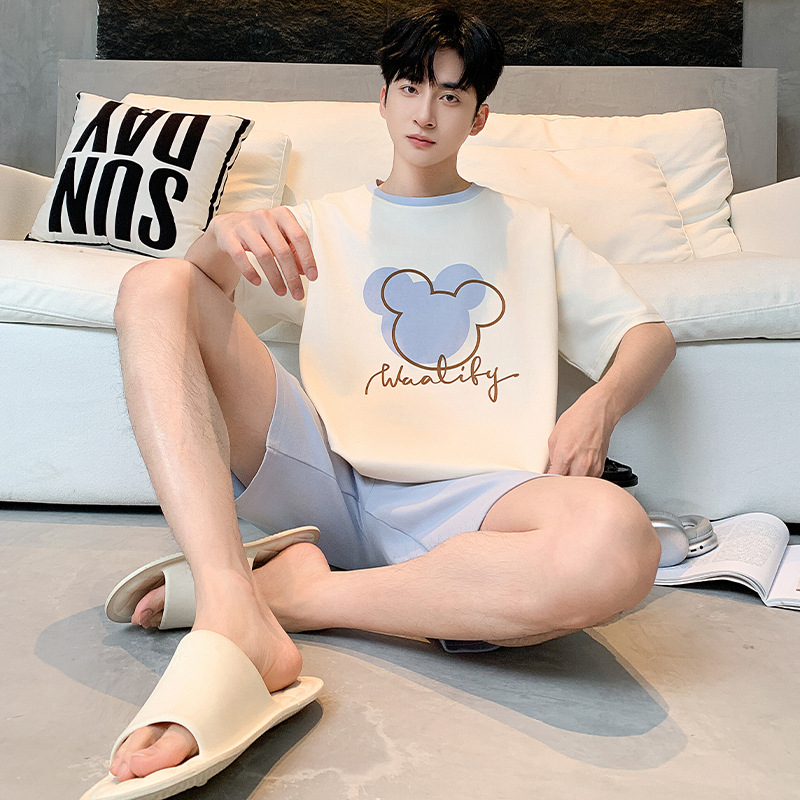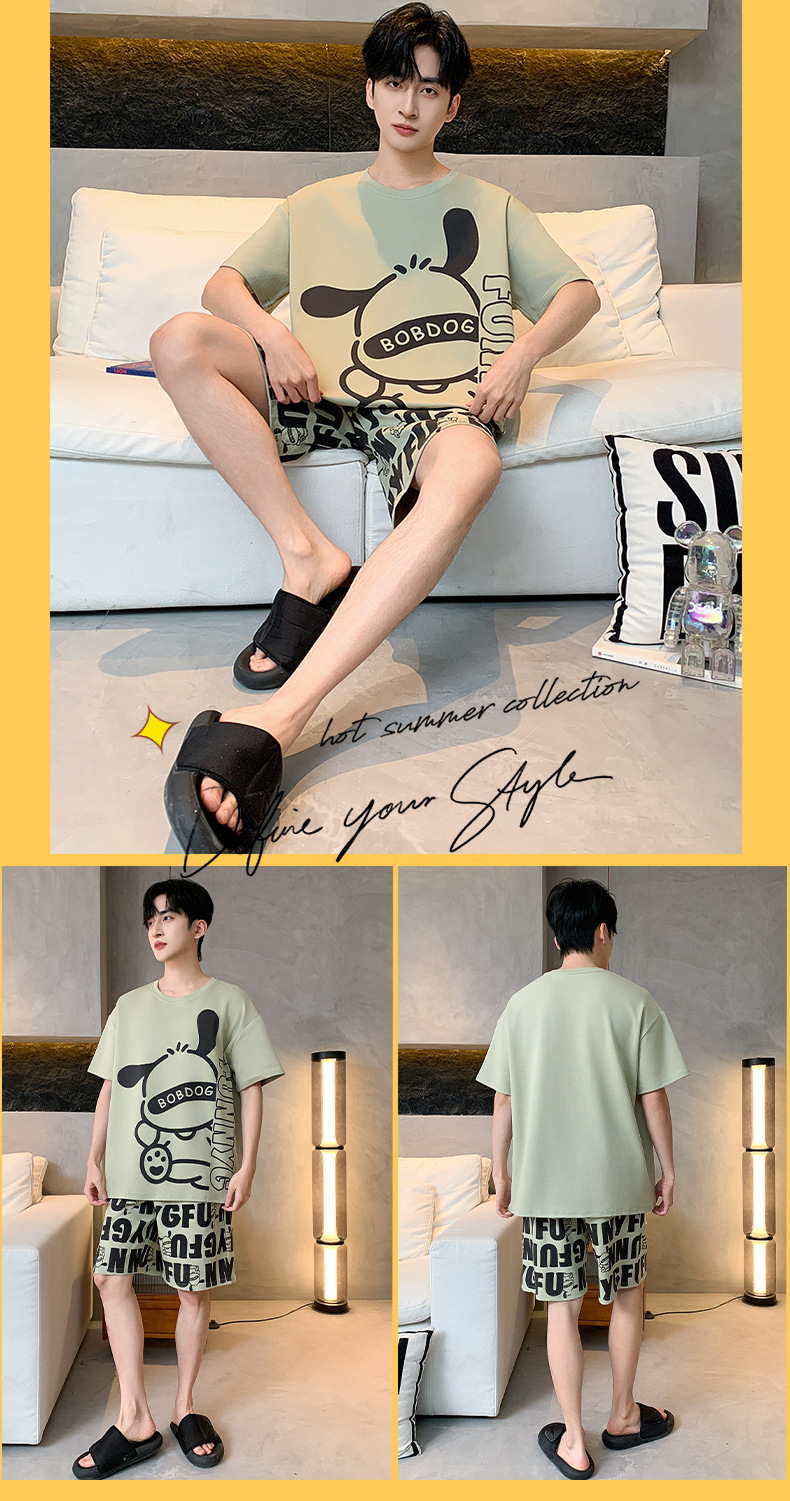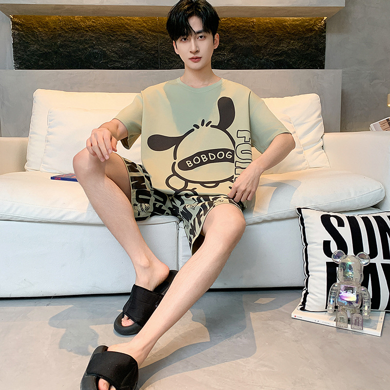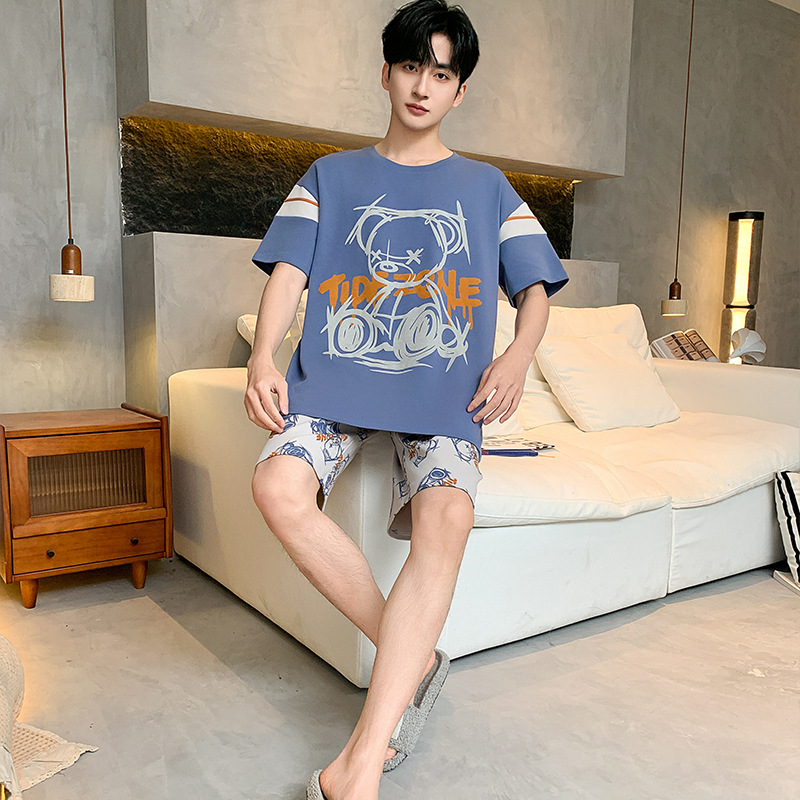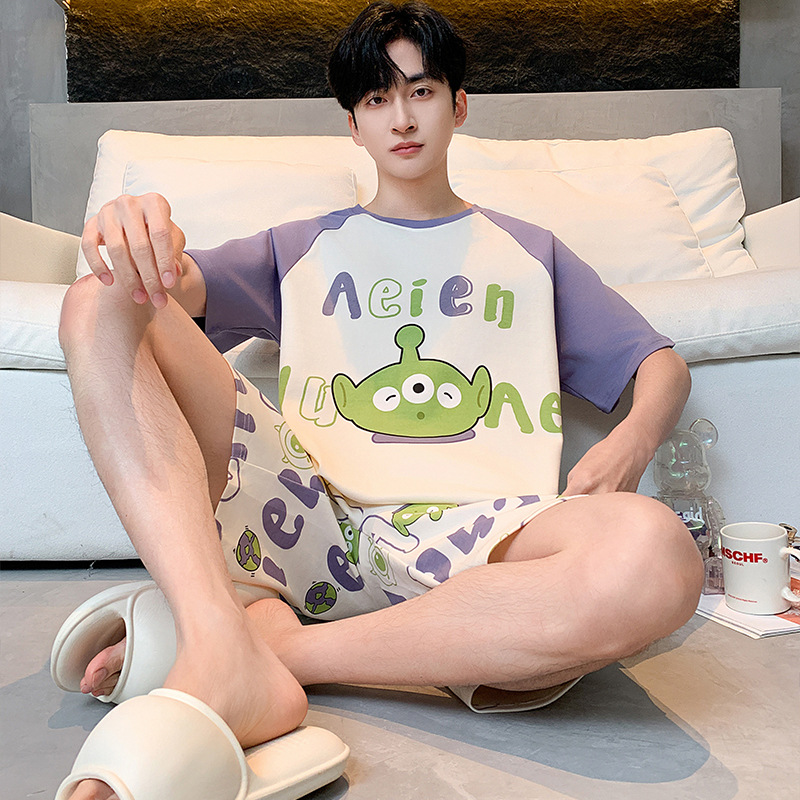 남성용 잠옷 여름 순수 코튼 반팔 만화 얇은 소년 남성 플러스 사이즈 청소년 새 홈웨어스토어 가기