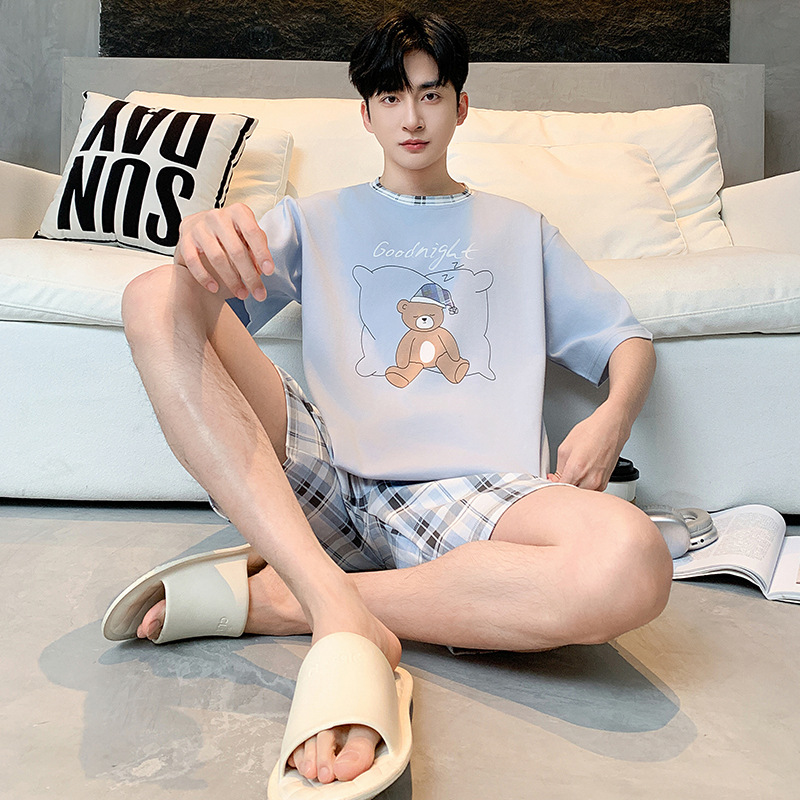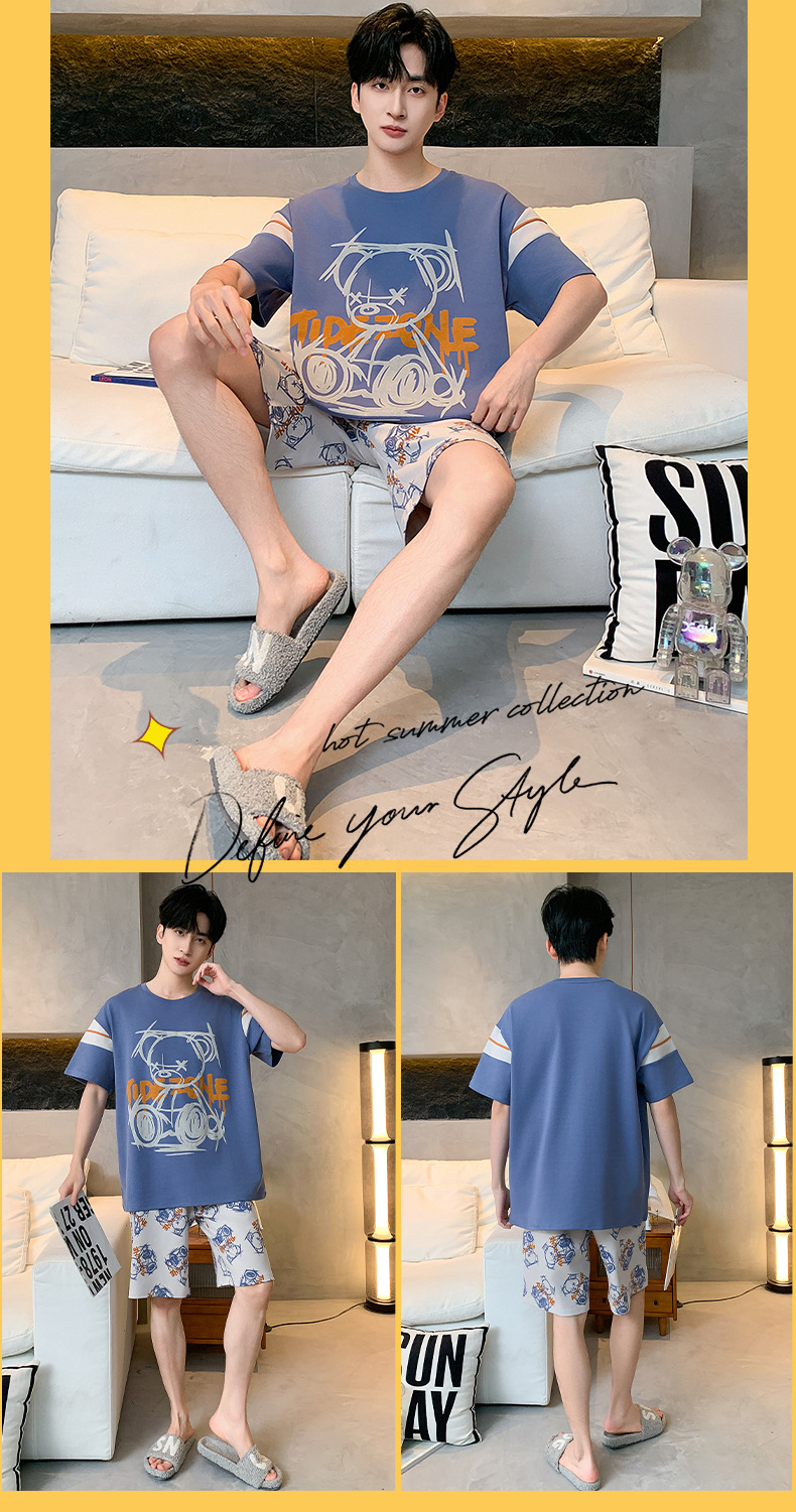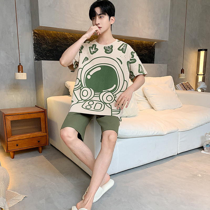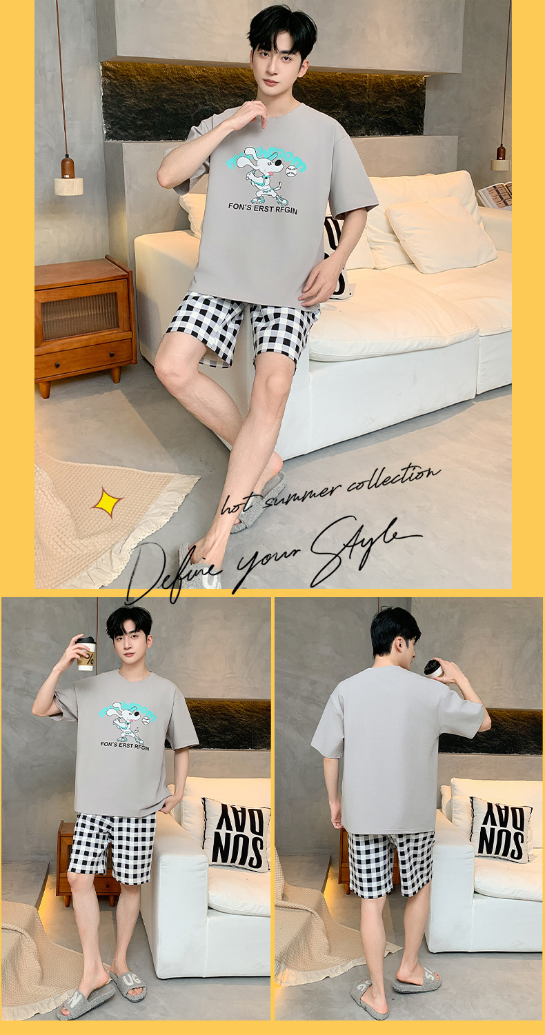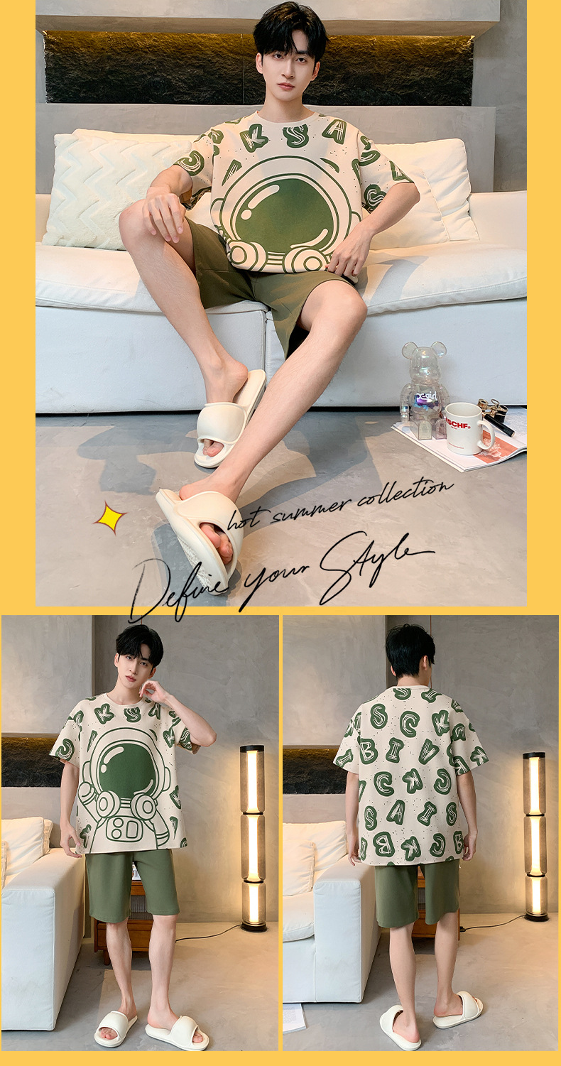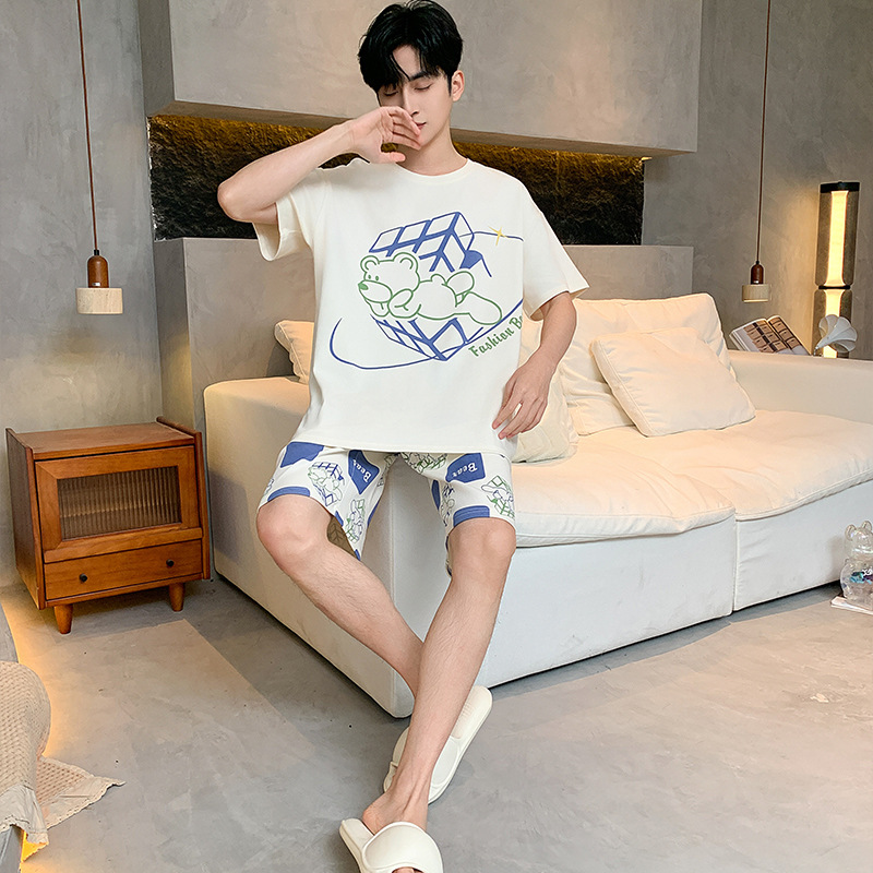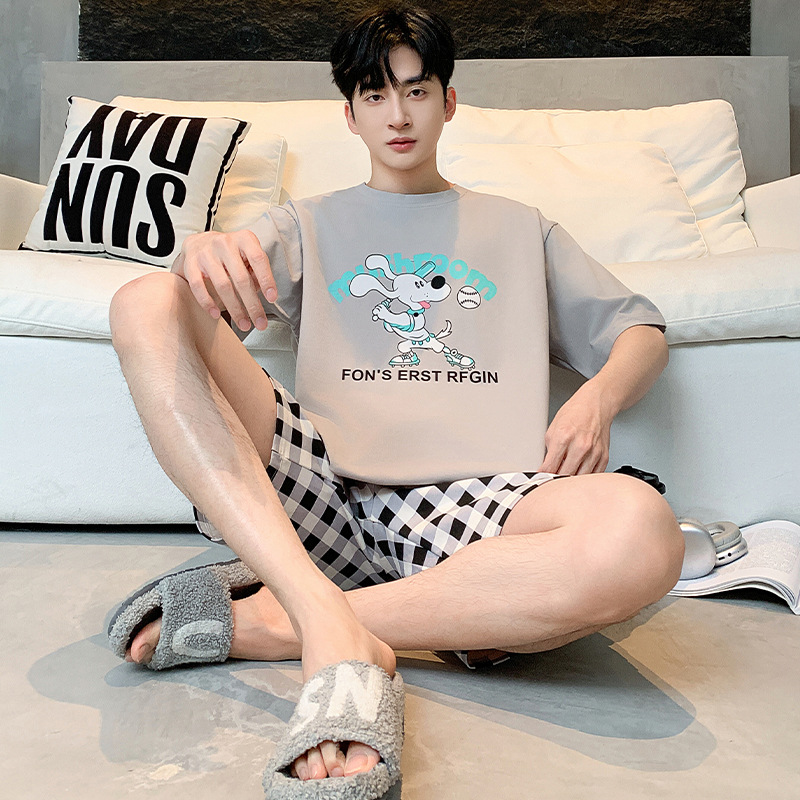 남성용 잠옷 여름 순수 코튼 반팔 만화 얇은 소년 남성 플러스 사이즈 청소년 새 홈웨어스토어 가기