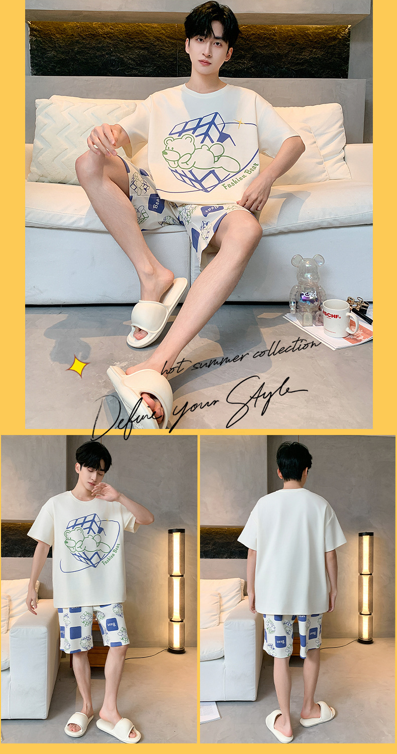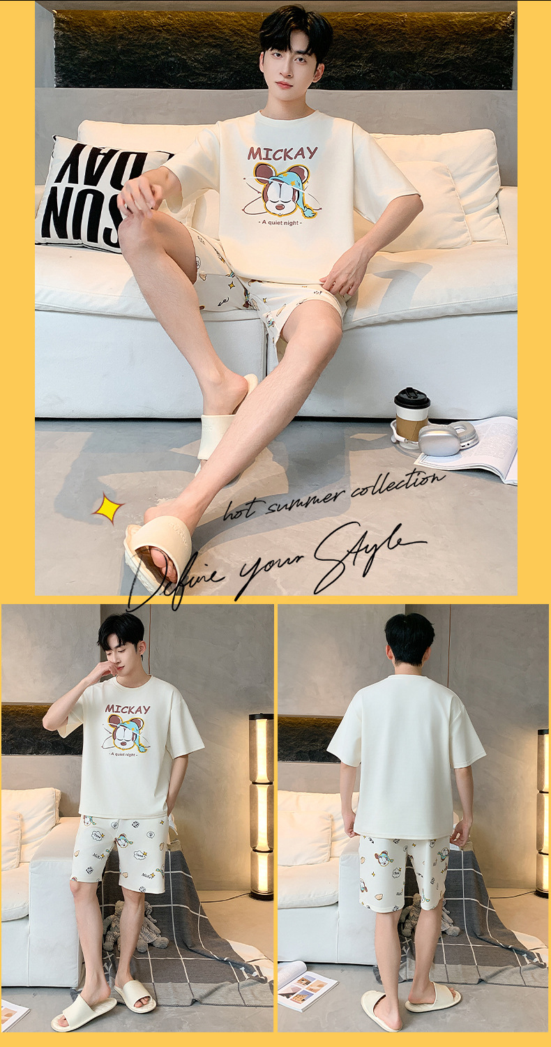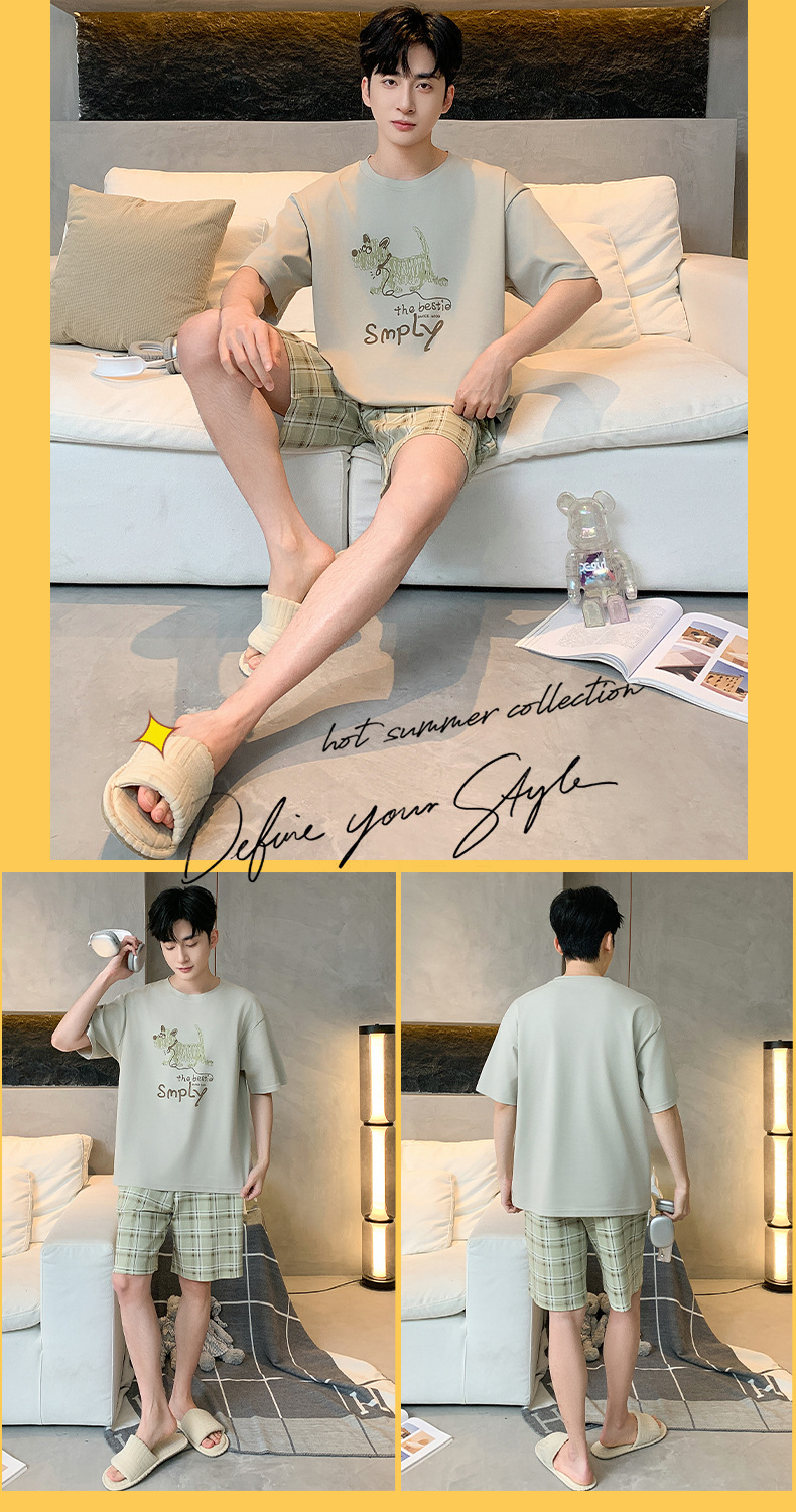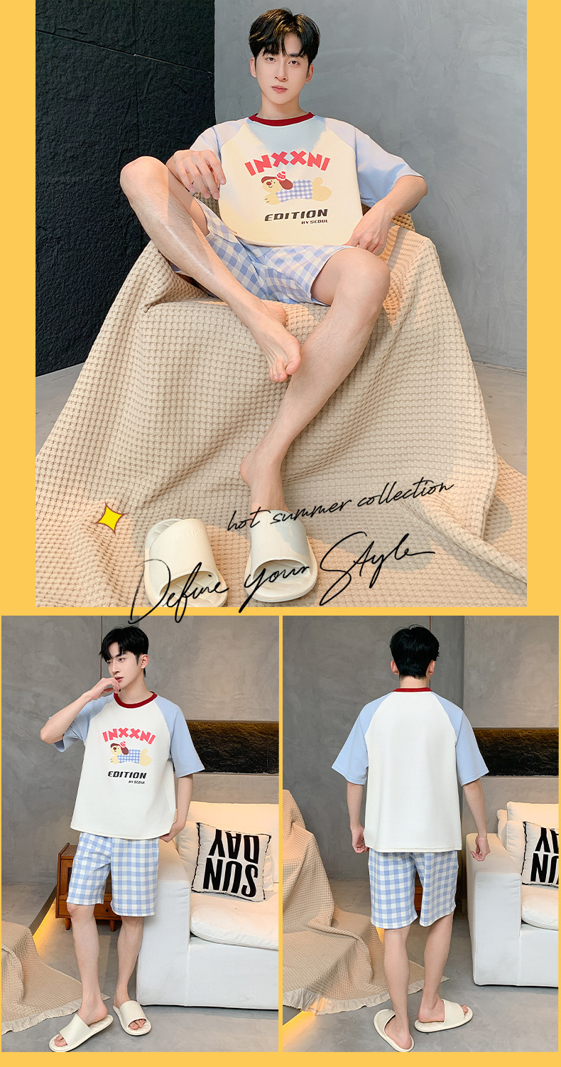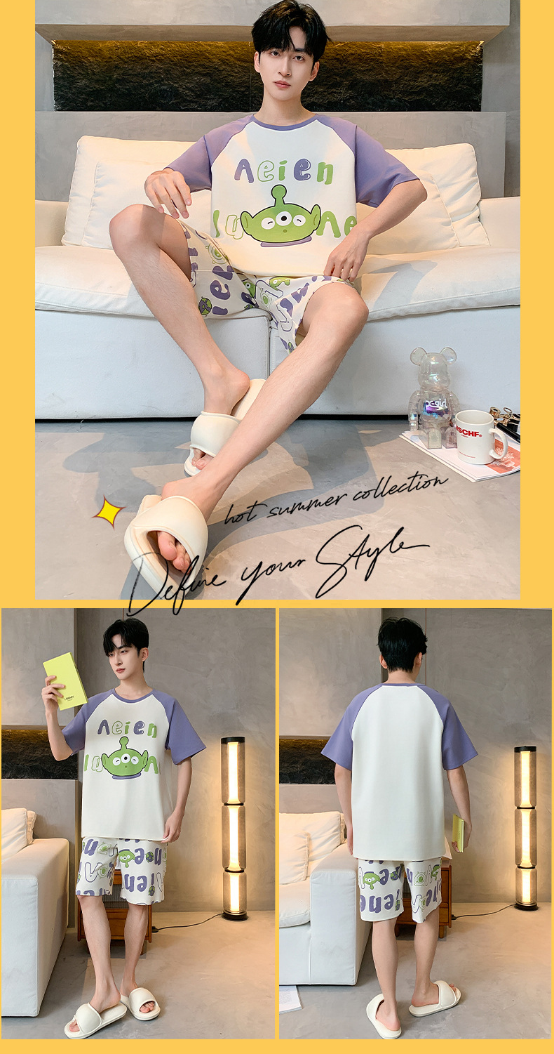 남성용 잠옷 여름 순수 코튼 반팔 만화 얇은 소년 남성 플러스 사이즈 청소년 새 홈웨어스토어 가기