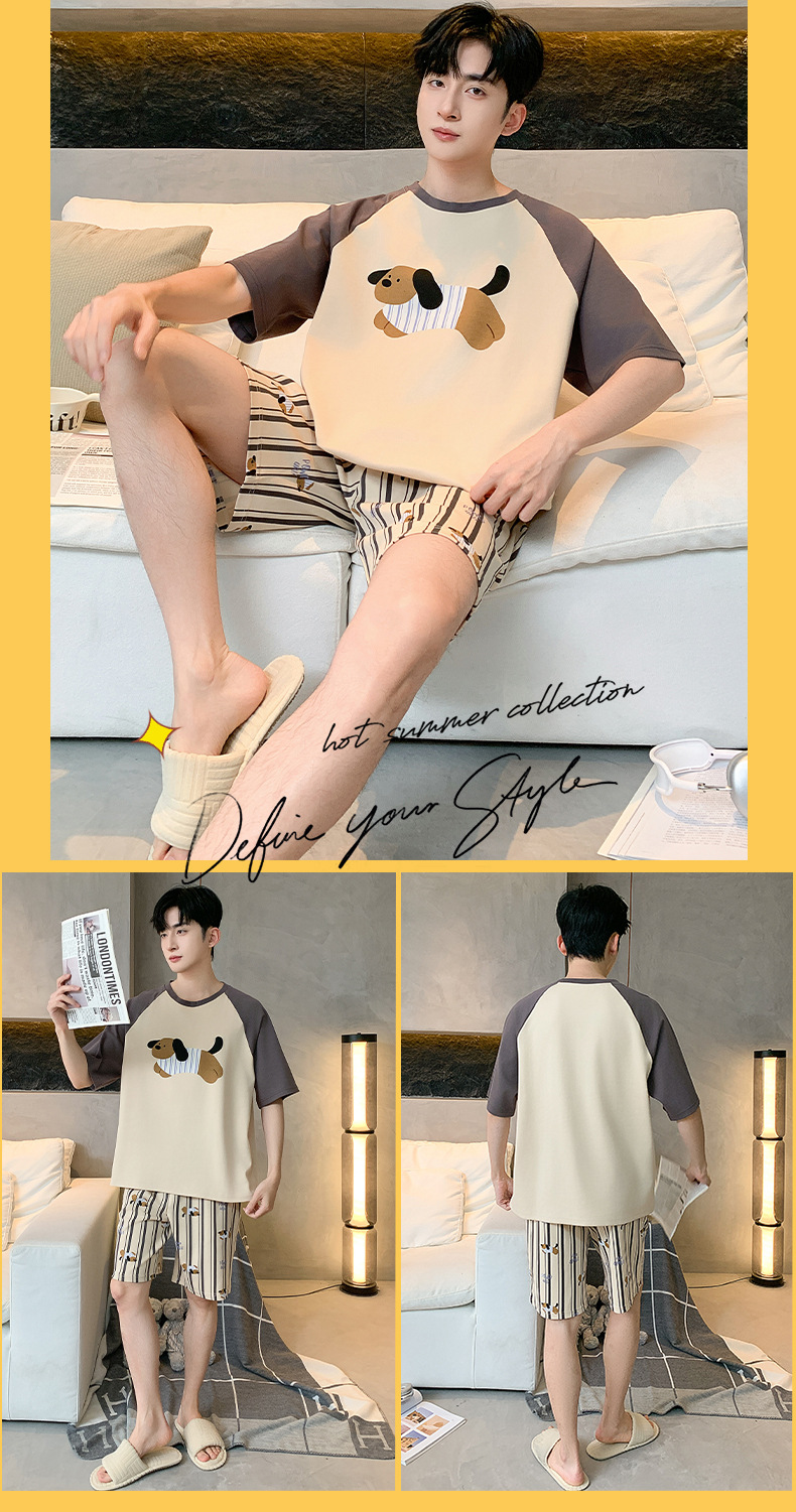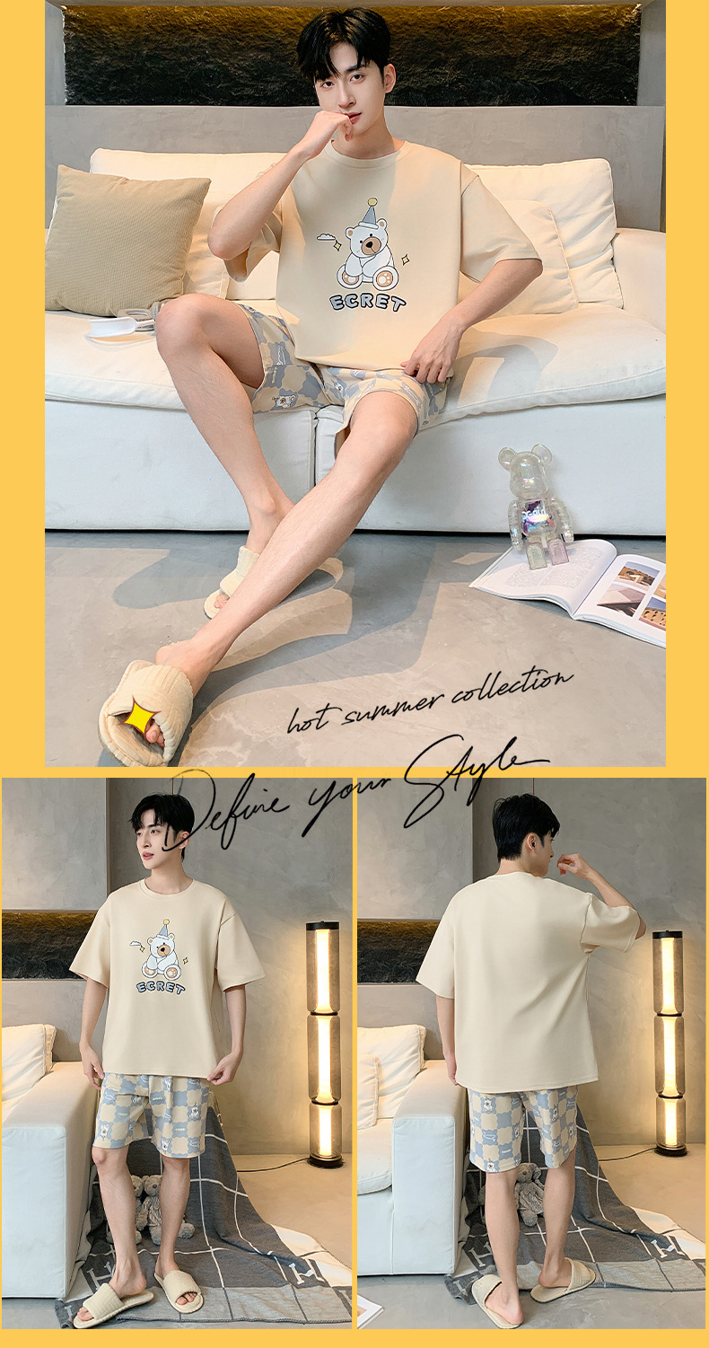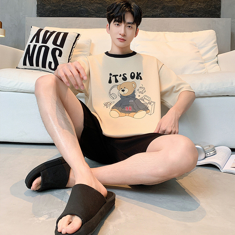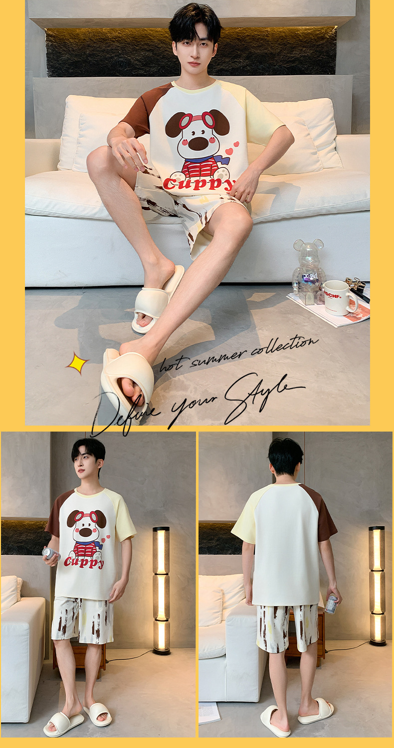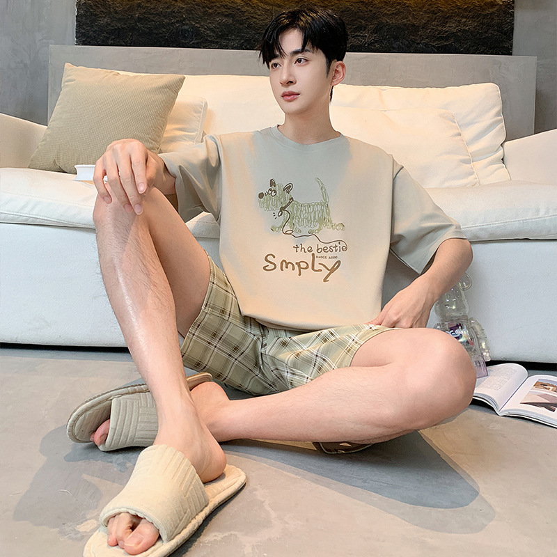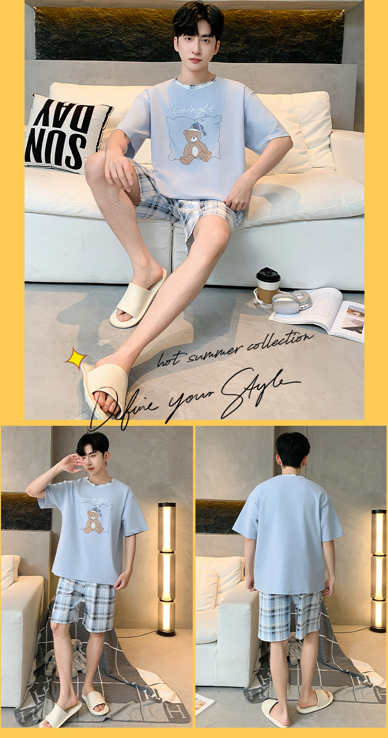 남성용 잠옷 여름 순수 코튼 반팔 만화 얇은 소년 남성 플러스 사이즈 청소년 새 홈웨어스토어 가기