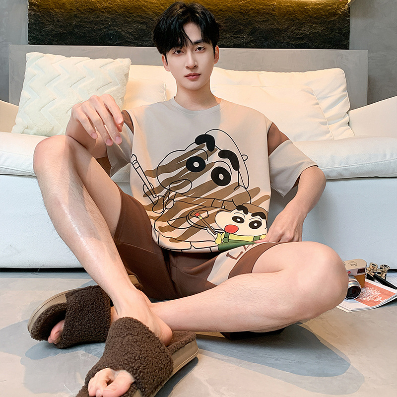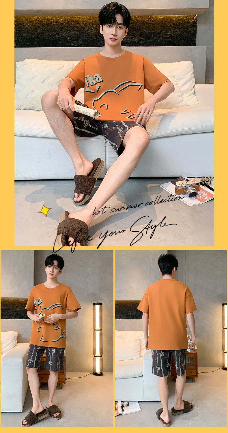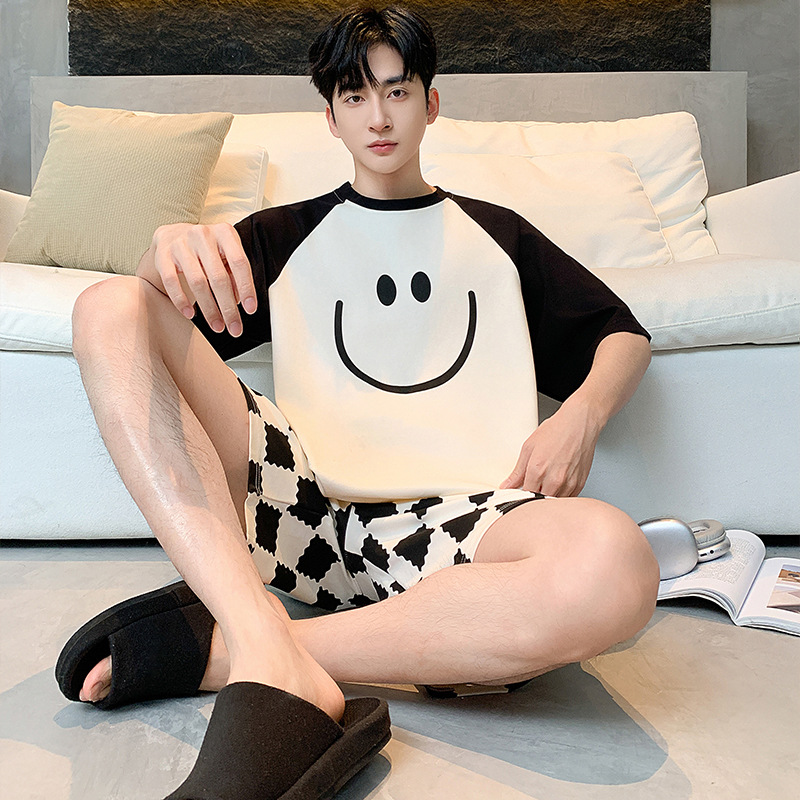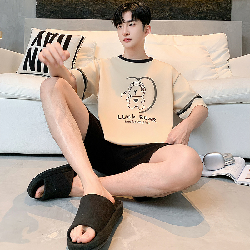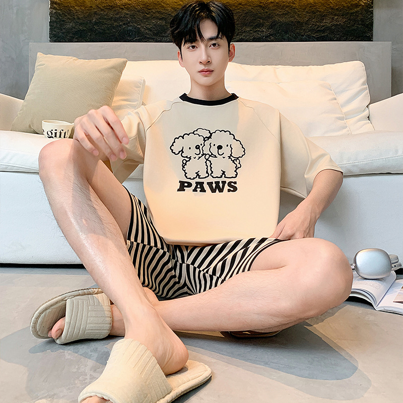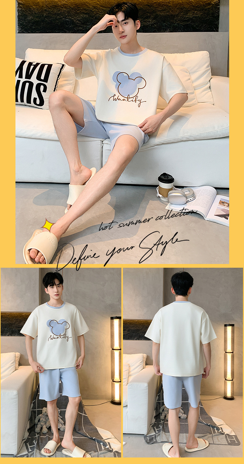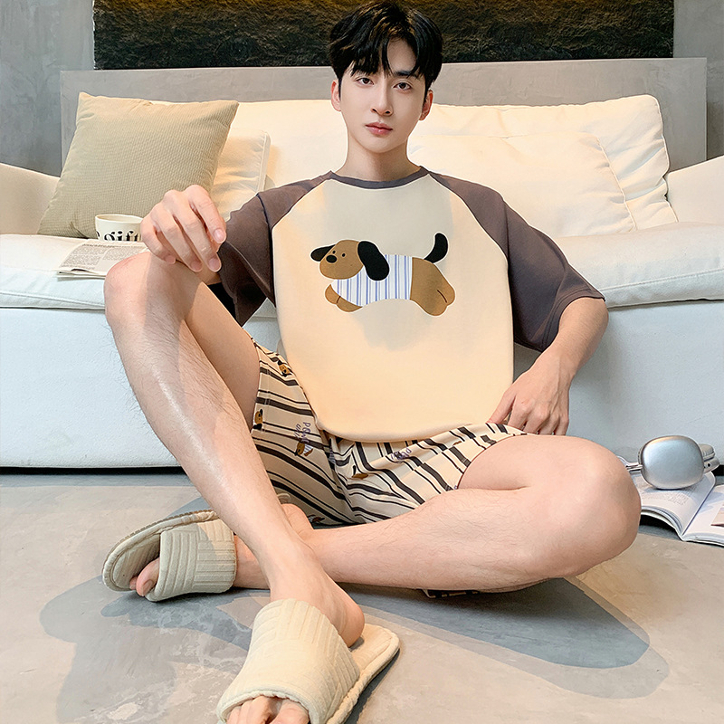 남성용 잠옷 여름 순수 코튼 반팔 만화 얇은 소년 남성 플러스 사이즈 청소년 새 홈웨어스토어 가기