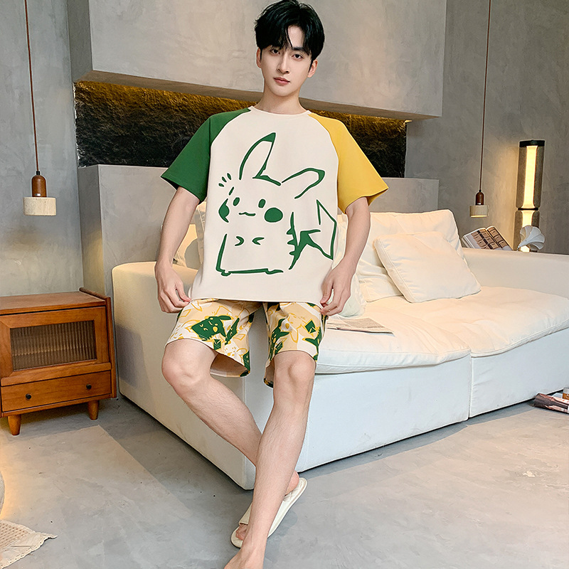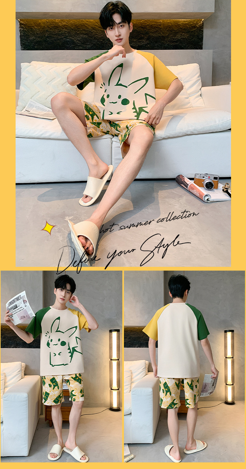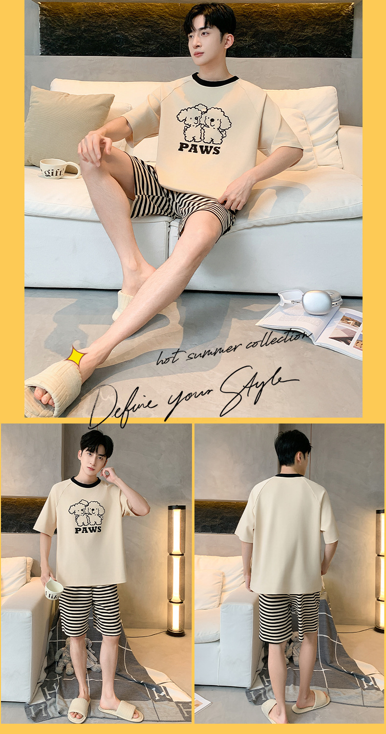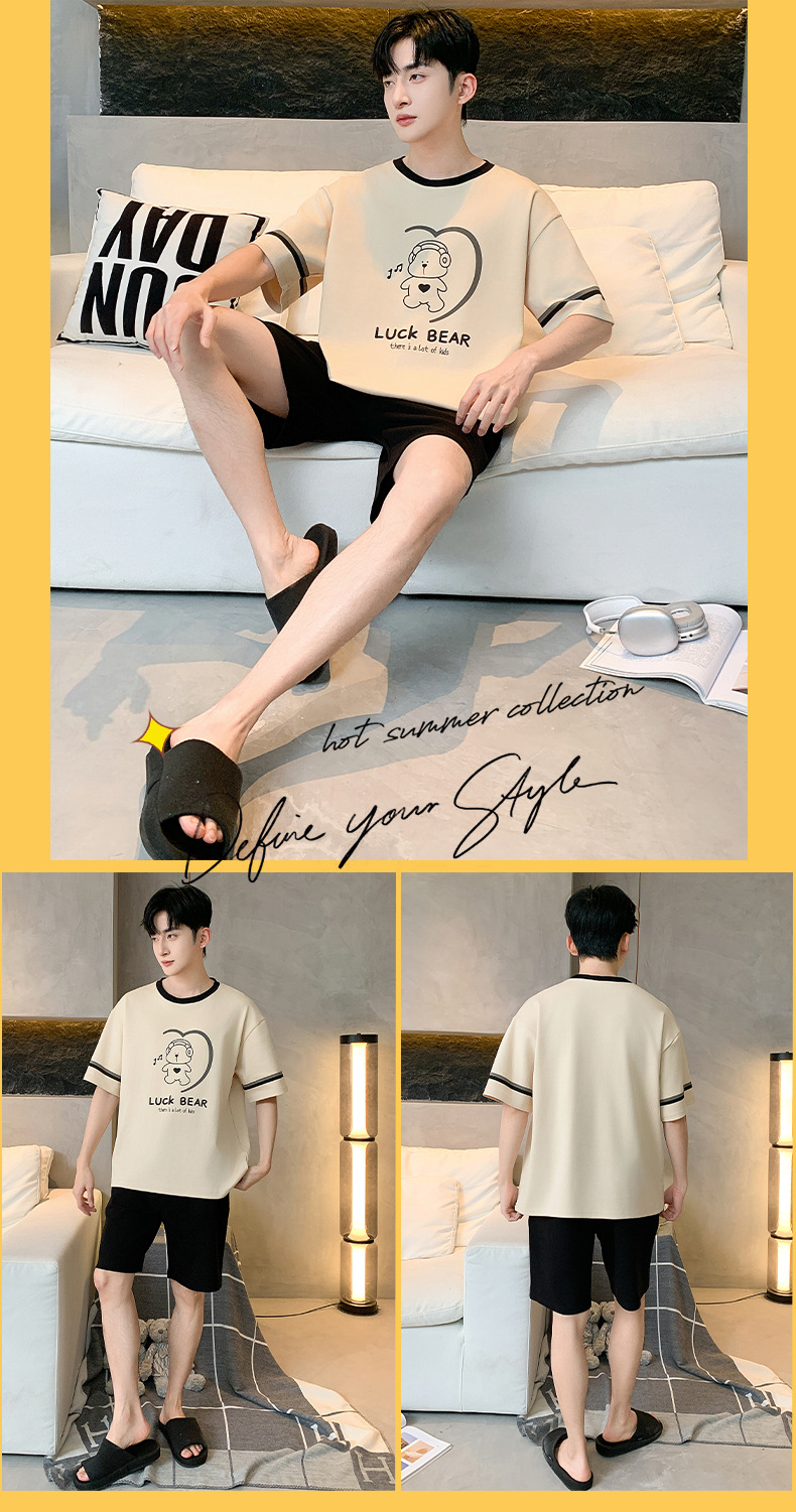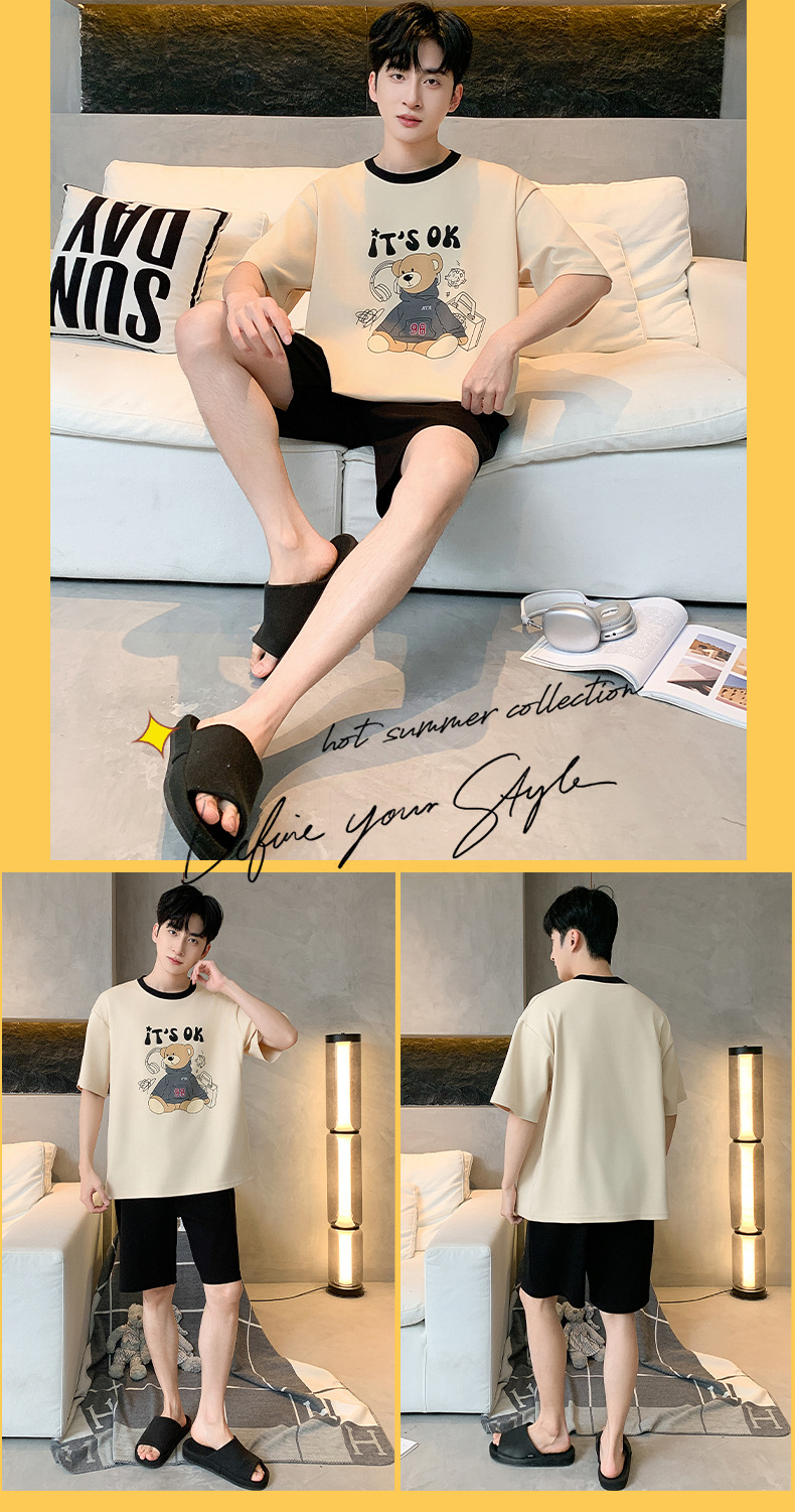남성용 잠옷 여름 순수 코튼 반팔 만화 얇은 소년 남성 플러스 사이즈 청소년 새 홈웨어스토어 가기