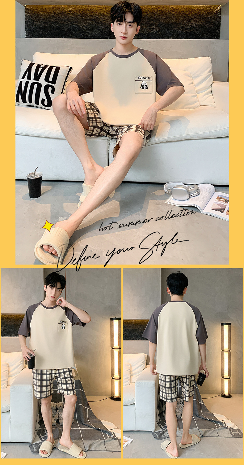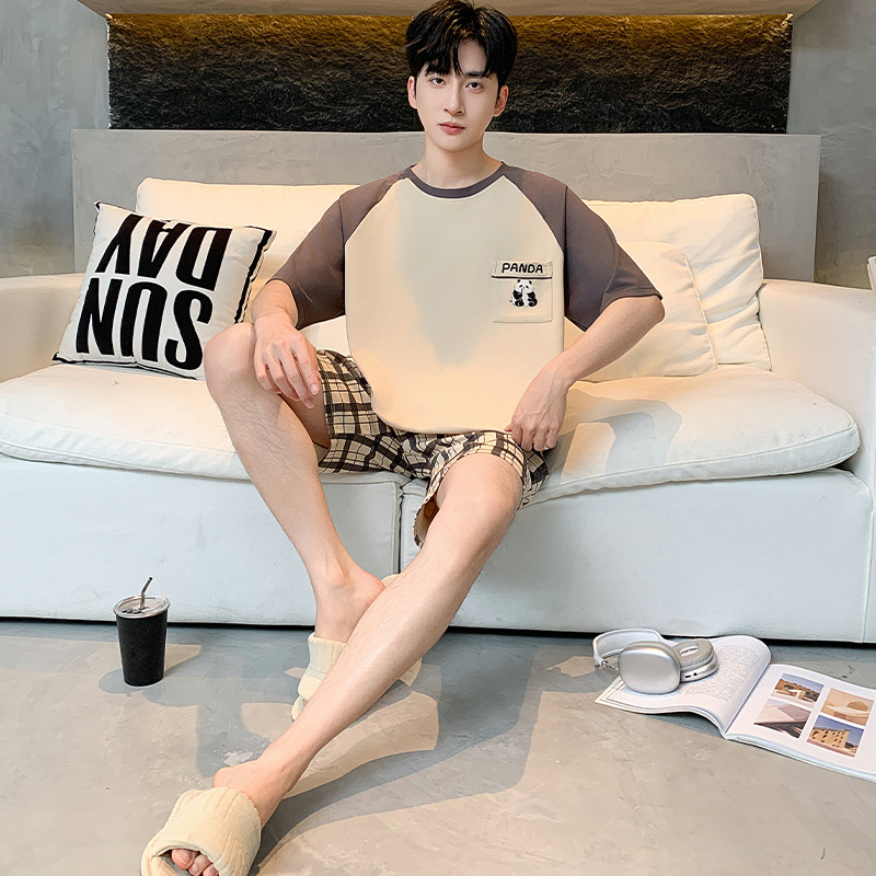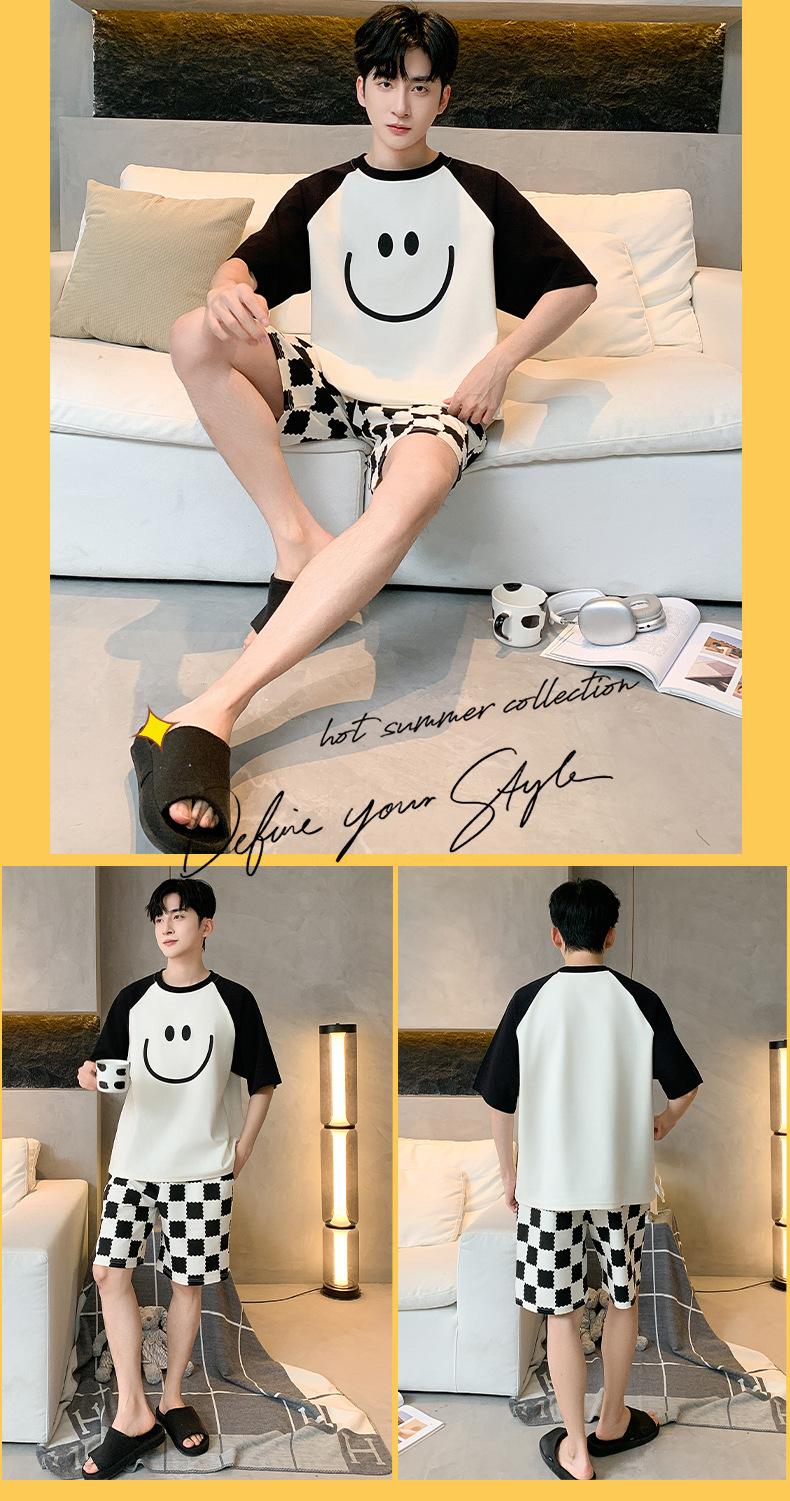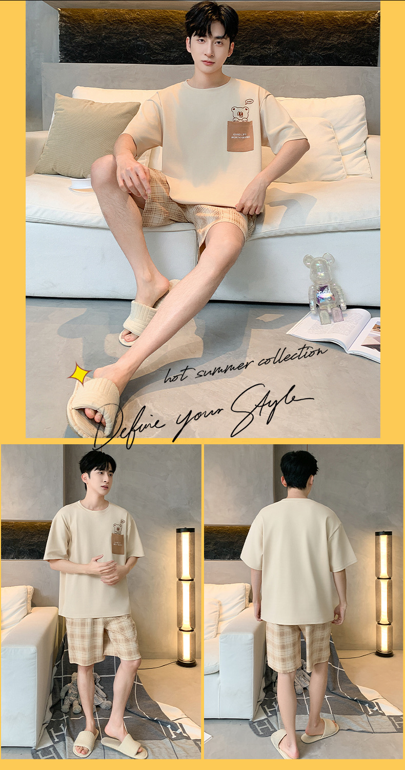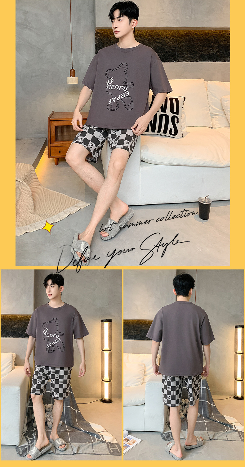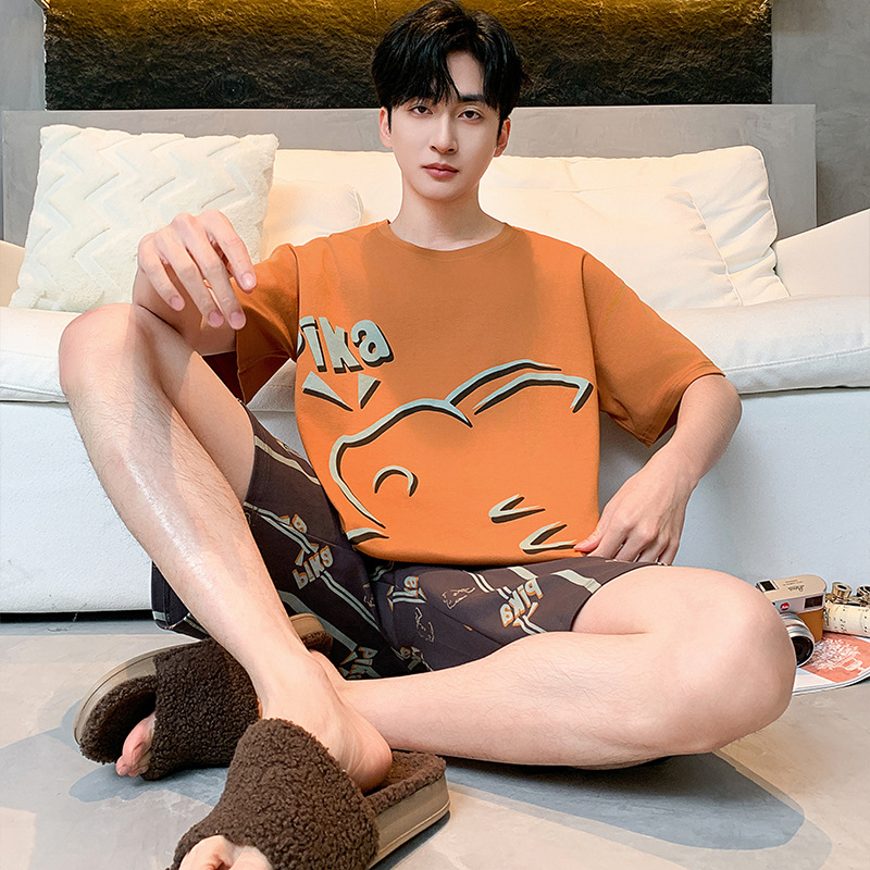 남성용 잠옷 여름 순수 코튼 반팔 만화 얇은 소년 남성 플러스 사이즈 청소년 새 홈웨어스토어 가기