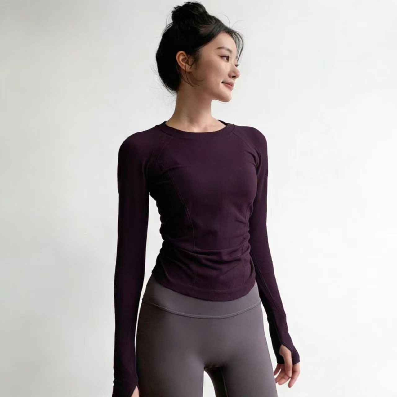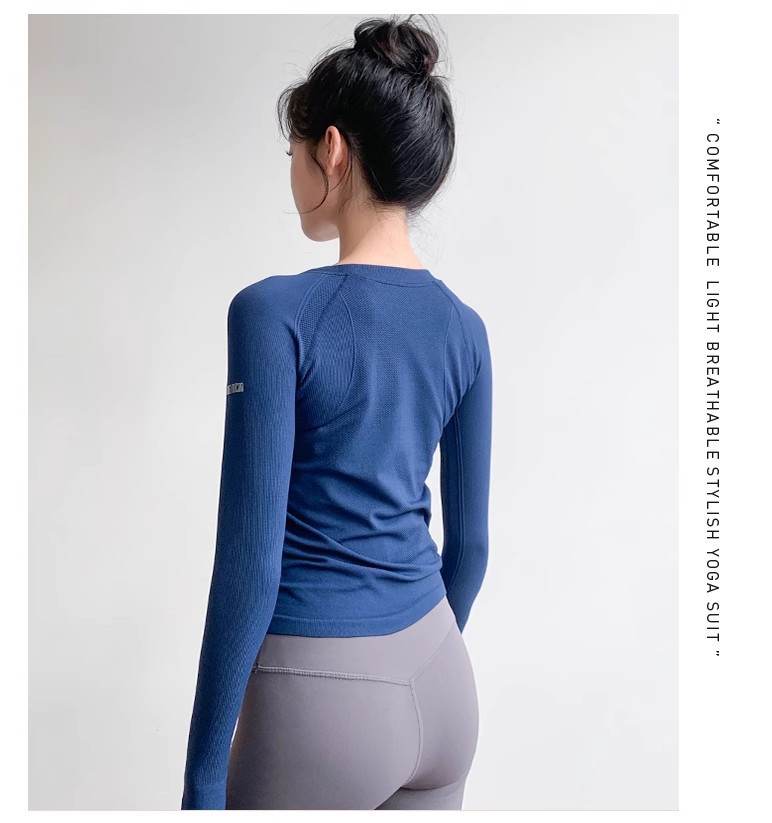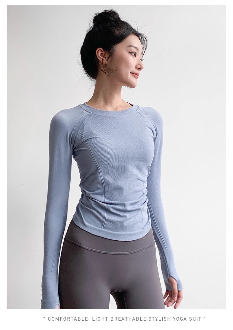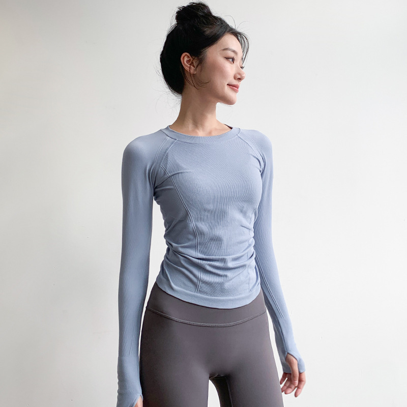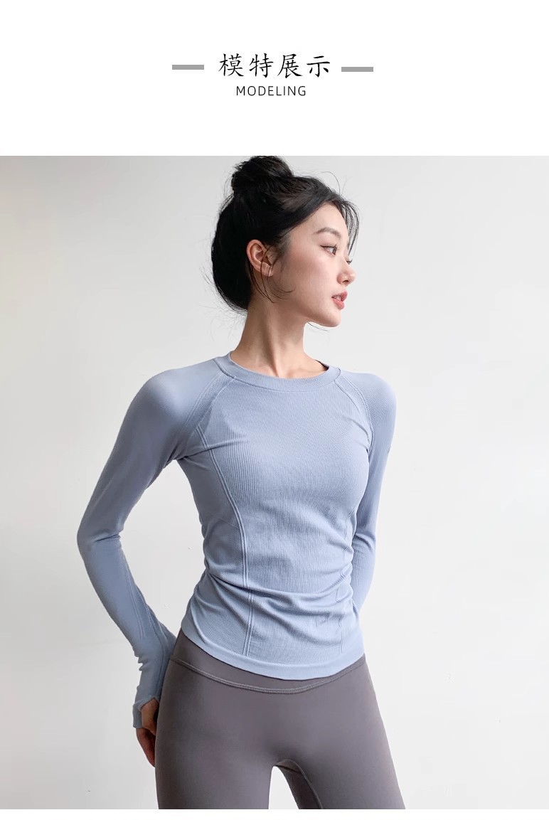 여성용 요가 의류 스포츠 탑 봄 스타일 라운드 넥 고탄성 슬리밍 전문 스포츠 긴팔 러닝 속건성 피트니스 의류스토어 가기