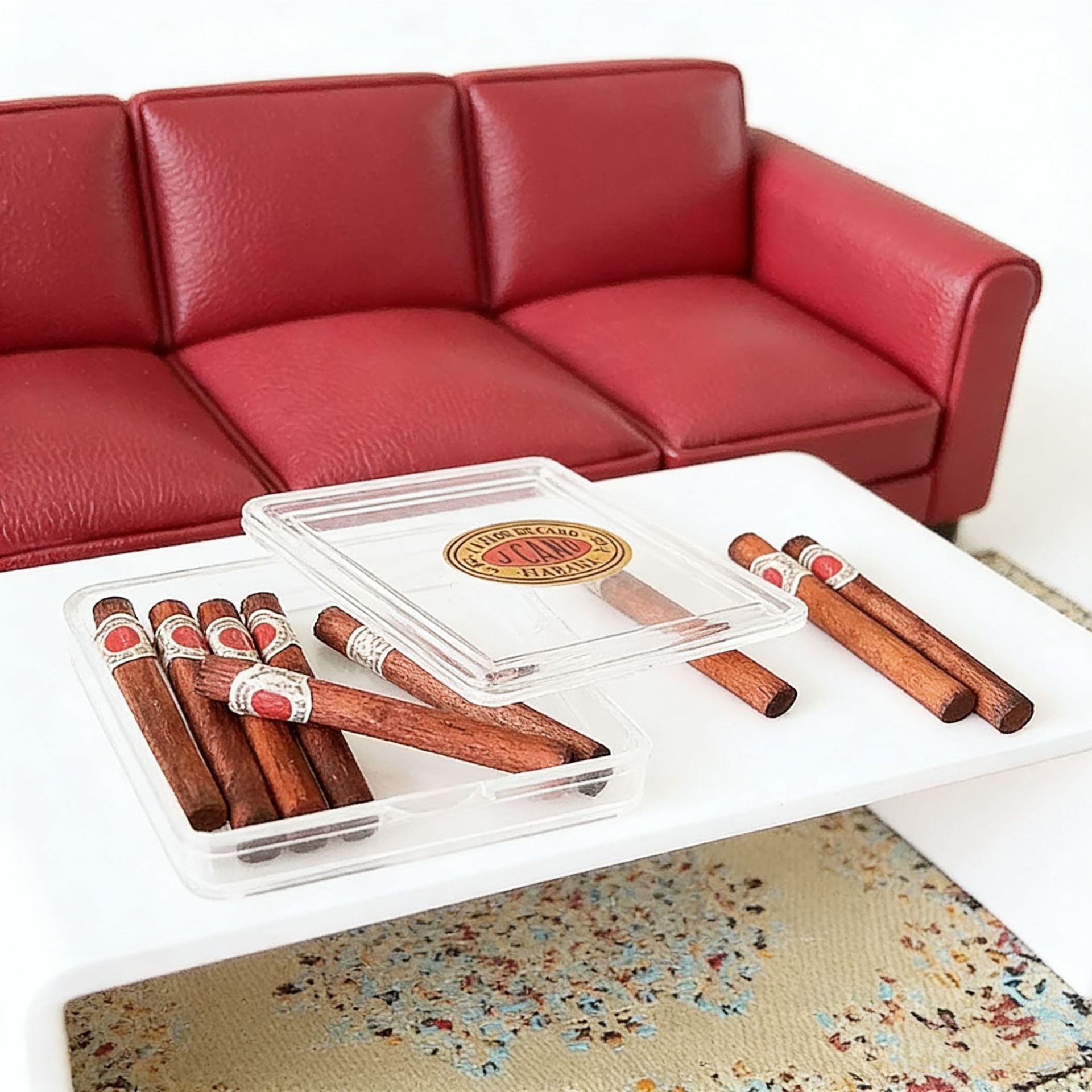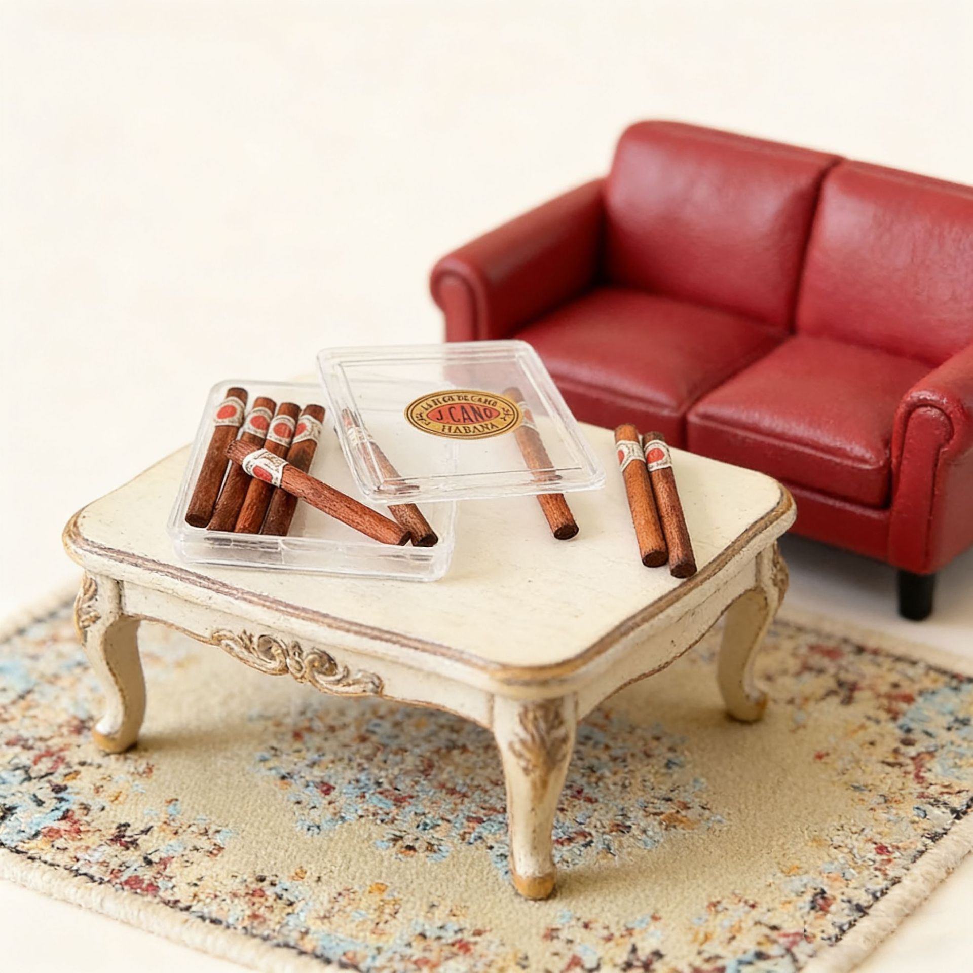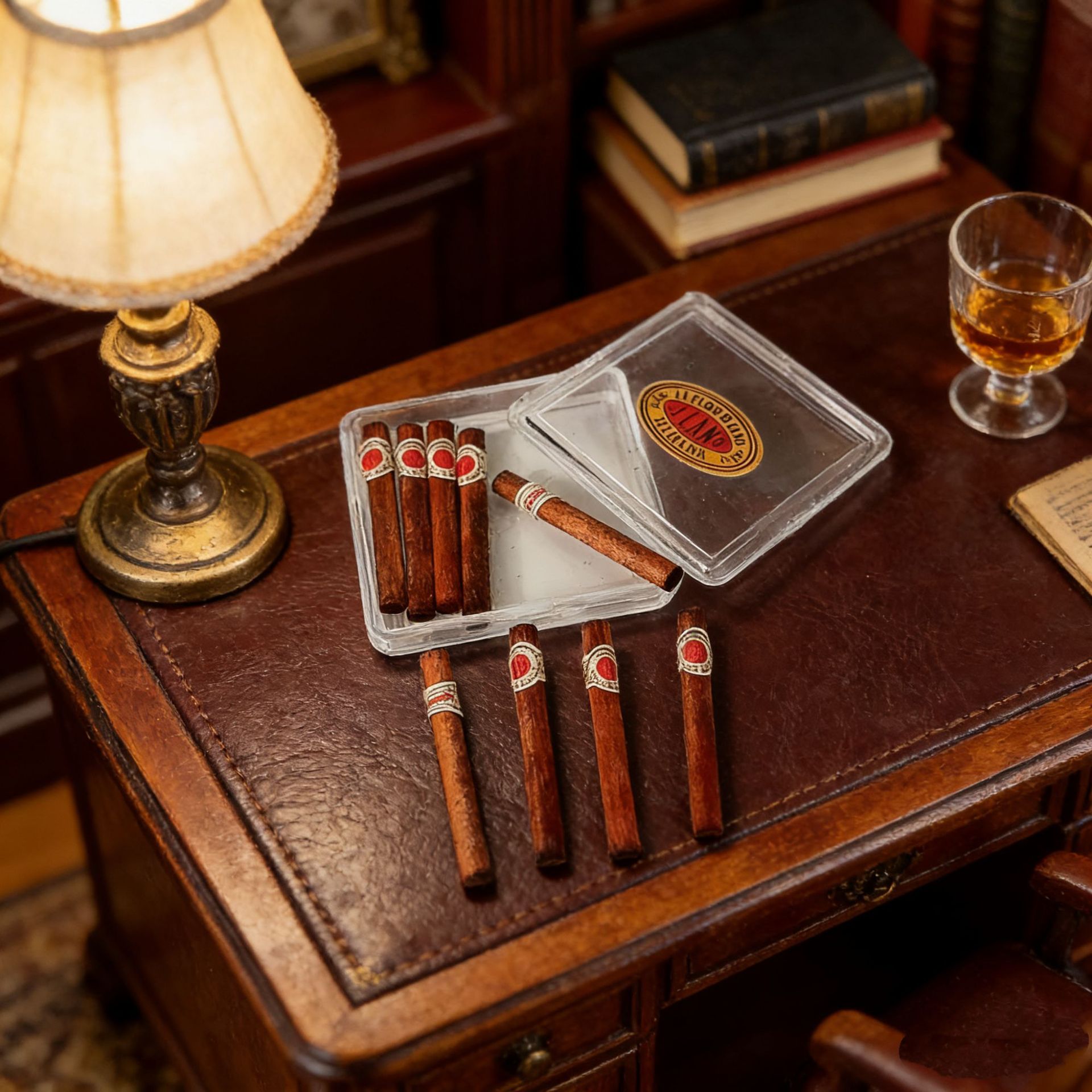 雪茄盒模型,盖子可以打开,贴纸手工制作,不能每个都一模一样整齐,介意慎拍,娃娃屋配件,不做其他用途。
