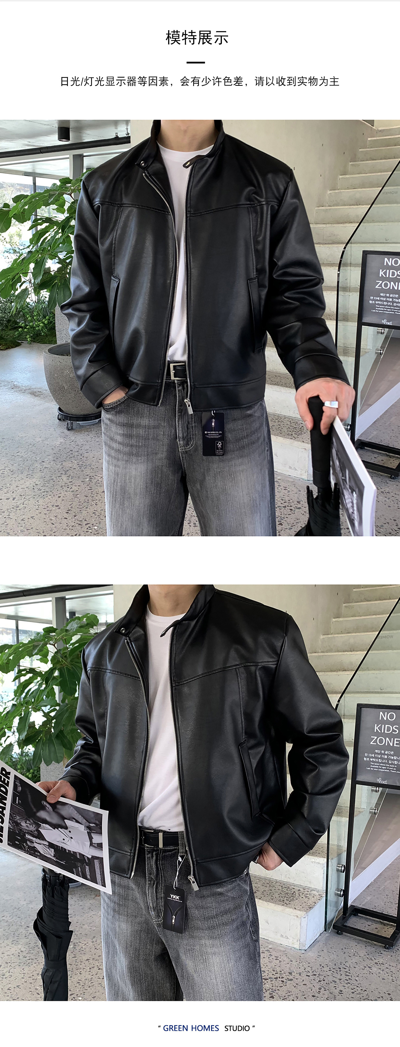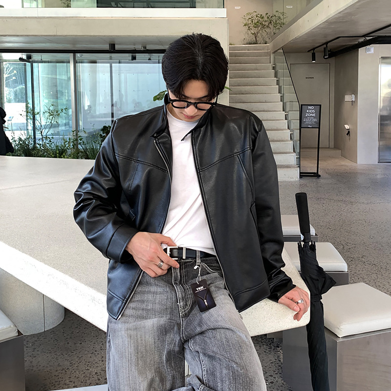 ASCLO 미국식 레트로 하이 엔드 모토 가죽 자켓 남성 봄과 가을 패션 브랜드 플랑크톤 잘 생긴 짧은 수직 칼라 재킷스토어 가기