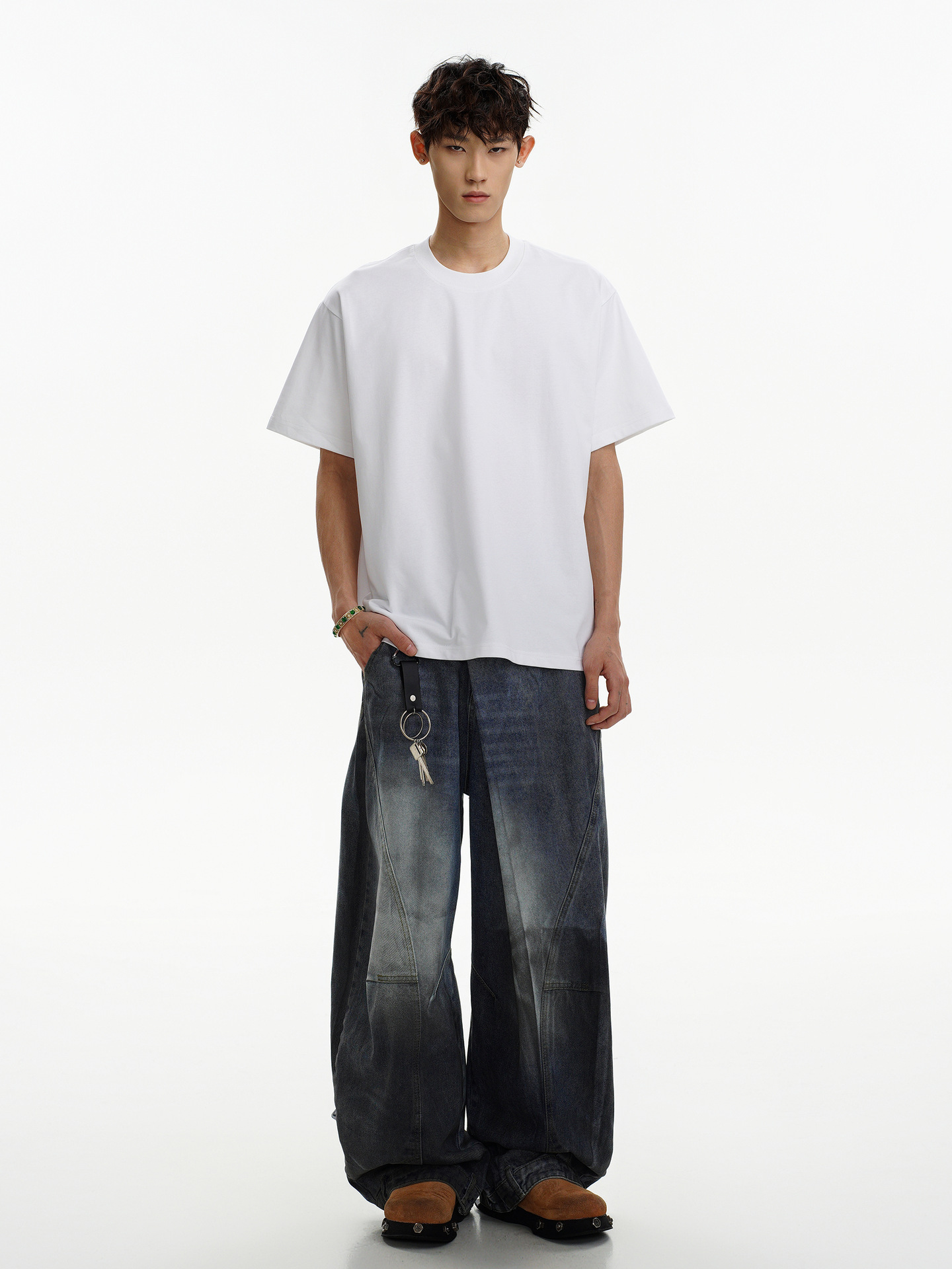 "솔리드 컬러 라이트 플레이트" 네트 에디션 305g 헤비 코튼 아메리칸 박스 쇼트 와이드 티셔츠 남자 짧은 소매 전국 패션스토어 가기