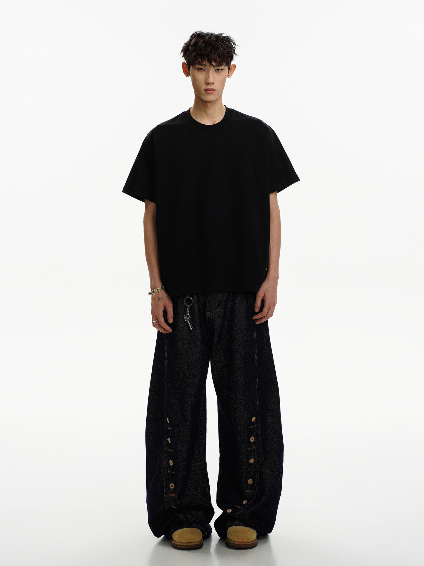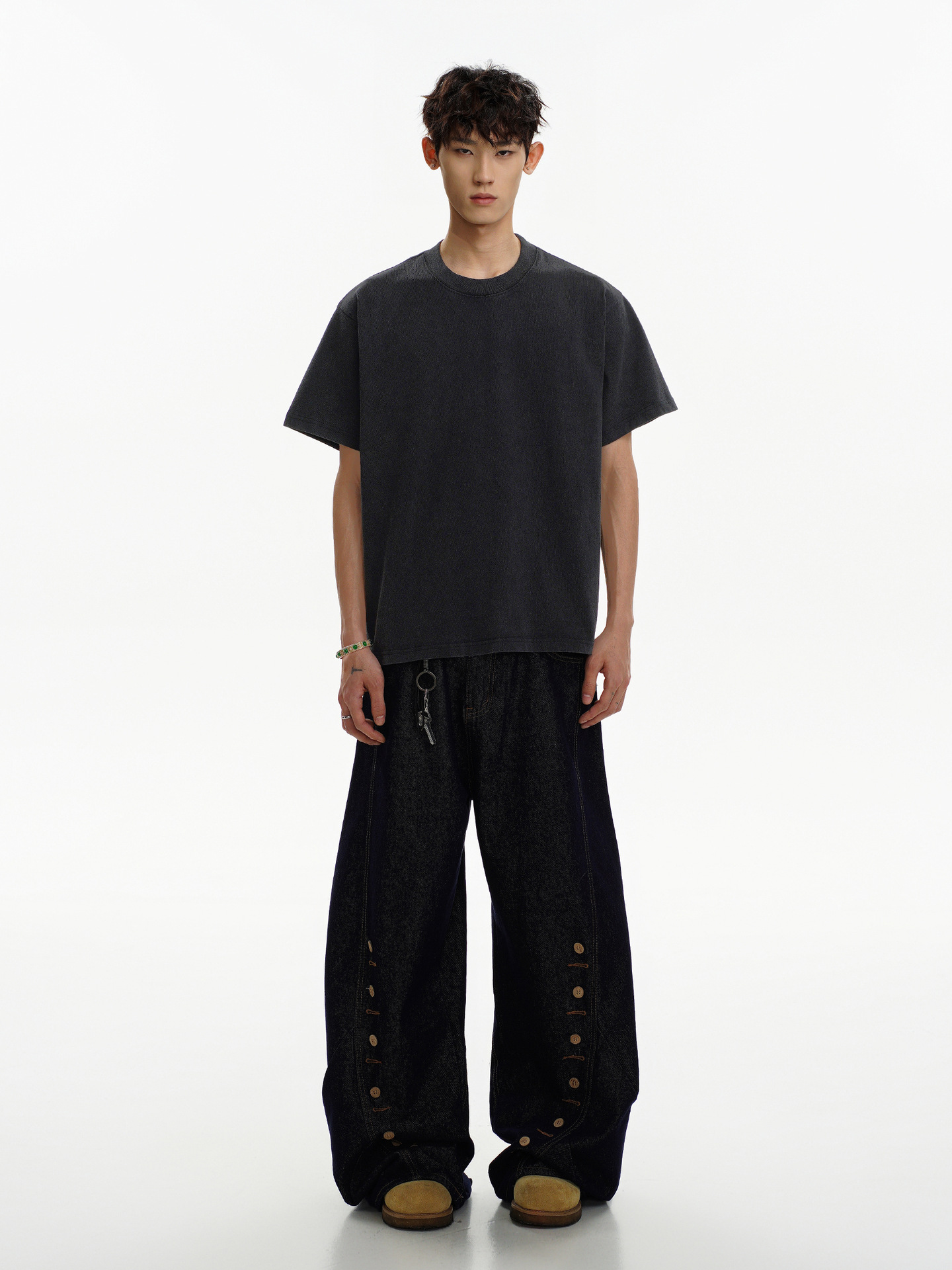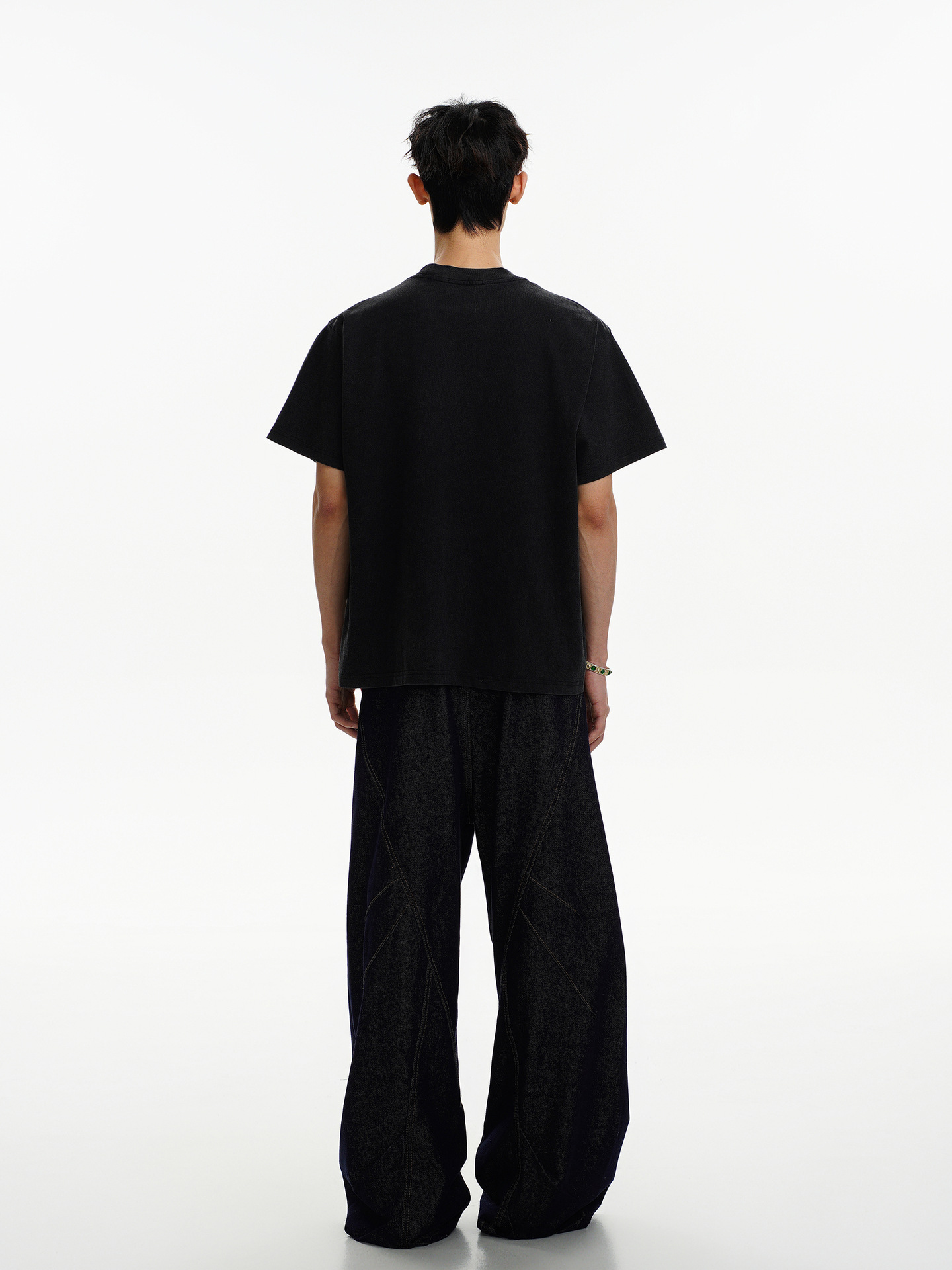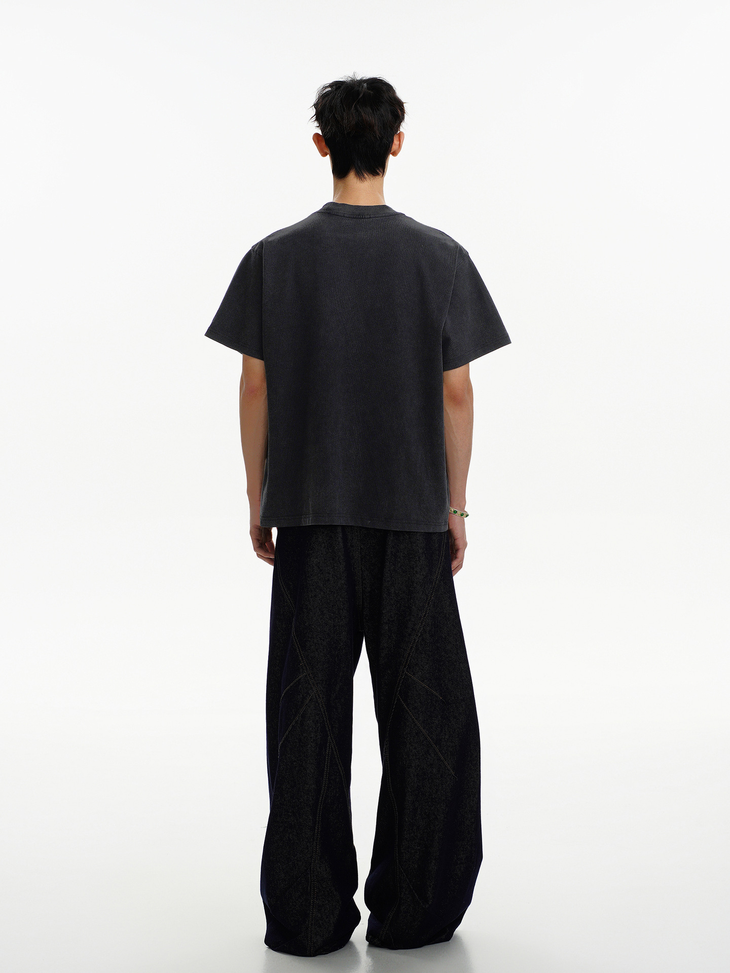 • 워시드 블랙 BOXY 쇼트 와이드 반팔 305g