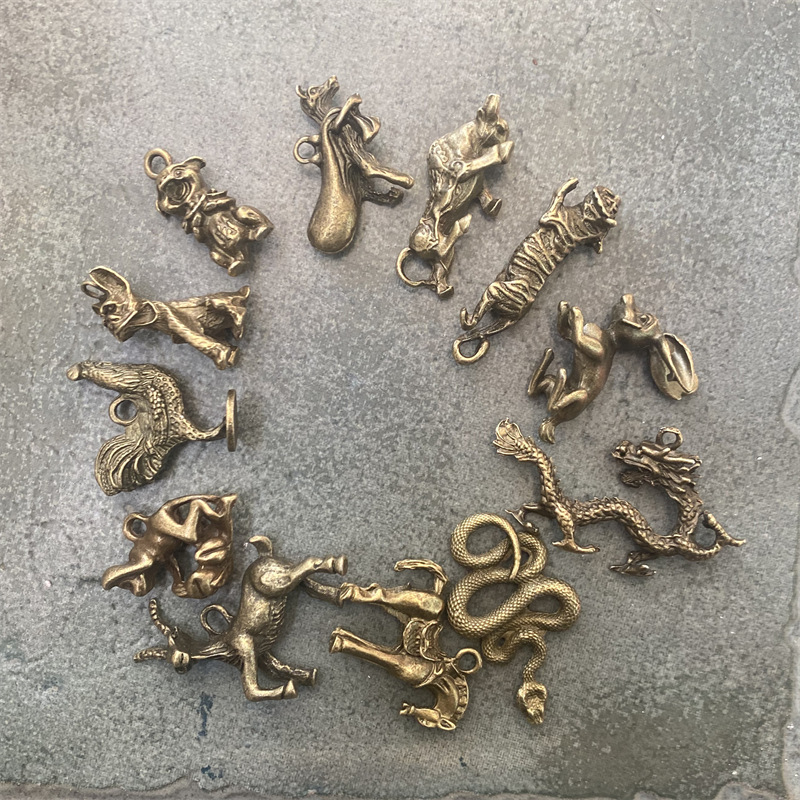 모조 황동 조디악 키 체인 펜던트 3 차원 조디악 드래곤 타이거 드래곤 뱀 말 성격 자동차 펜던트 크리에이티브