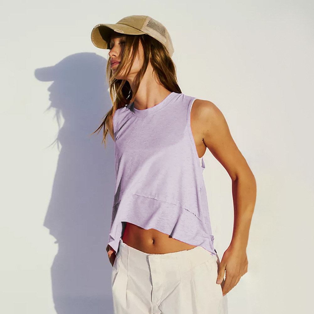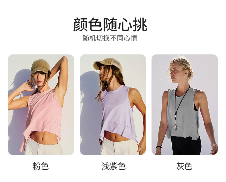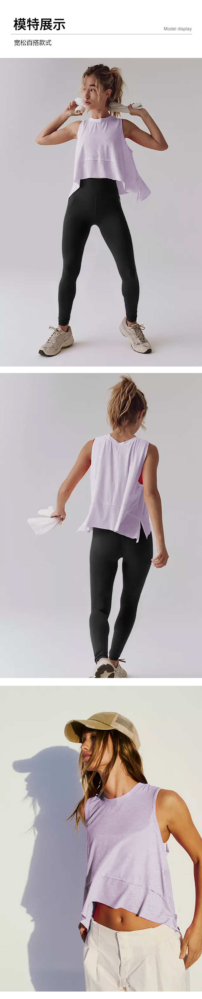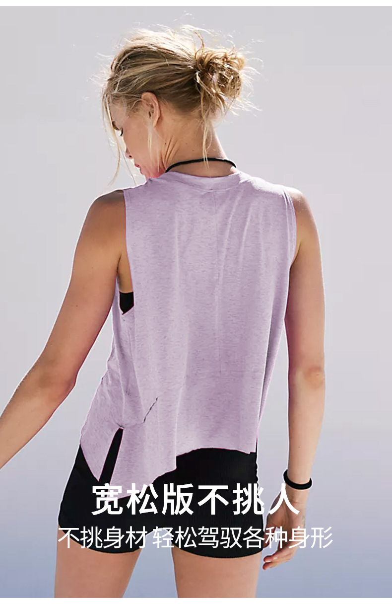 국경을 넘는 새로운 스타일의 속건성 불규칙 루즈핏 여성용 여름 아우터 요가 피트니스 탑 스포츠 민소매 티셔츠스토어 가기