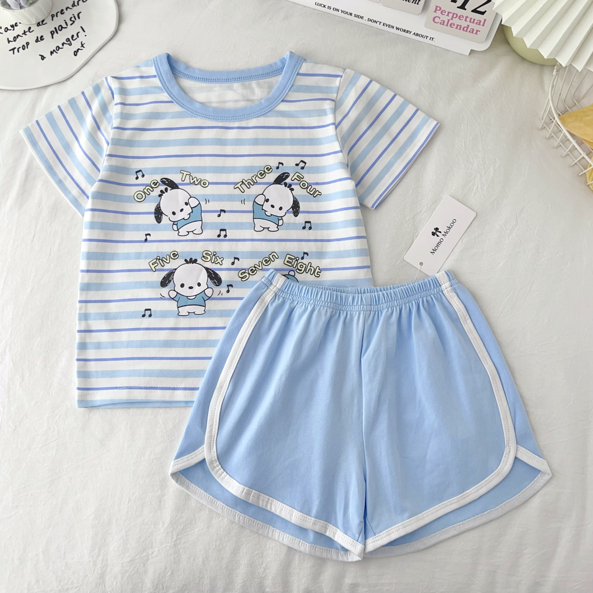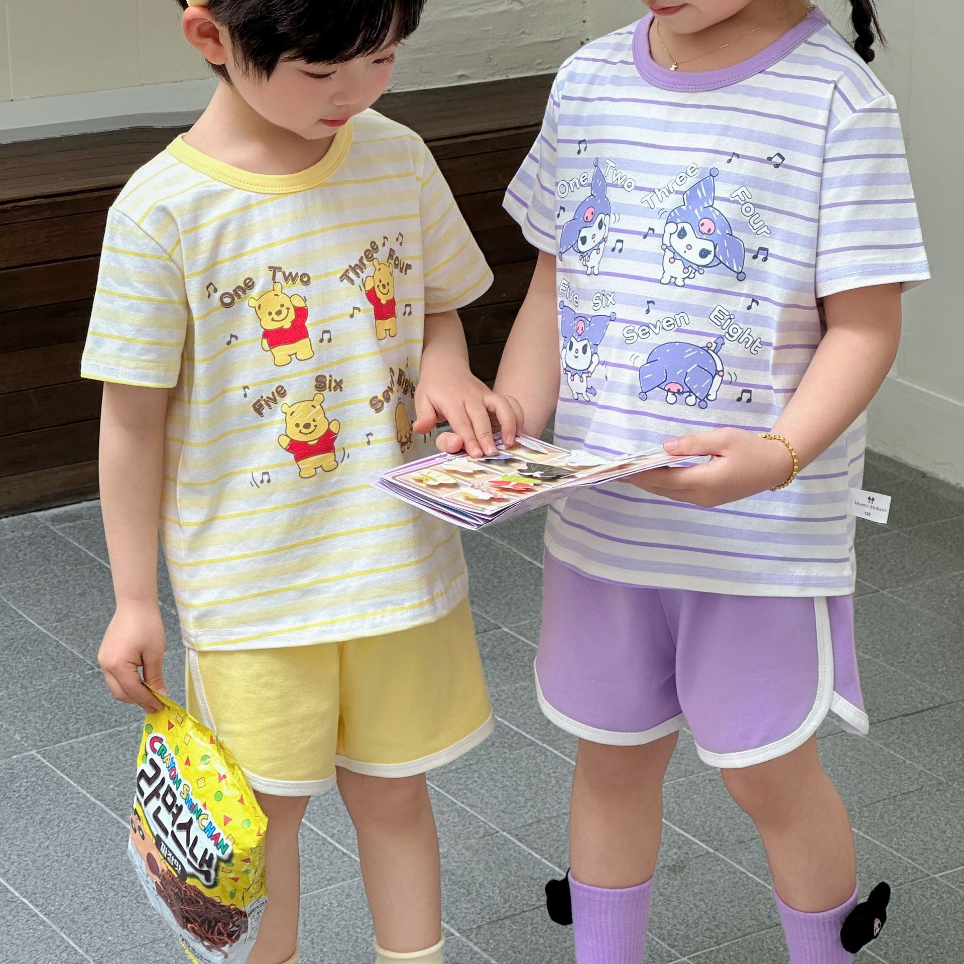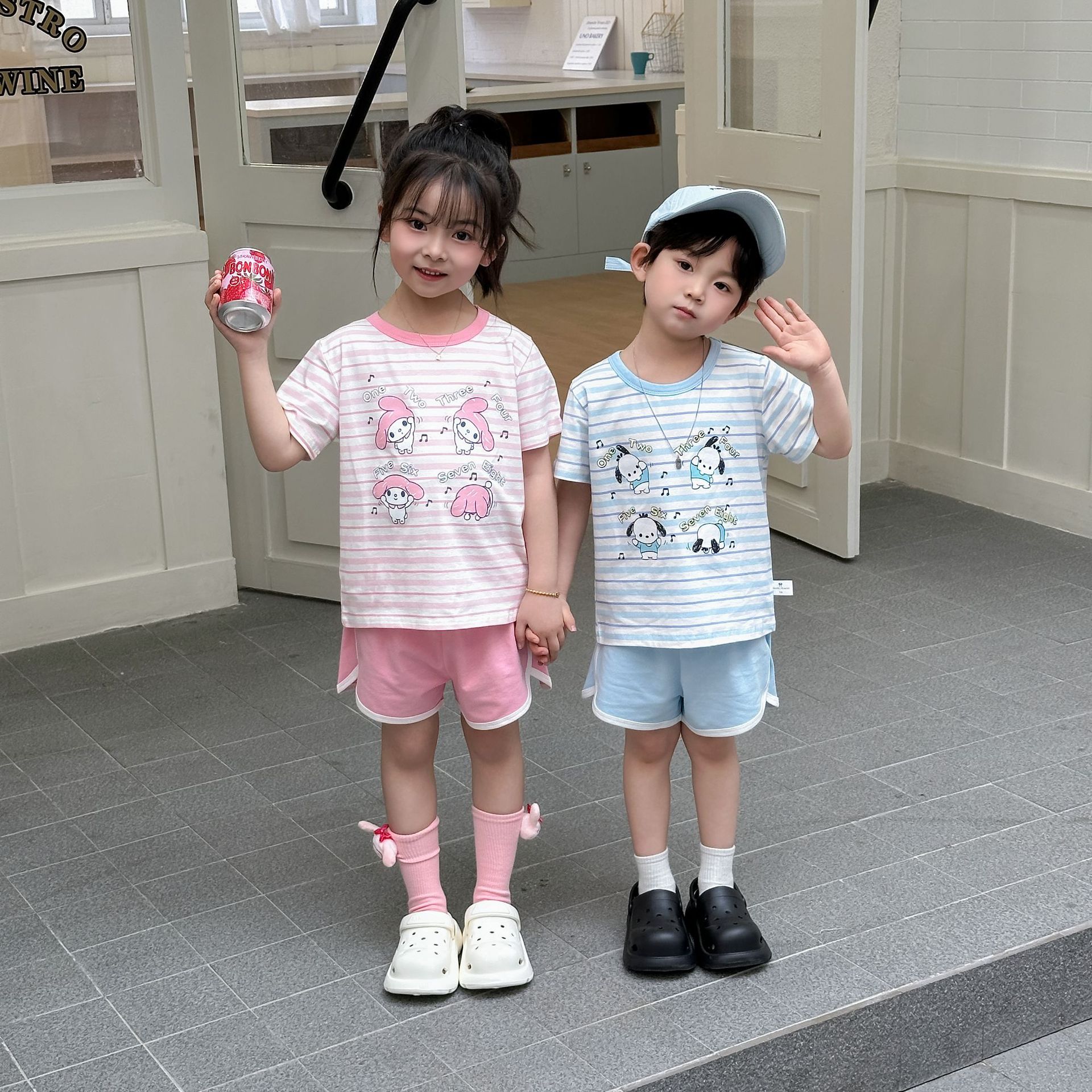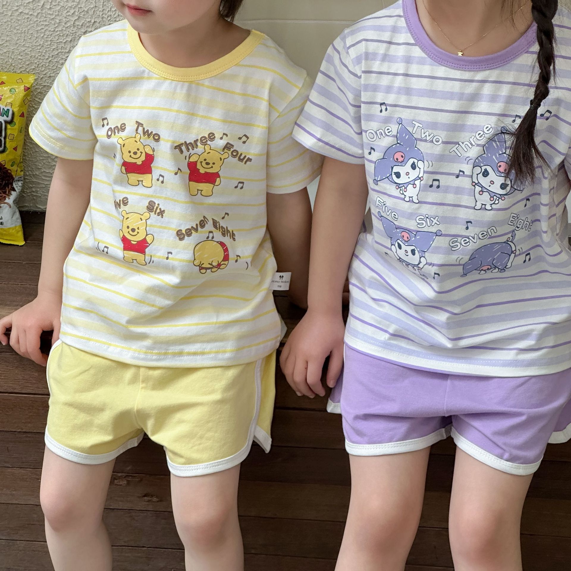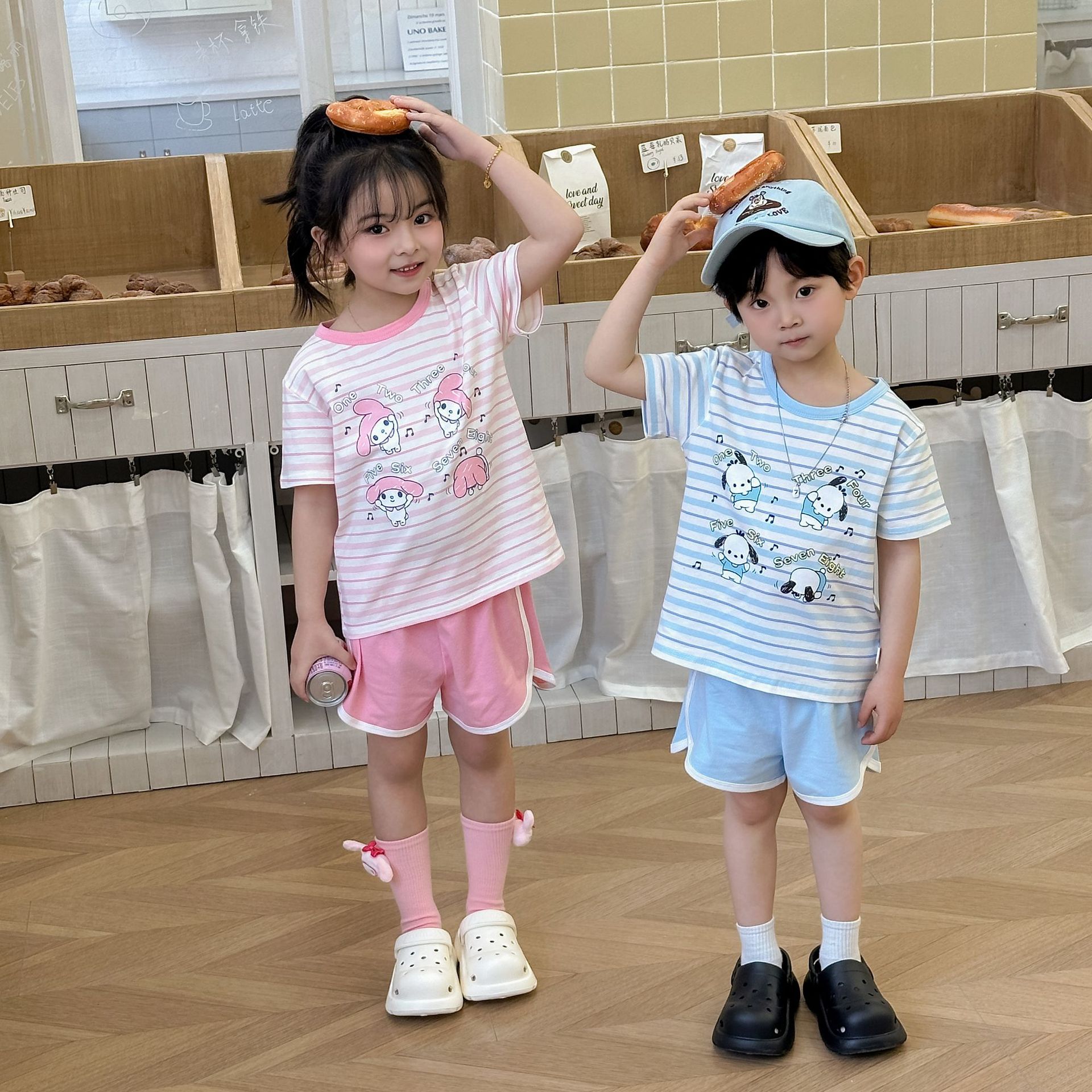 [95 면 라이크라] 새로운 어린이 세트 운동복 짧은 소매 반바지 티셔츠 뜨거운 바지 여름 인쇄 귀여운 25스토어 가기