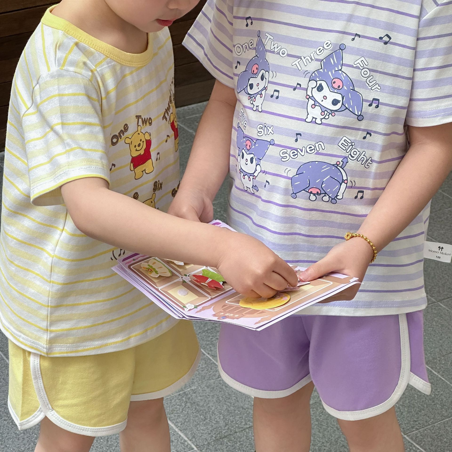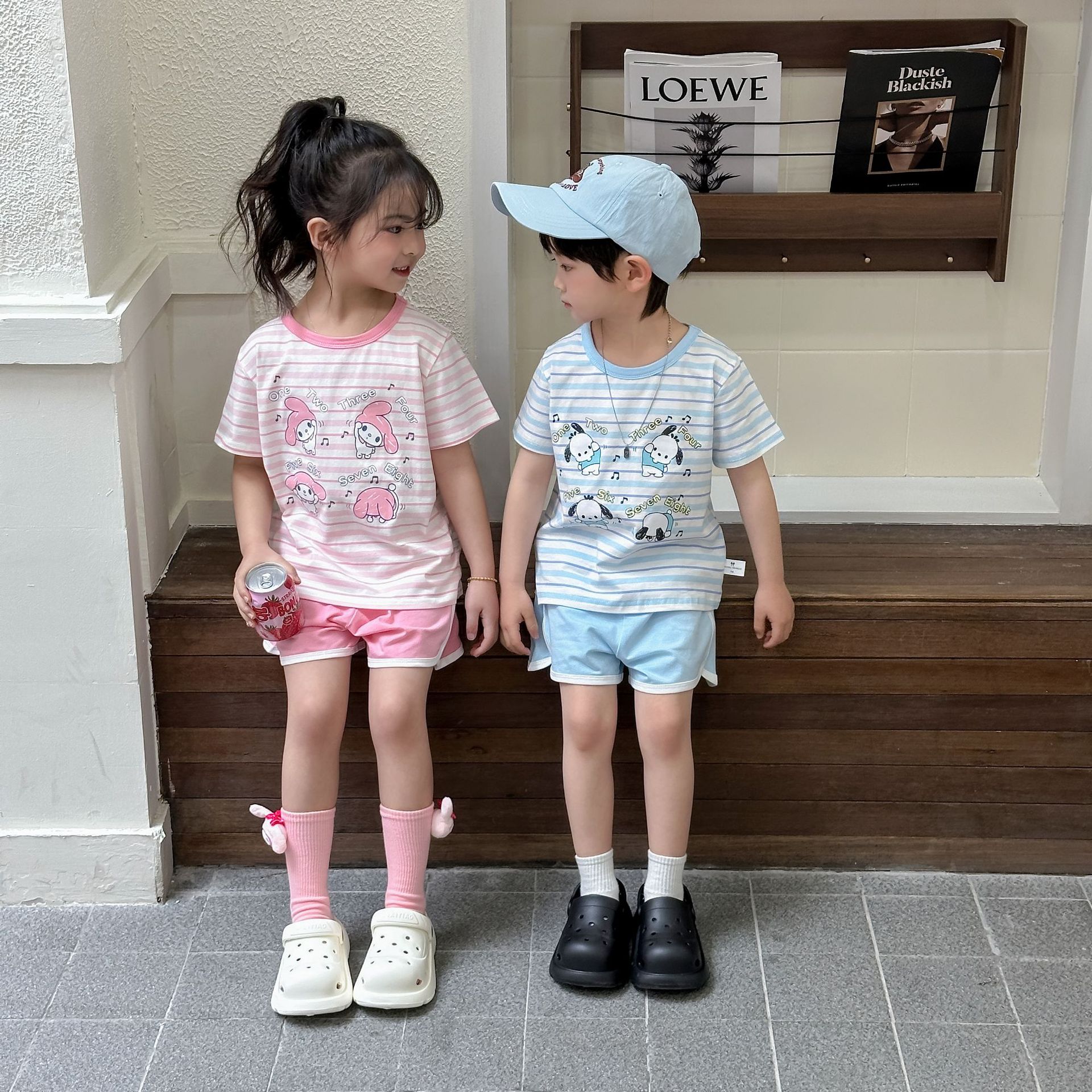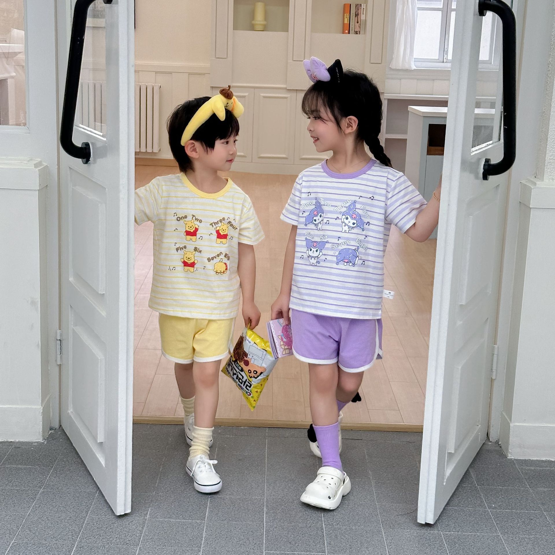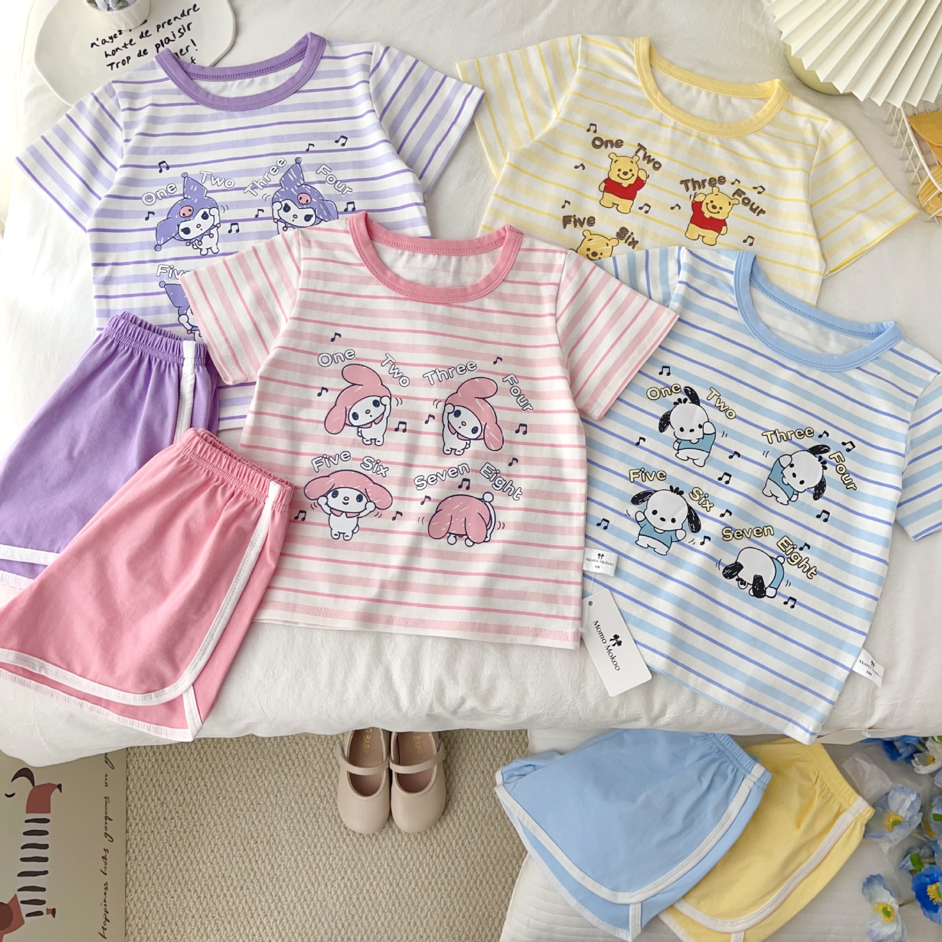 [95 면 라이크라] 새로운 어린이 세트 운동복 짧은 소매 반바지 티셔츠 뜨거운 바지 여름 인쇄 귀여운 25스토어 가기