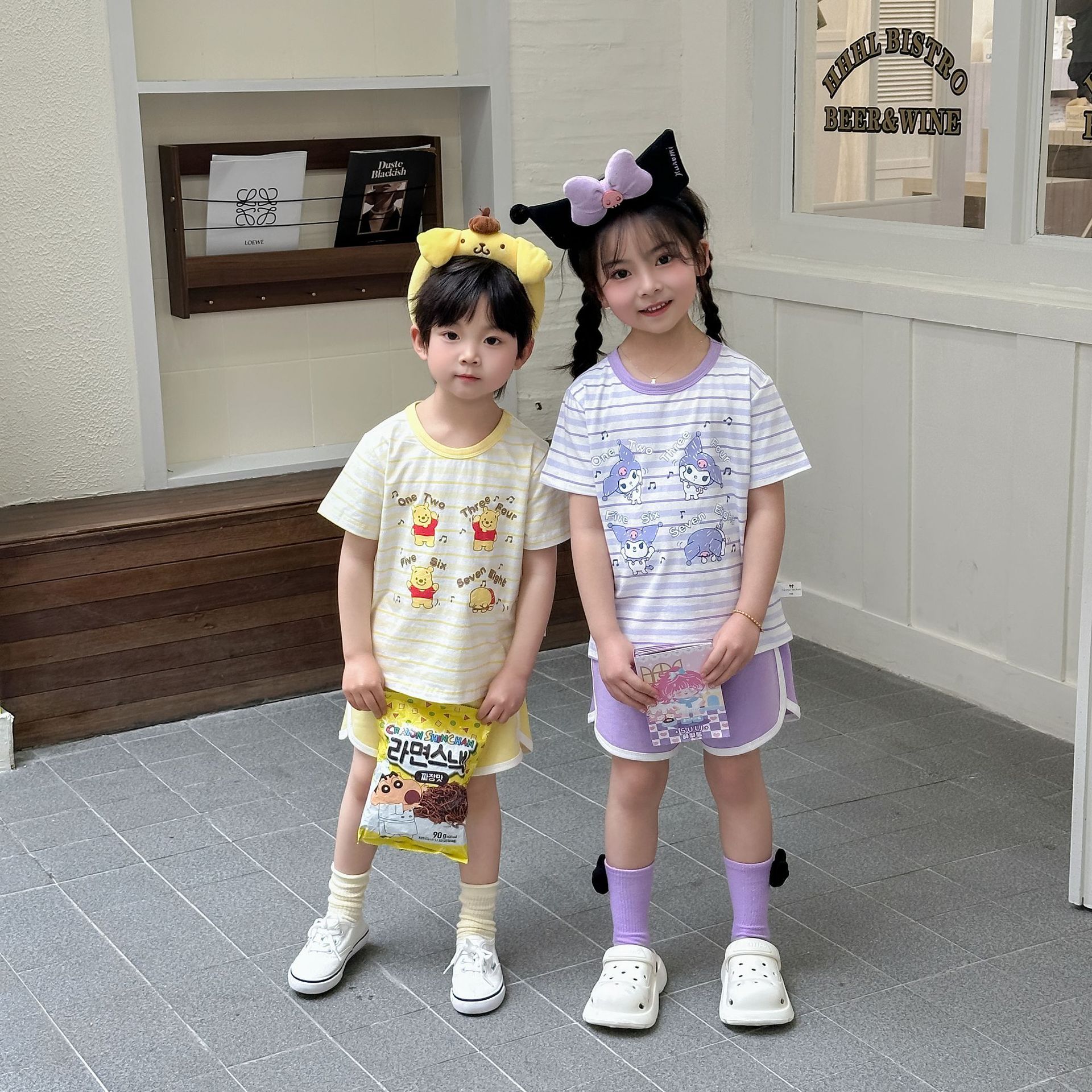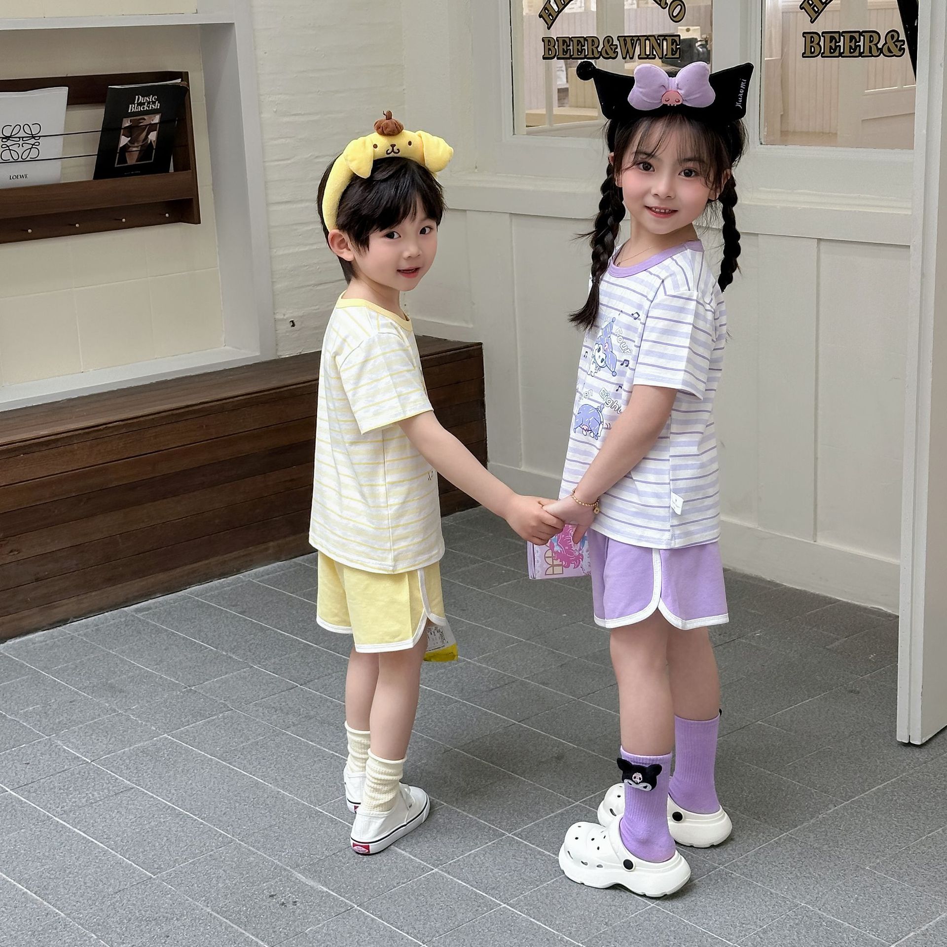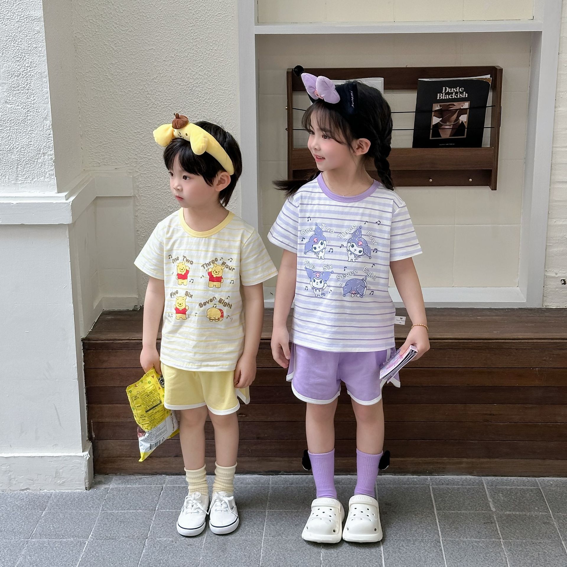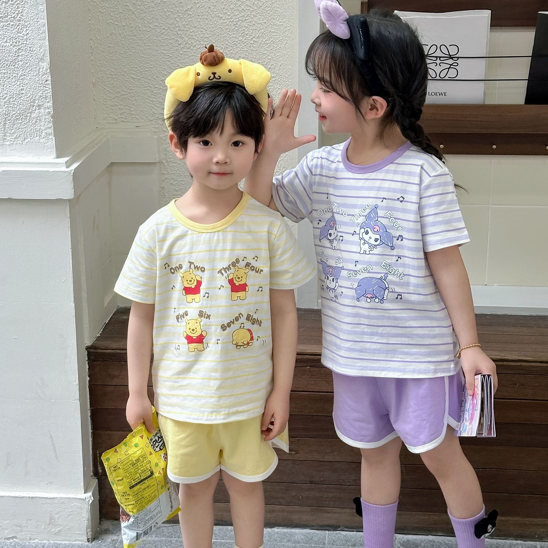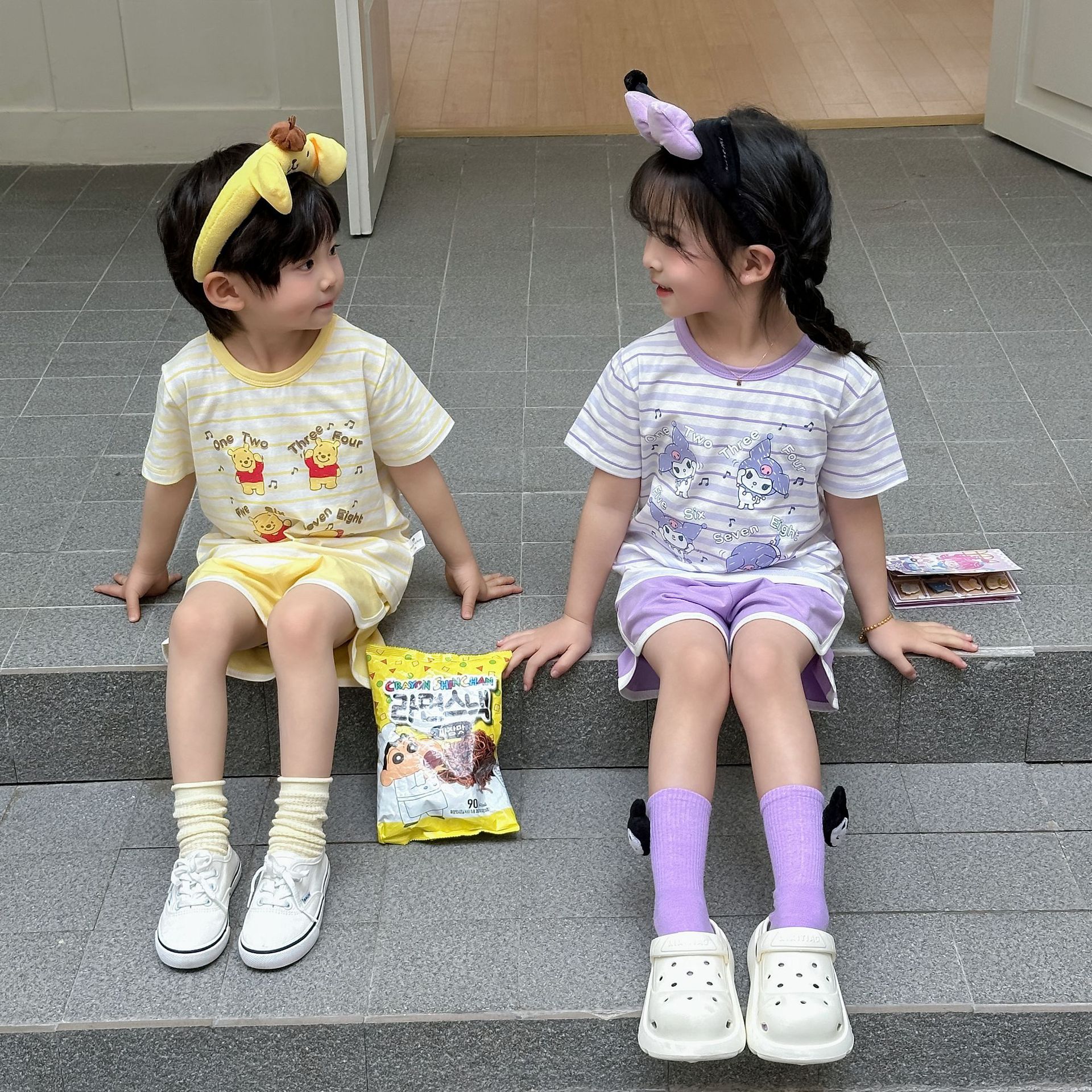 [95 면 라이크라] 새로운 어린이 세트 운동복 짧은 소매 반바지 티셔츠 뜨거운 바지 여름 인쇄 귀여운 25스토어 가기