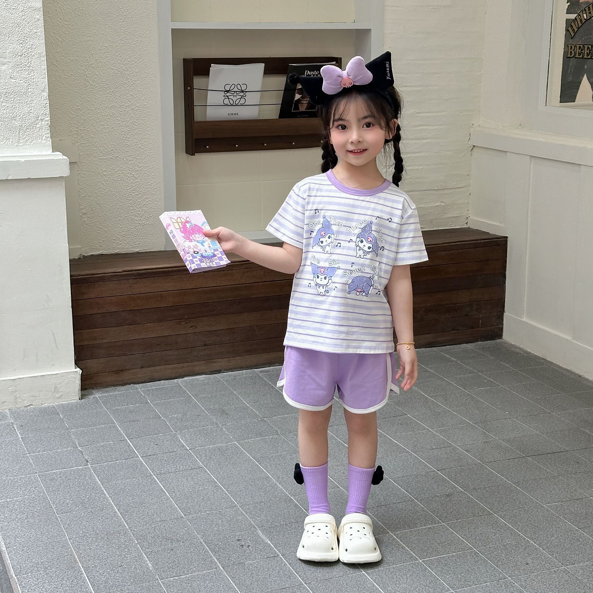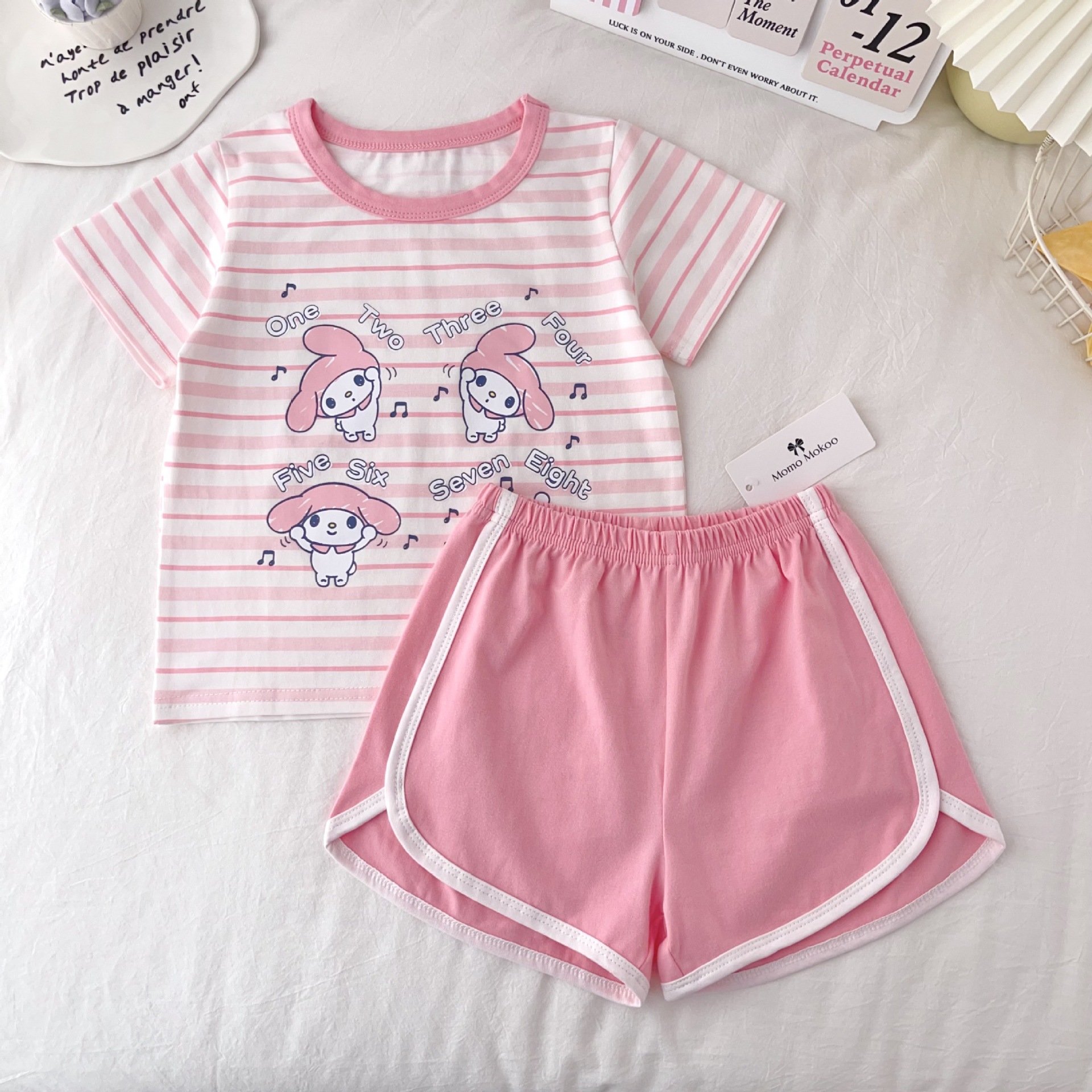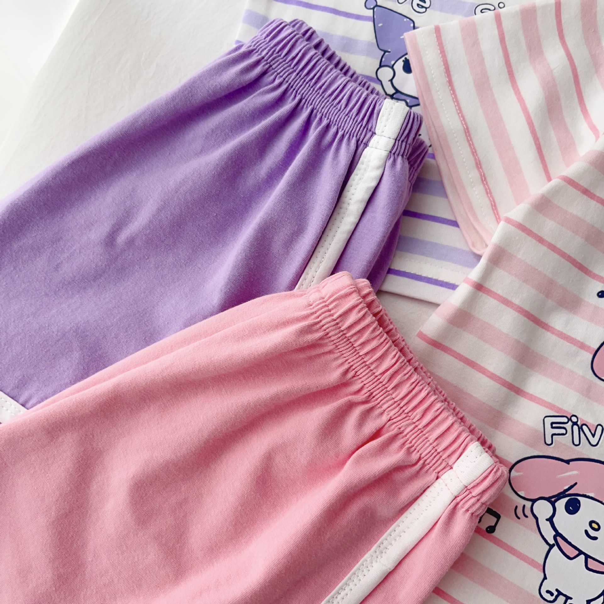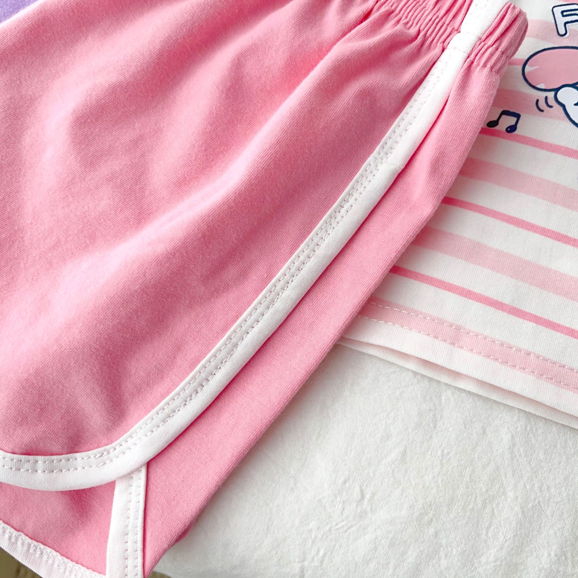 [95 면 라이크라] 새로운 어린이 세트 운동복 짧은 소매 반바지 티셔츠 뜨거운 바지 여름 인쇄 귀여운 25