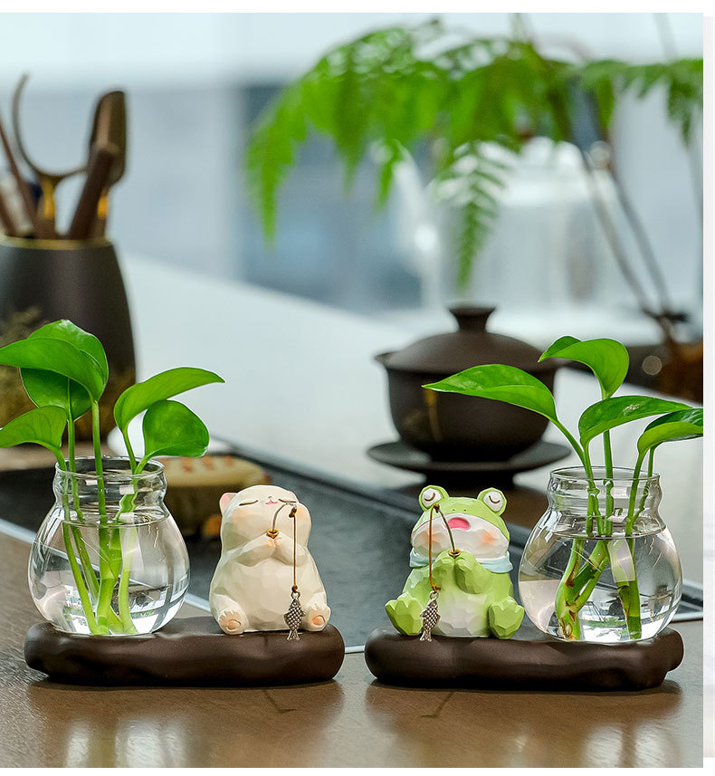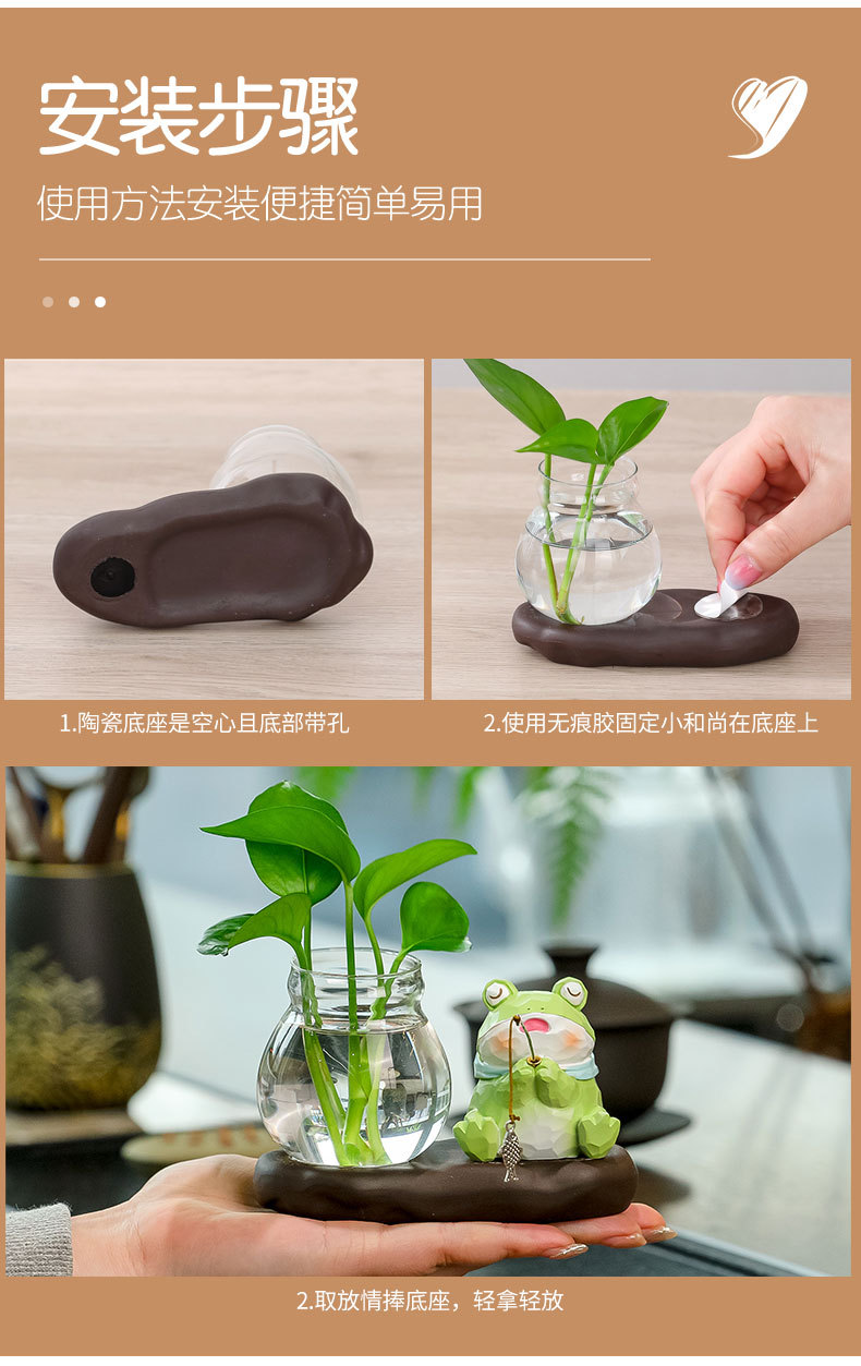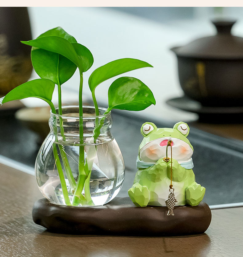 Net Red, 개구리 낚시 세라믹 작은 꽃병 수경 식물 화분 신선한 꽃 꽃 장식품 데스크탑 장식품스토어 가기