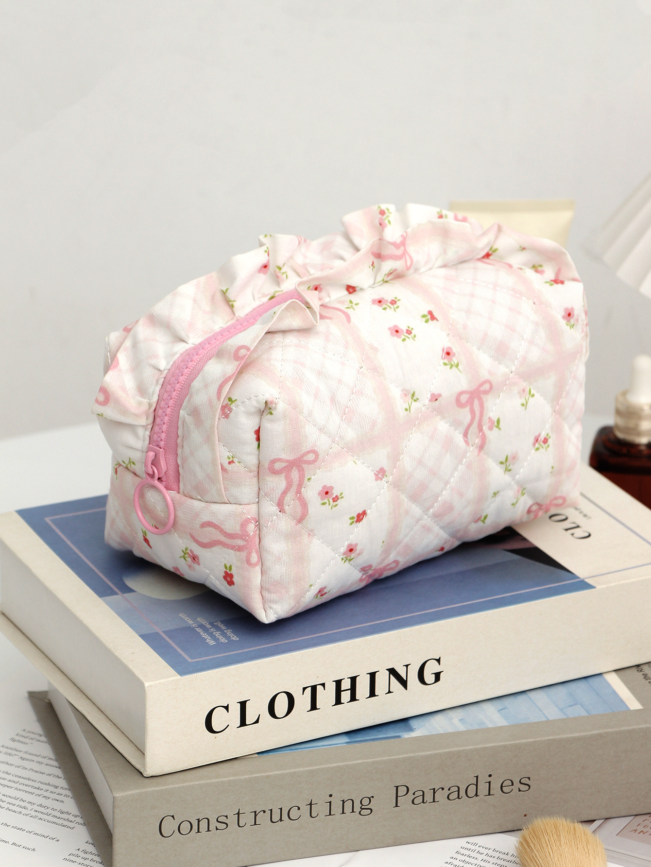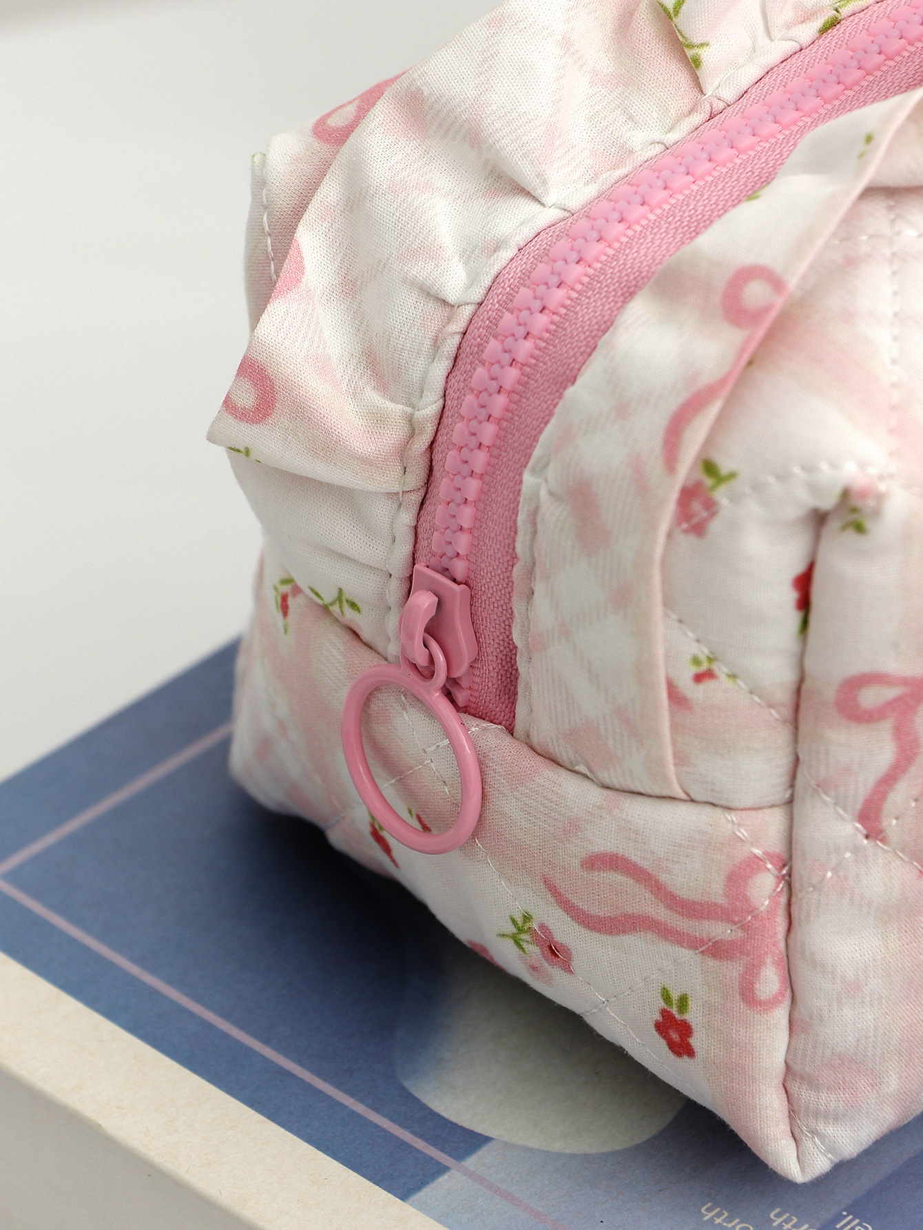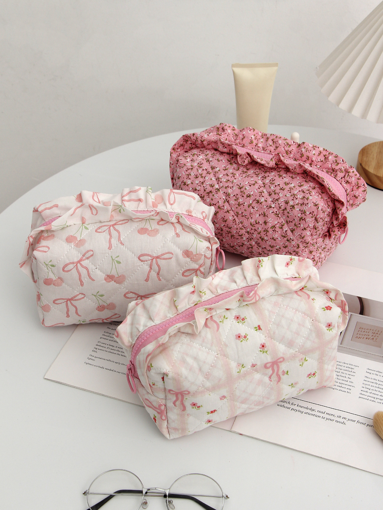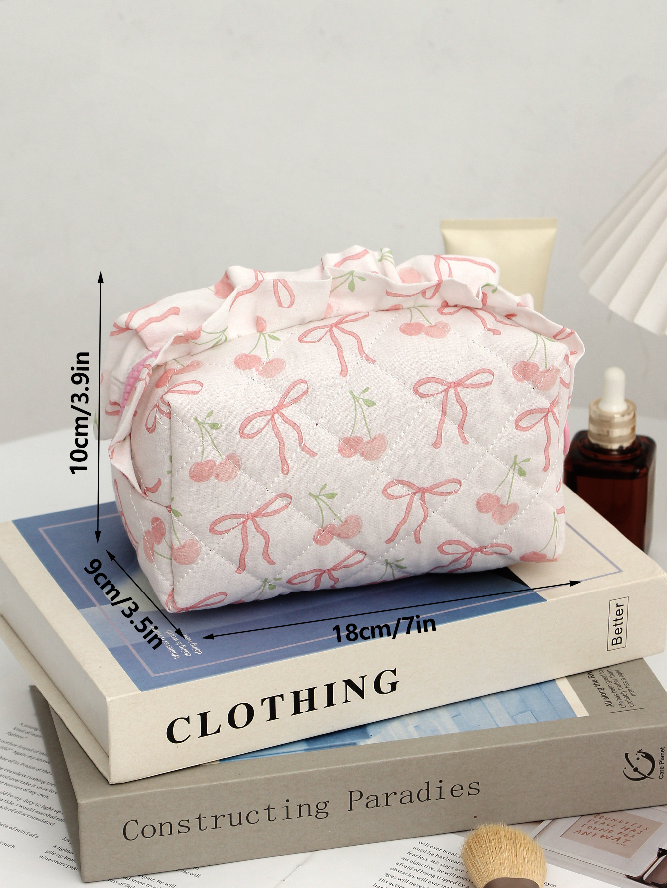 새로운 활 체리 천 화장품 가방 대용량 퀼트 스킨 케어 보관 가방 여행 휴대용 워시 백