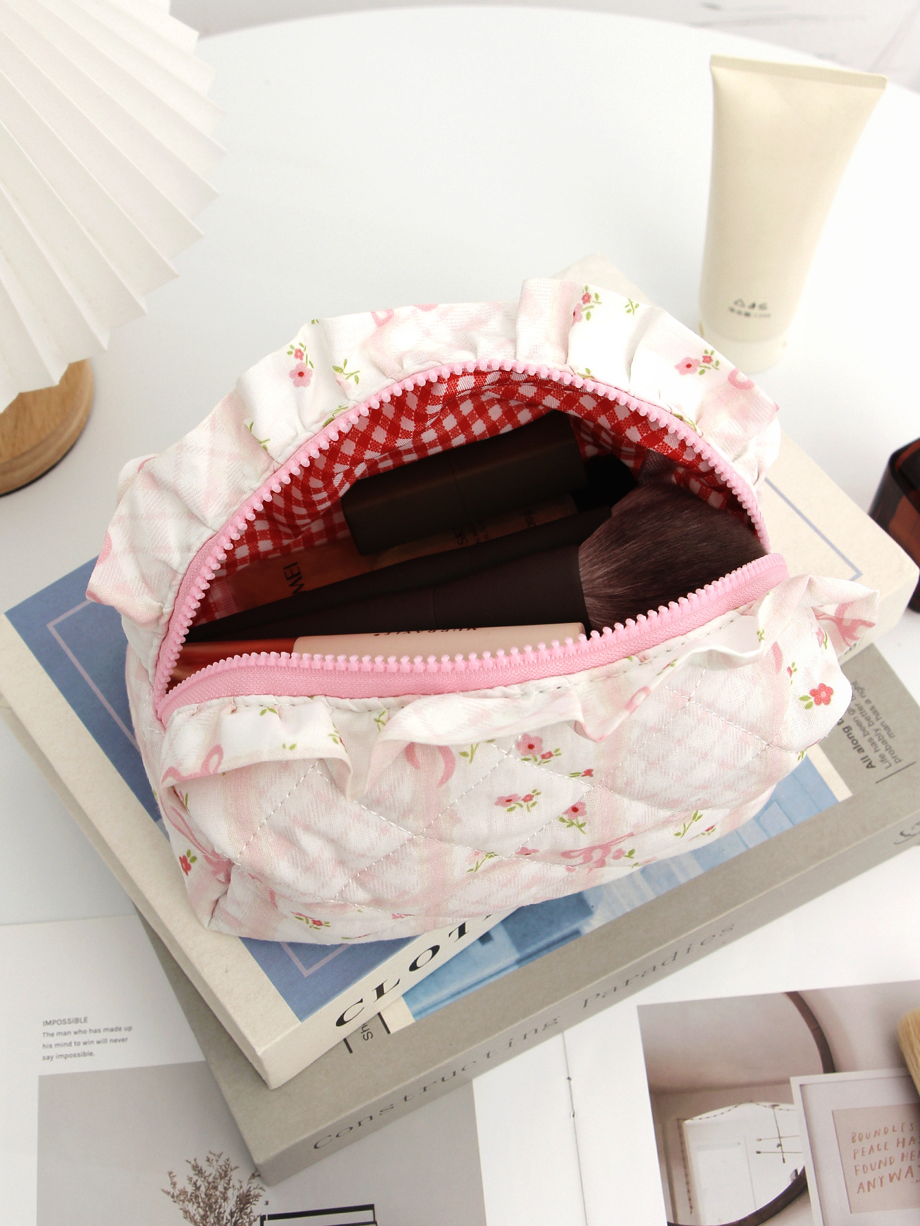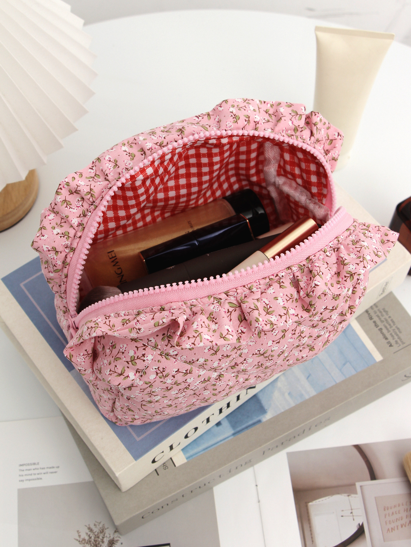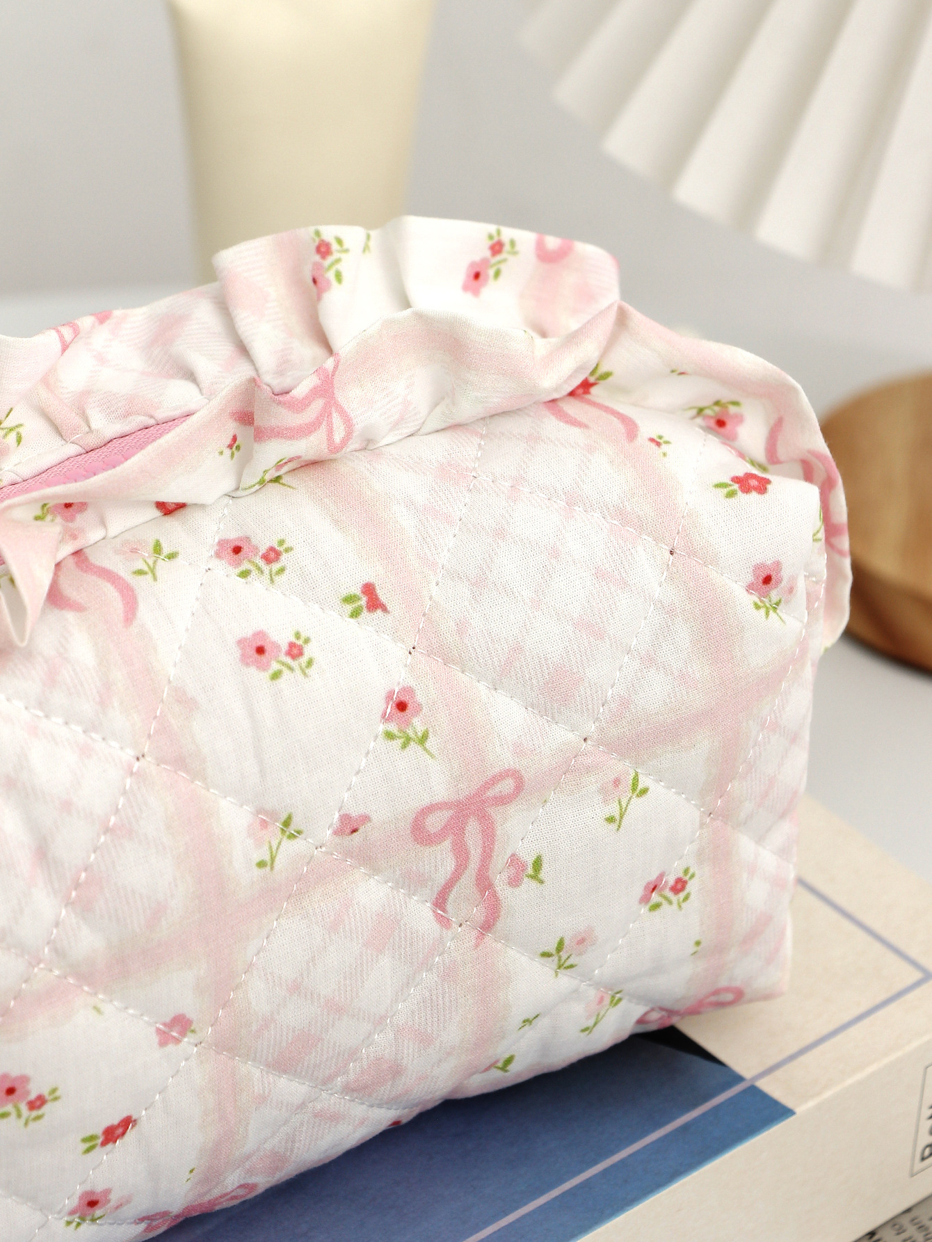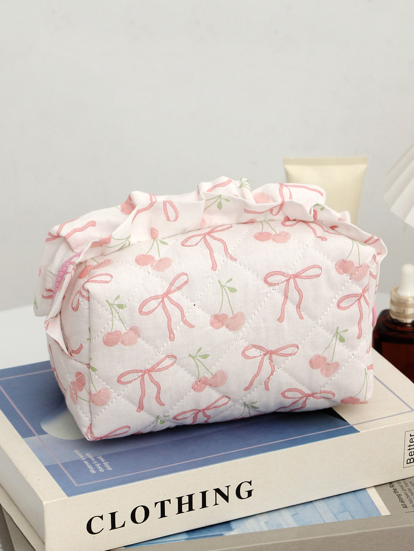 새로운 활 체리 천 화장품 가방 대용량 퀼트 스킨 케어 보관 가방 여행 휴대용 워시 백스토어 가기