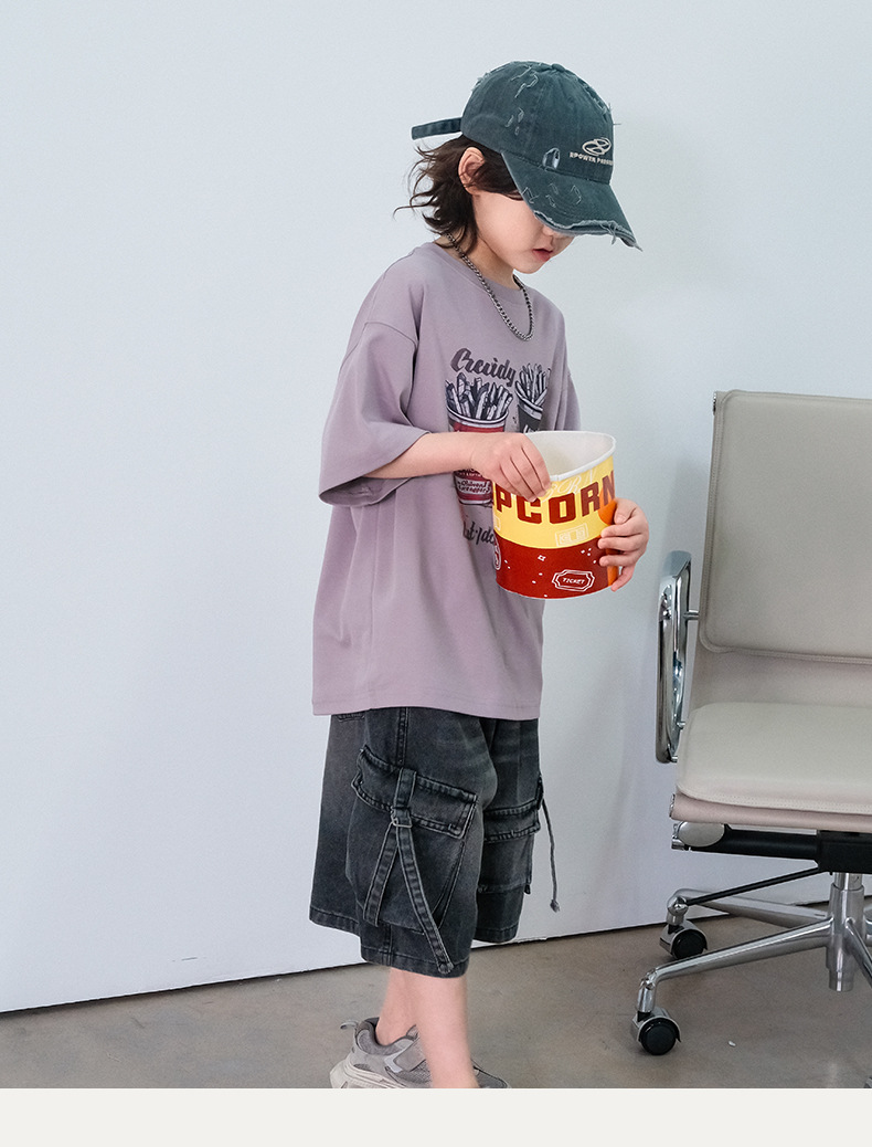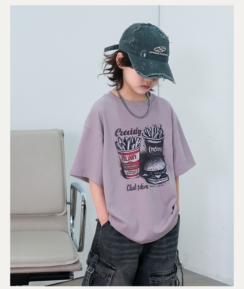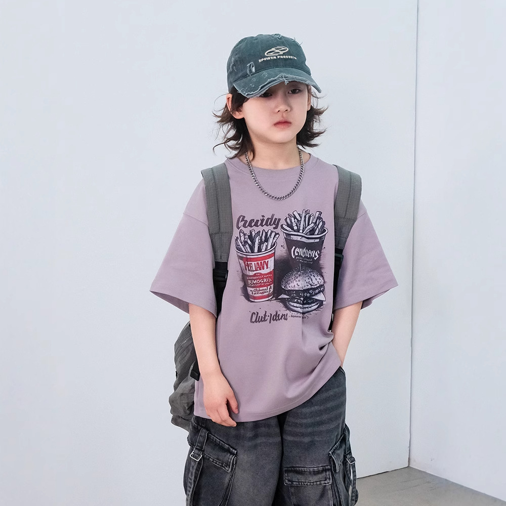 소년 반팔 티셔츠 여름 2025 새로운 어린이 여름 패션 브랜드 반팔 큰 어린이 면 티셔츠 탑 스타일러스 T