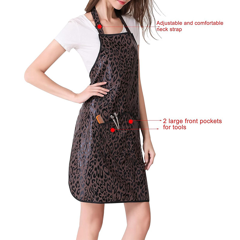 패션 새로운 레오파드 인쇄 홀터 앞치마 사용자 정의 제조 업체 원피스 도매 애완 동물 이발소 작업복 앞치마 인쇄 lo스토어 가기