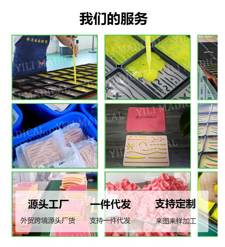 硅胶缝合训练适用于练习者练习外科切割、缝合和打结技术。满足您不同的练习需求。这是新型的缝合练习模块。仿真的皮肤质感,3层结构(皮肤//脂肪/肌肉)让操作和携带更方便。含有复合材料使劲拉扯打结线时不会出现硅胶断裂的情况。使用时您可以根据需要添加各种伤口进行模拟切割缝合练习。产品可以多次使用。