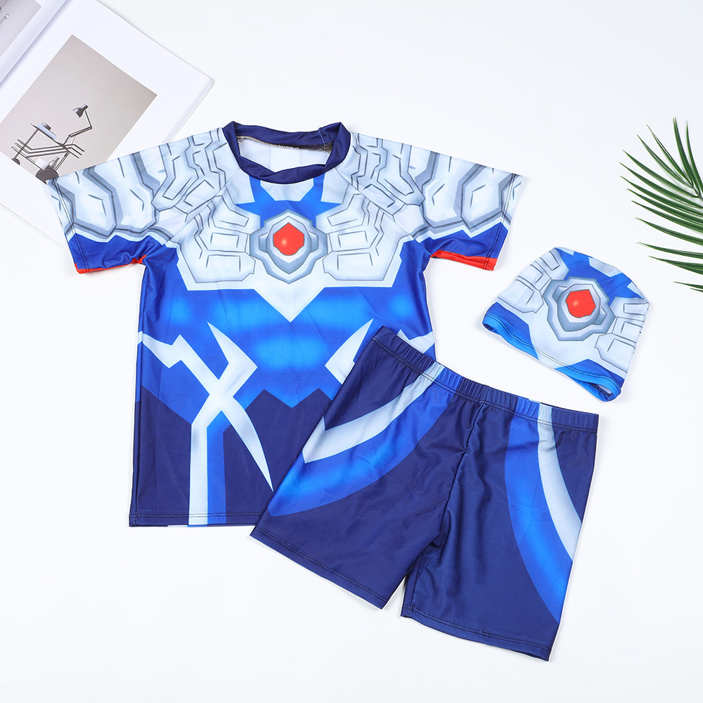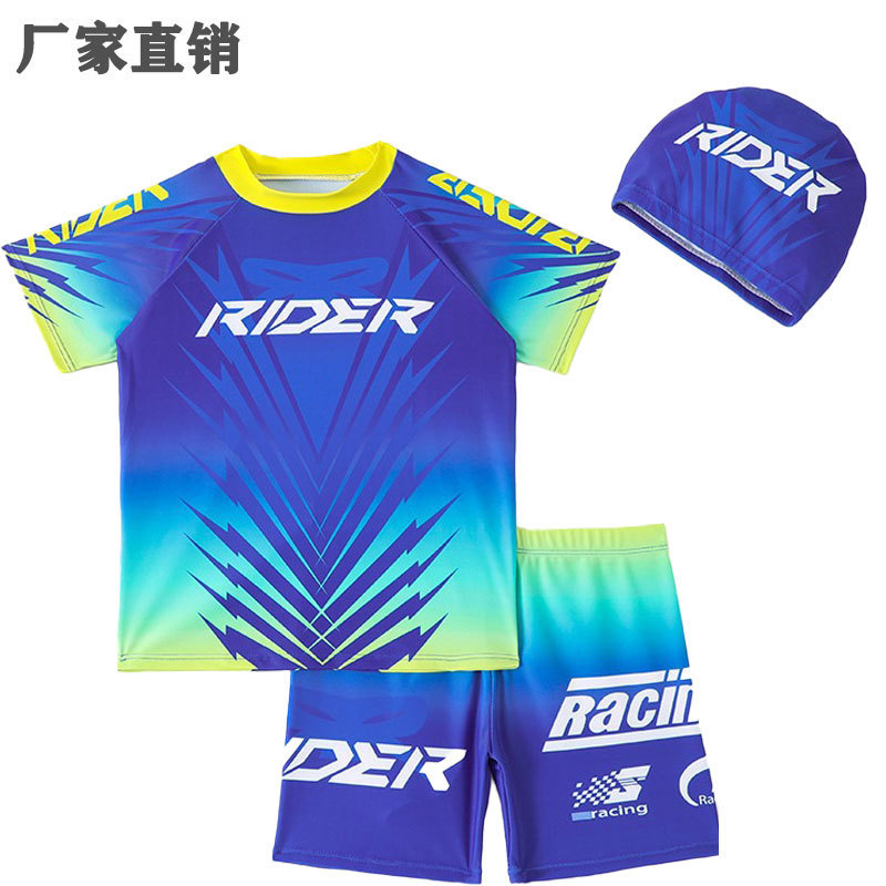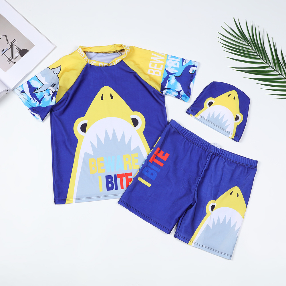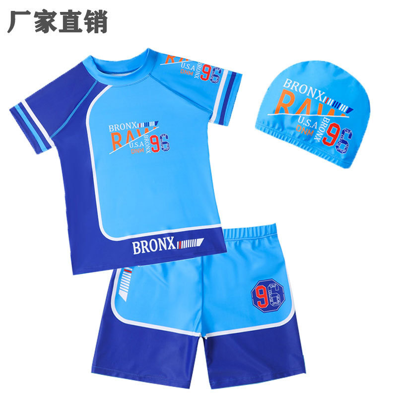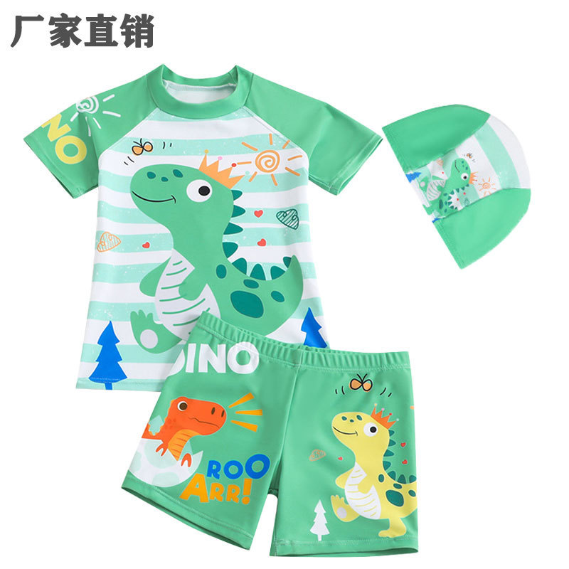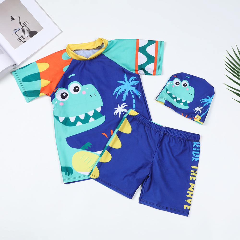 뜨거운 판매 새로운 소년의 수영복 빠른 건조 세트 캐주얼 만화 인쇄 교육 보수적 인 태양 보호 수영복 도매스토어 가기