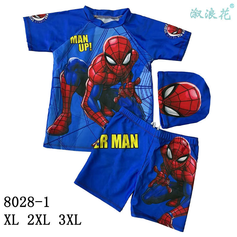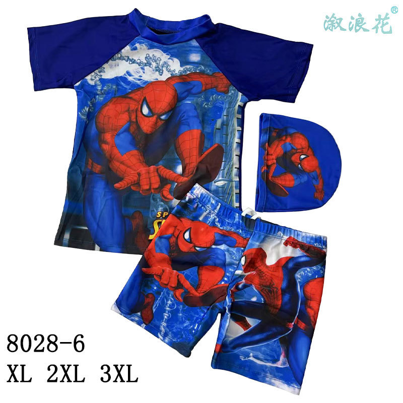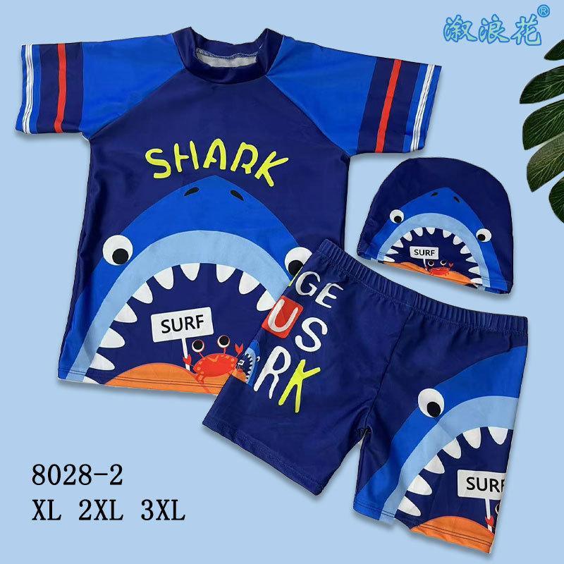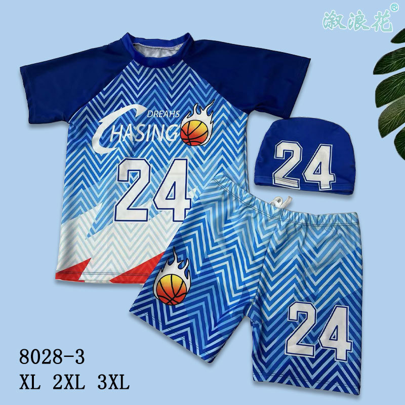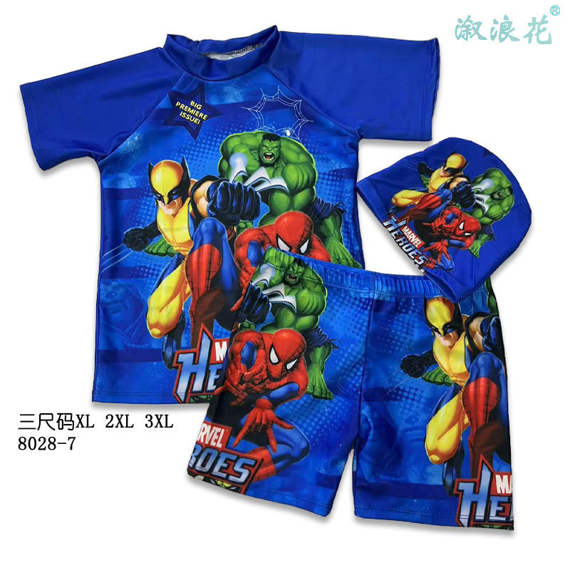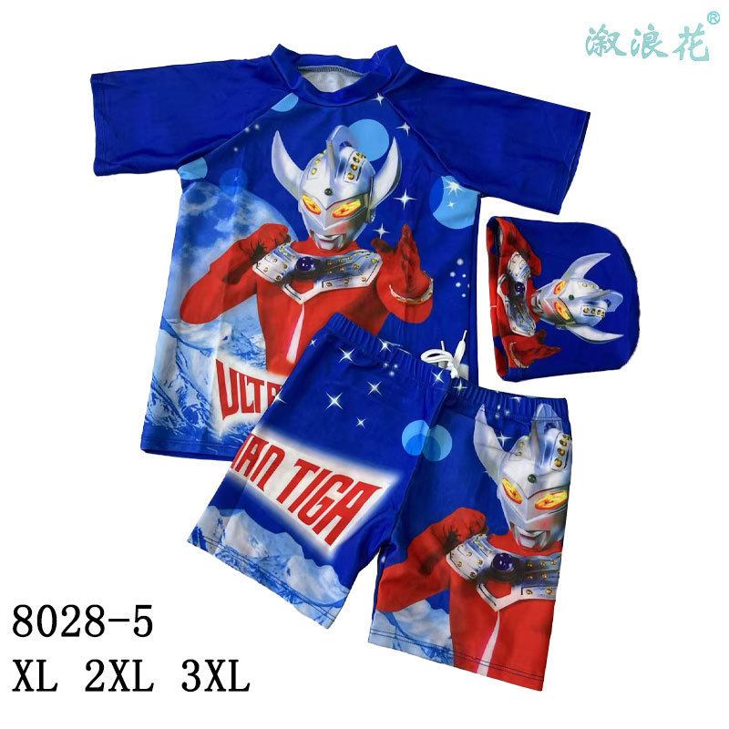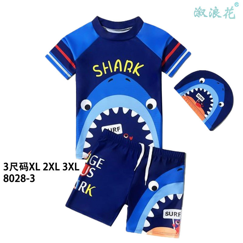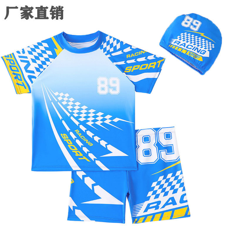 뜨거운 판매 새로운 소년의 수영복 빠른 건조 세트 캐주얼 만화 인쇄 교육 보수적 인 태양 보호 수영복 도매스토어 가기