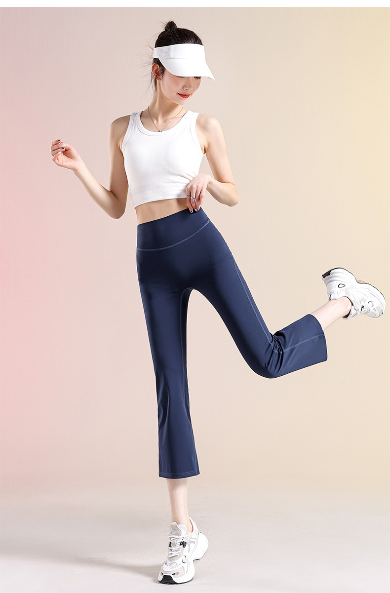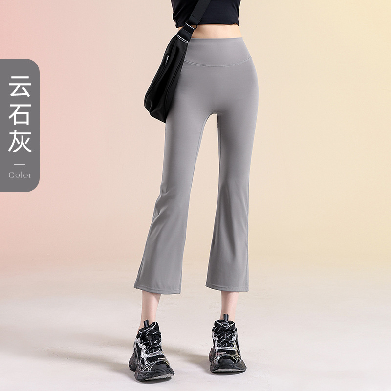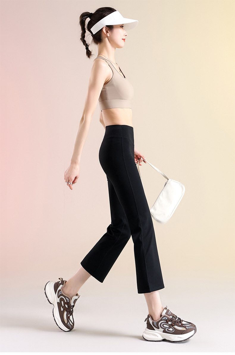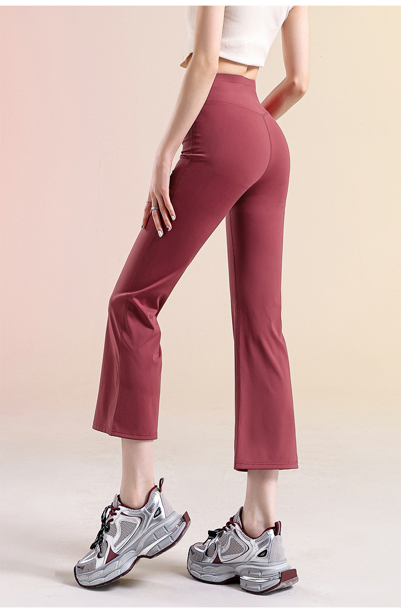 여성용 작은 약간 플레어 요가 바지, 하이 웨이스트 여름 얇은 통기성 필라테스 스포츠 피트니스 플레어 7점 바지스토어 가기