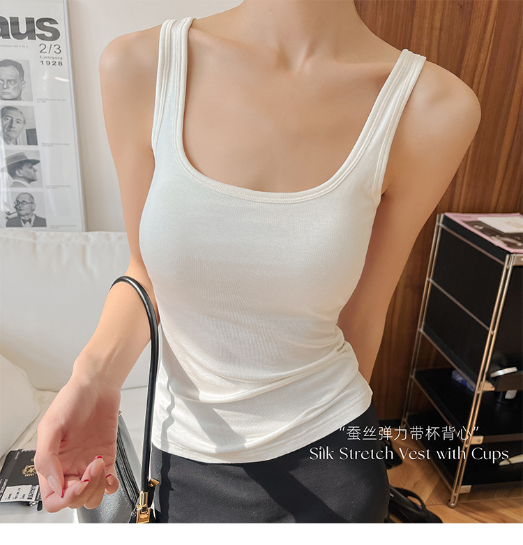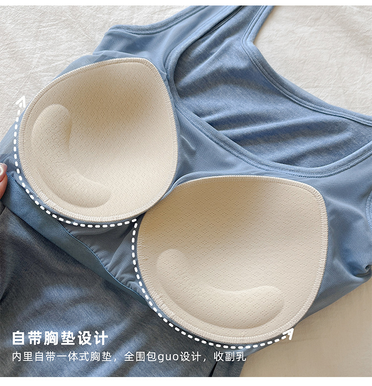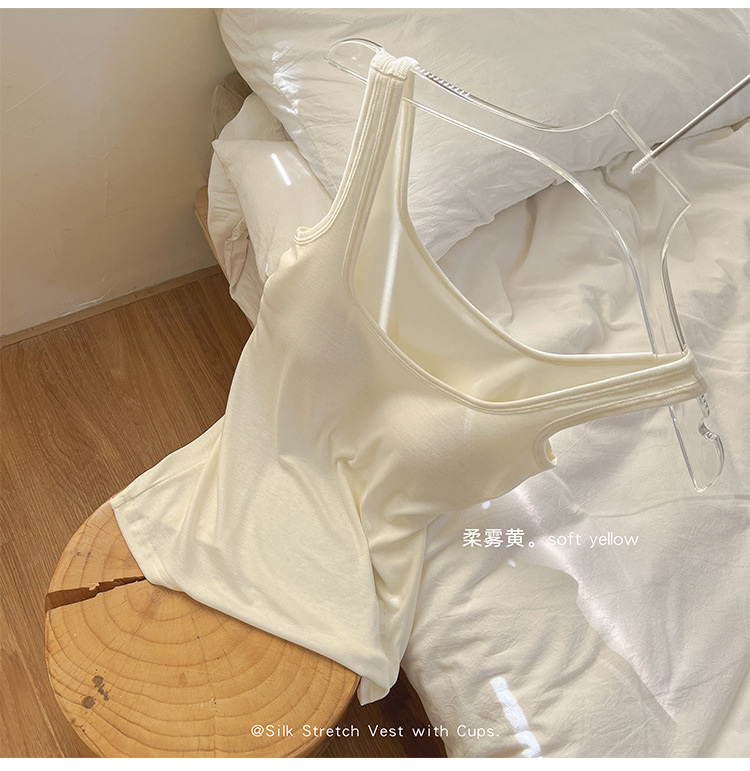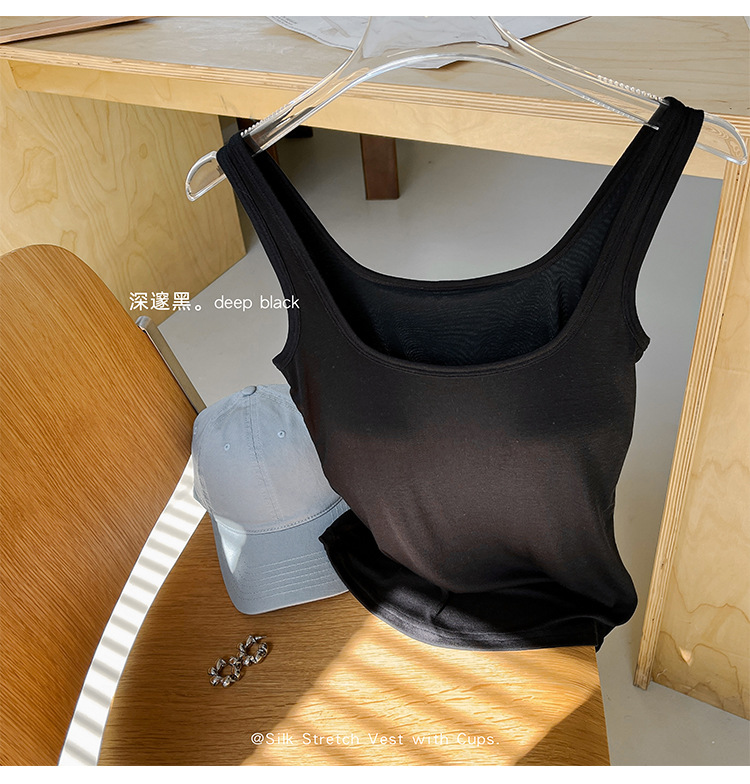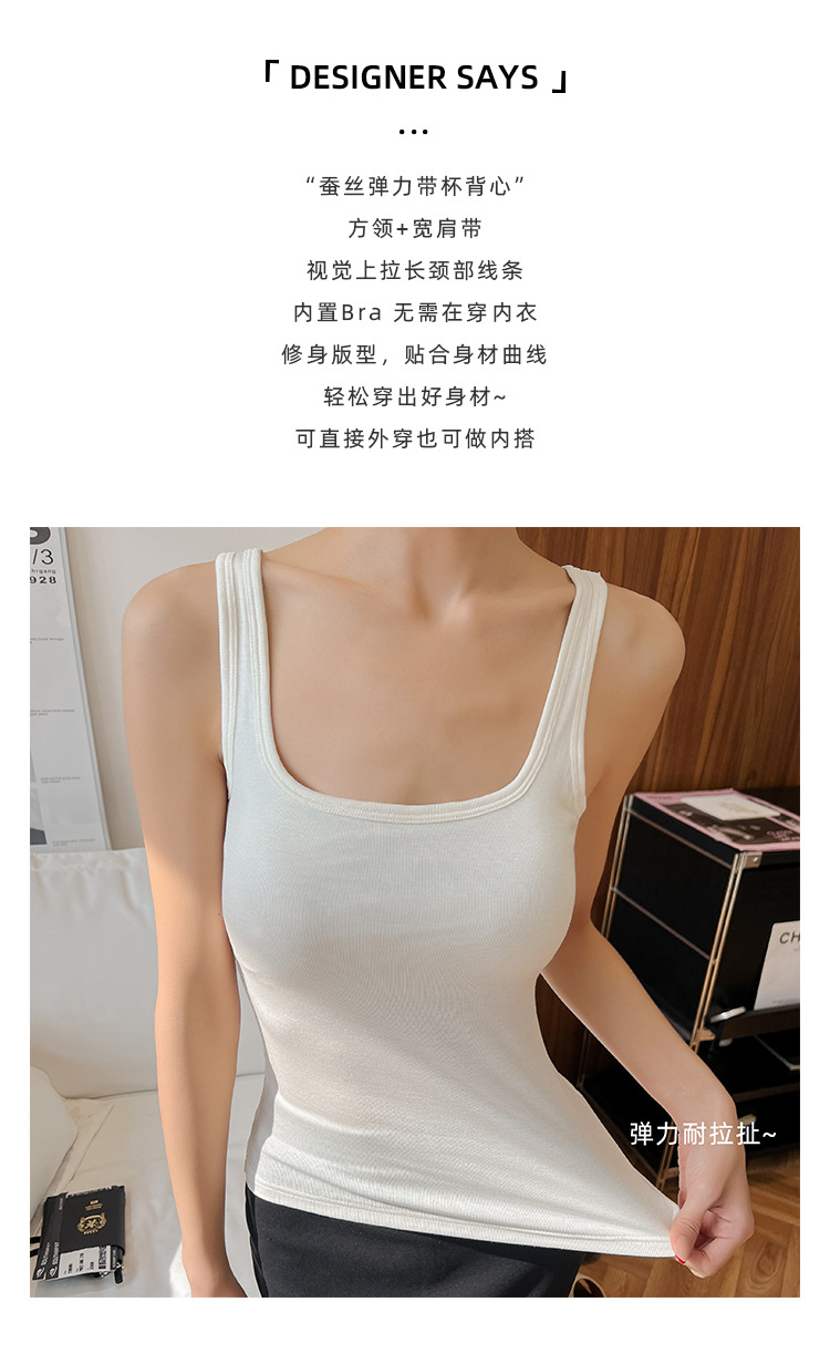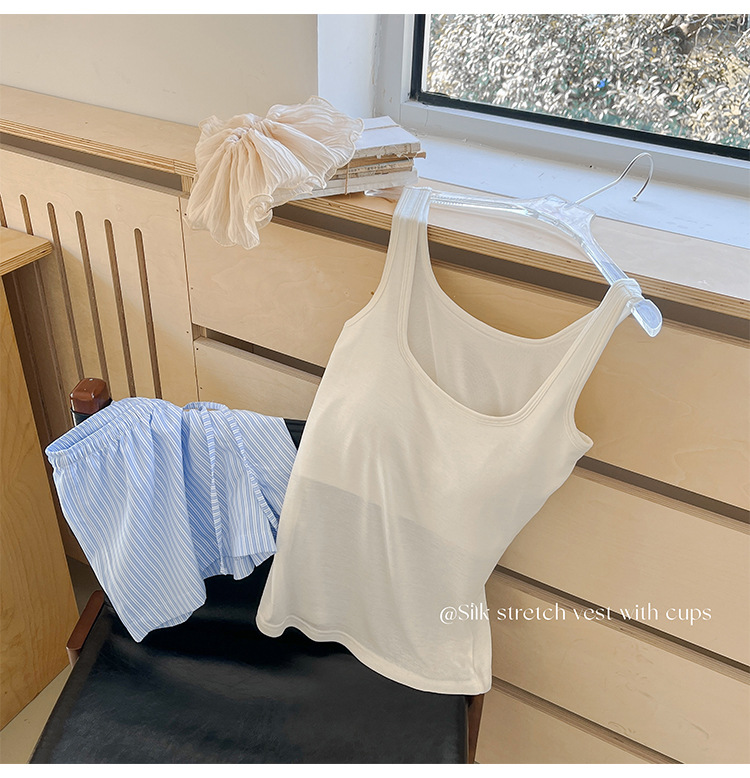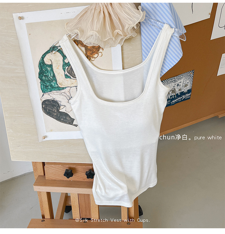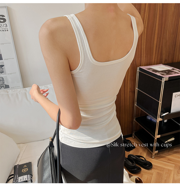 2025 봄과 여름 조끼 여자 내부 가슴 패드 실크 아이스 쿨 스트레치 컵 스퀘어 넥 통합 카미솔 조끼