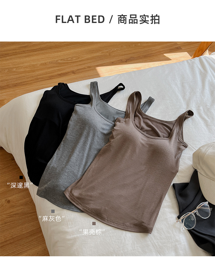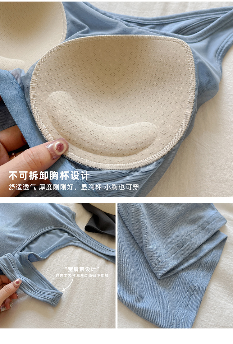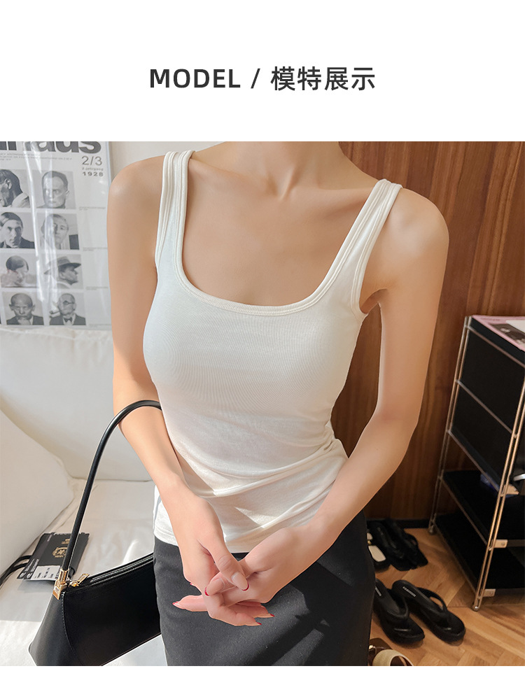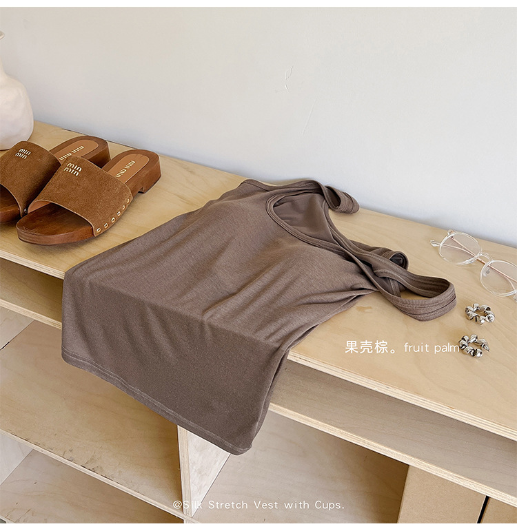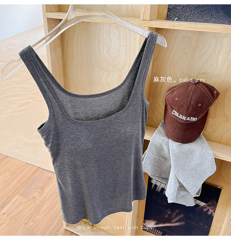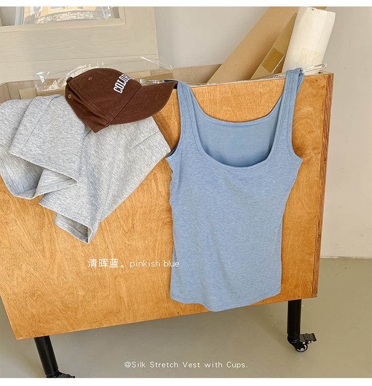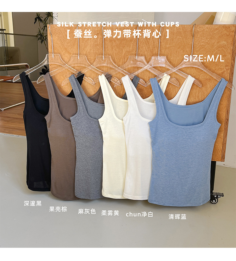 2025 봄과 여름 조끼 여자 내부 가슴 패드 실크 아이스 쿨 스트레치 컵 스퀘어 넥 통합 카미솔 조끼