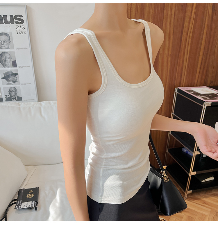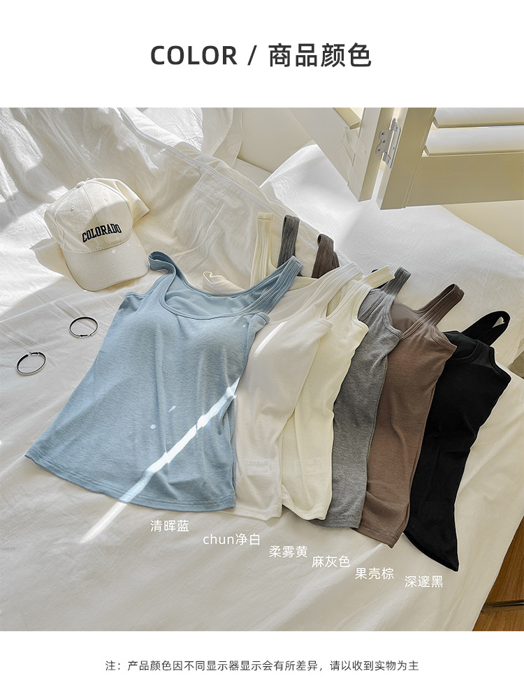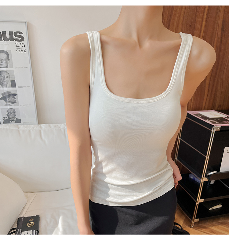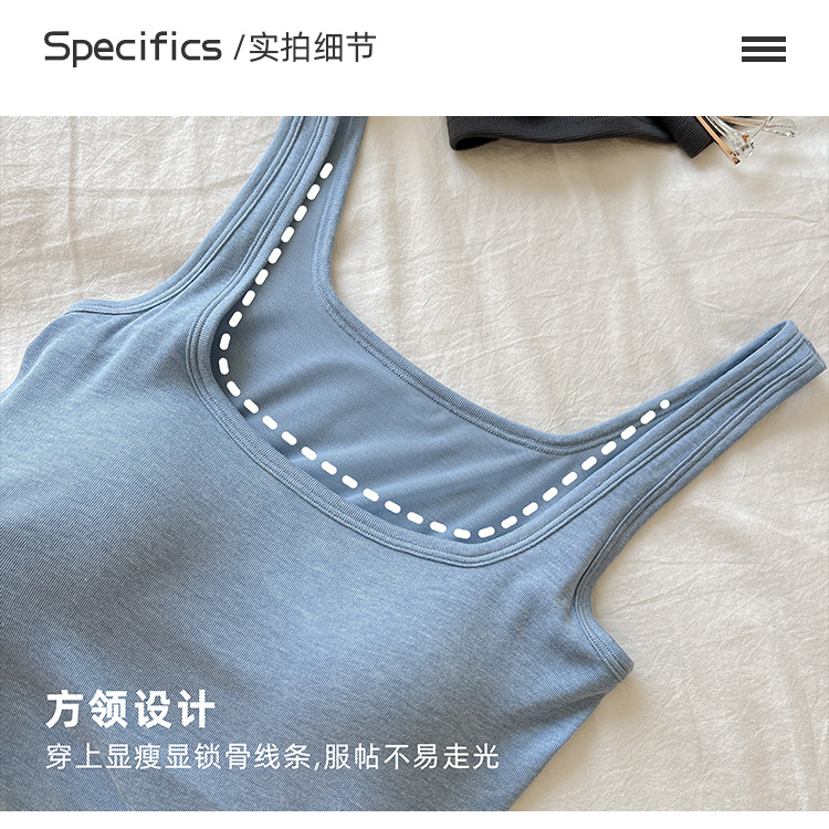 2025 봄과 여름 조끼 여자 내부 가슴 패드 실크 아이스 쿨 스트레치 컵 스퀘어 넥 통합 카미솔 조끼스토어 가기