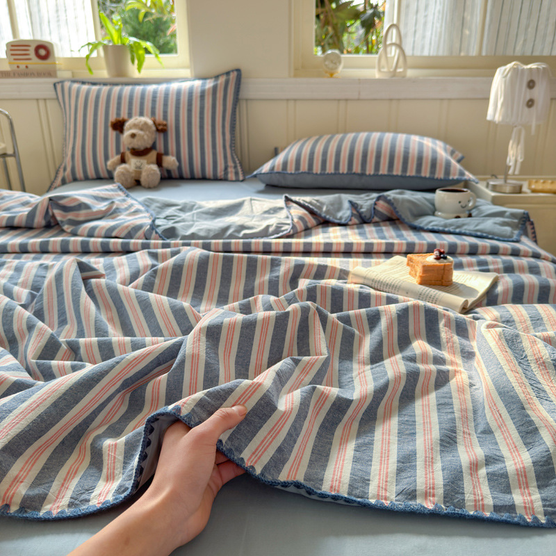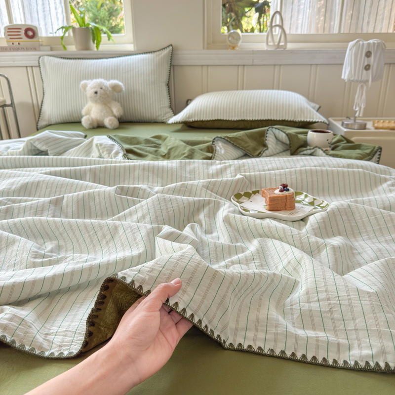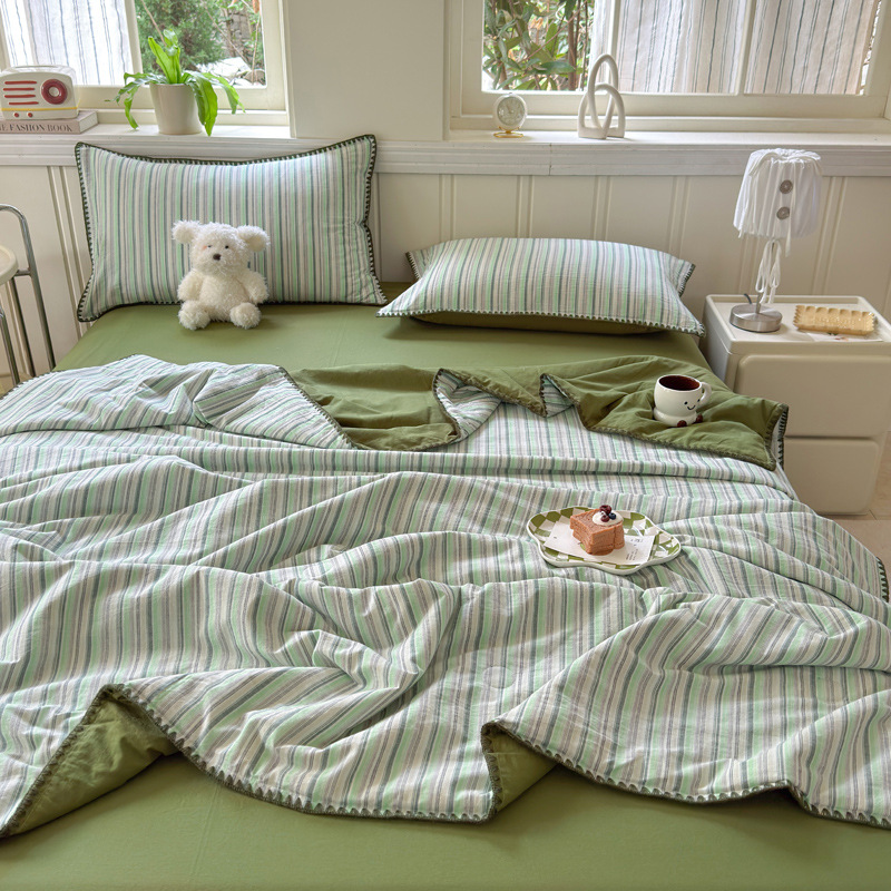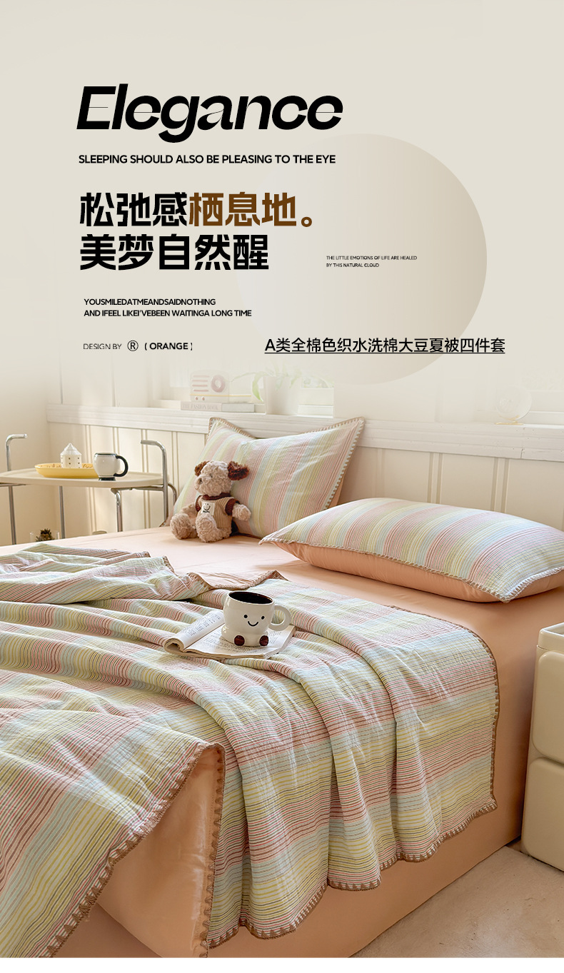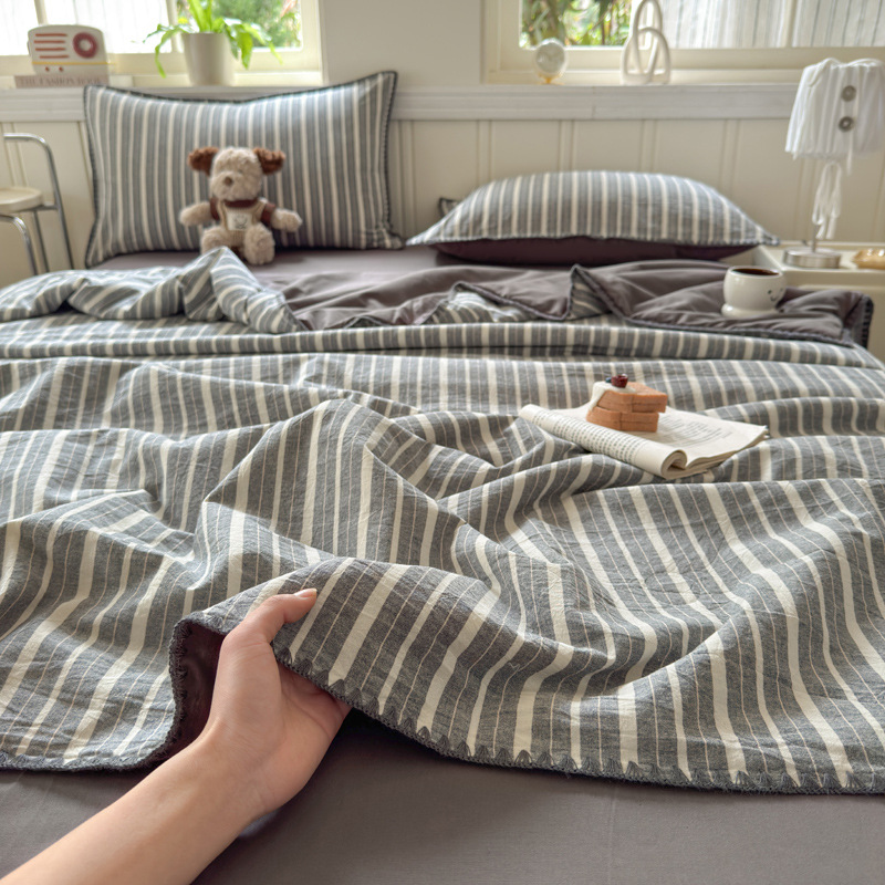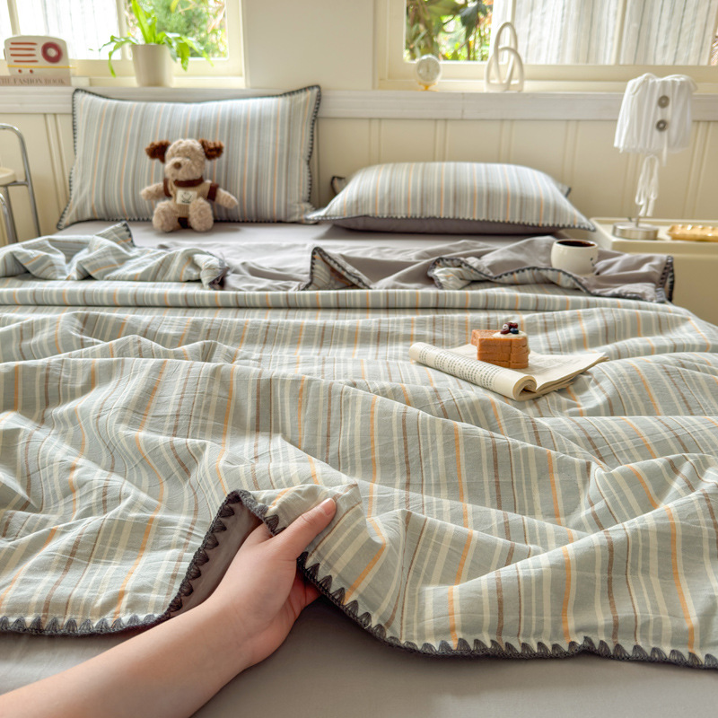 2025 새로운 스타일 원사 염색 워시 코튼 콩 여름 이불 4 피스 세트 가정용 여름 시원한 이불 에어컨 이불 편안하고 통기성이 뛰어나며 부드럽습니다.스토어 가기