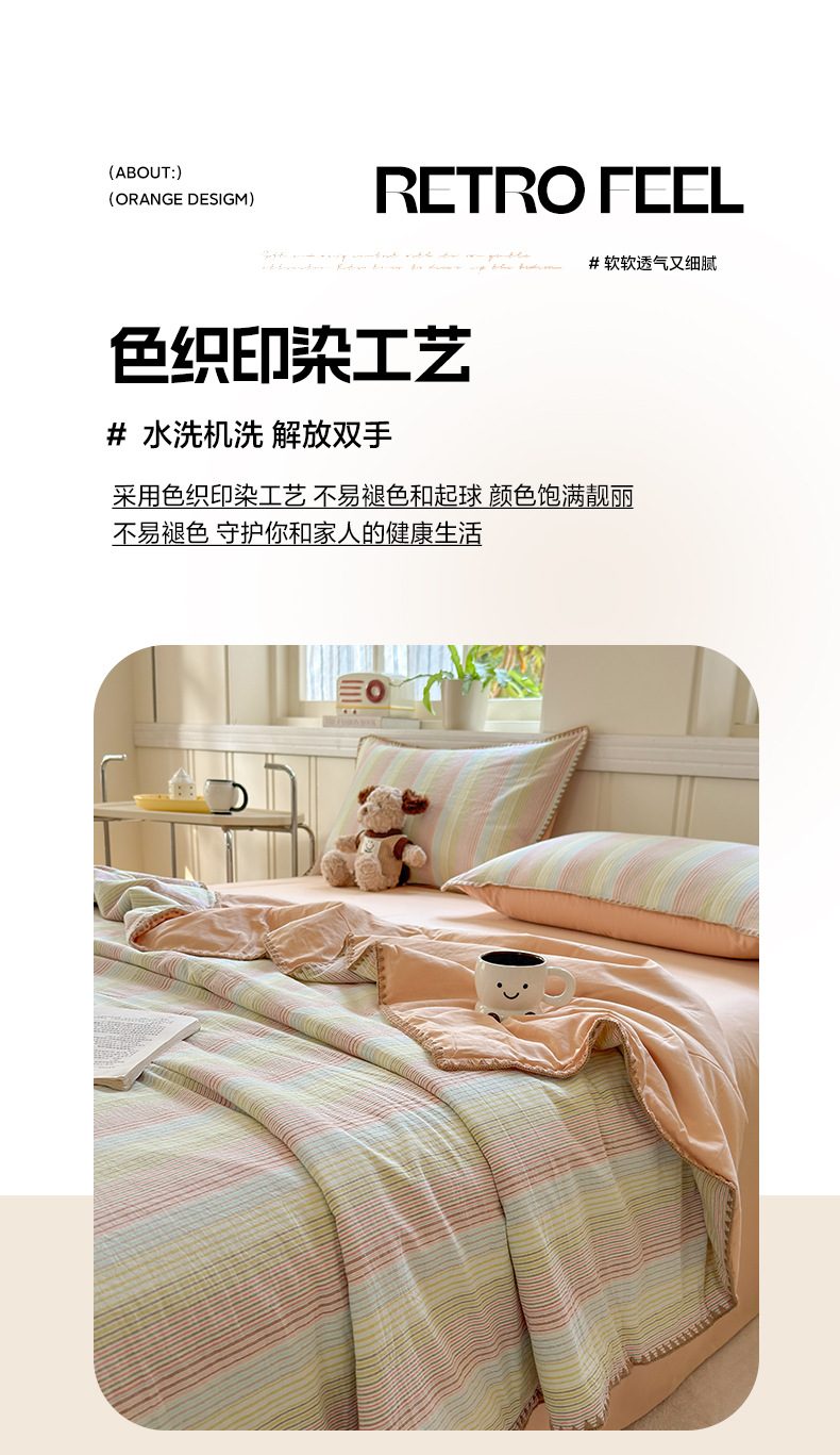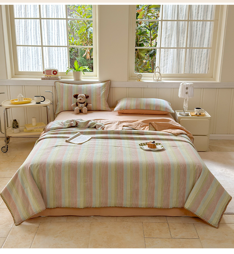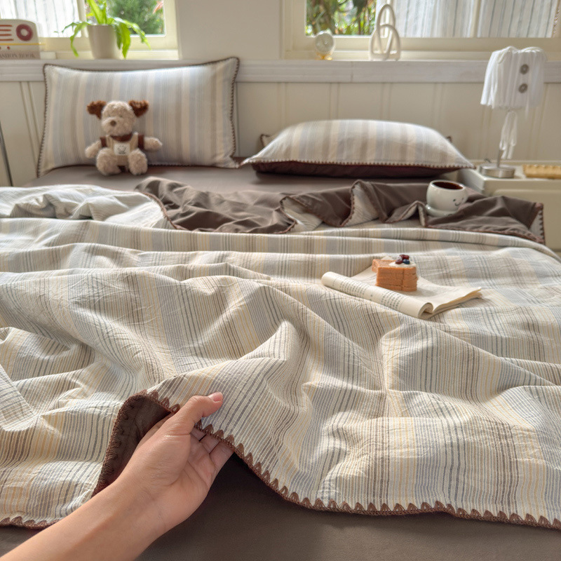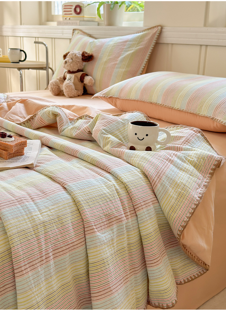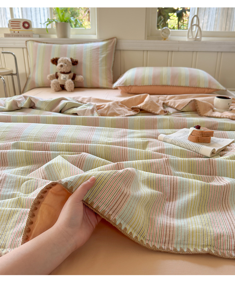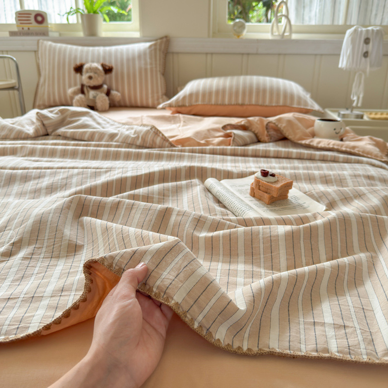 2025 새로운 스타일 원사 염색 워시 코튼 콩 여름 이불 4 피스 세트 가정용 여름 시원한 이불 에어컨 이불 편안하고 통기성이 뛰어나며 부드럽습니다.스토어 가기