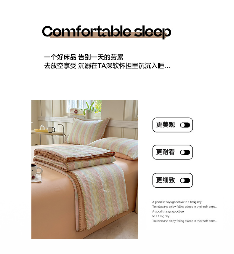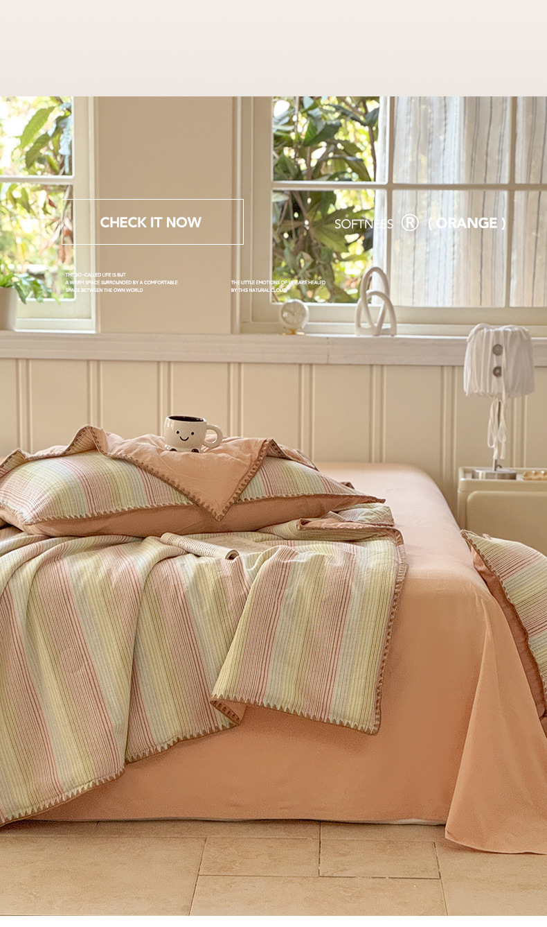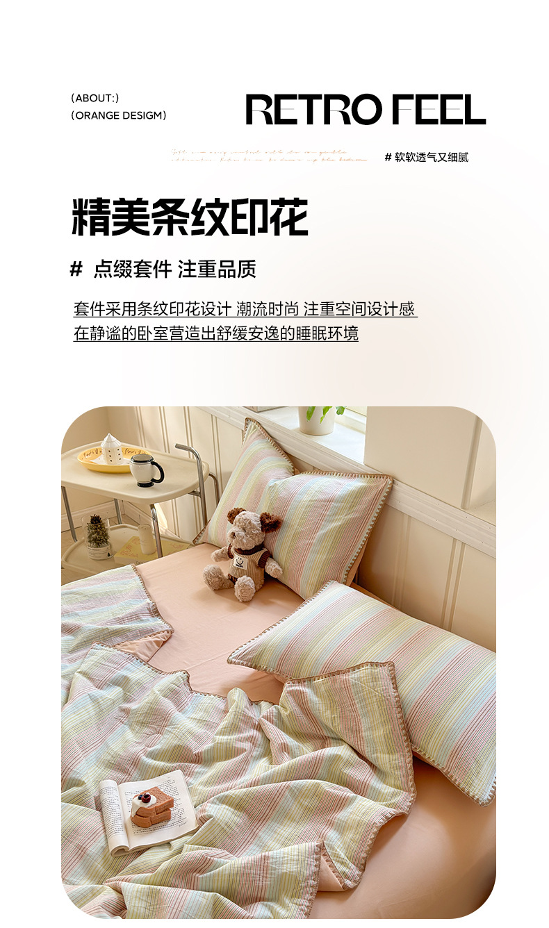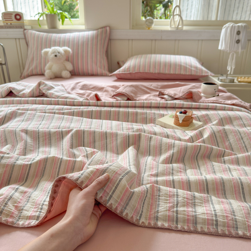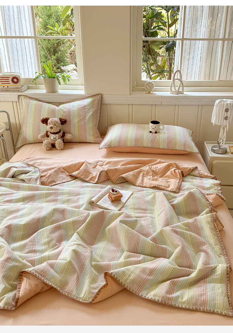 2025 새로운 스타일 원사 염색 워시 코튼 콩 여름 이불 4 피스 세트 가정용 여름 시원한 이불 에어컨 이불 편안하고 통기성이 뛰어나며 부드럽습니다.스토어 가기