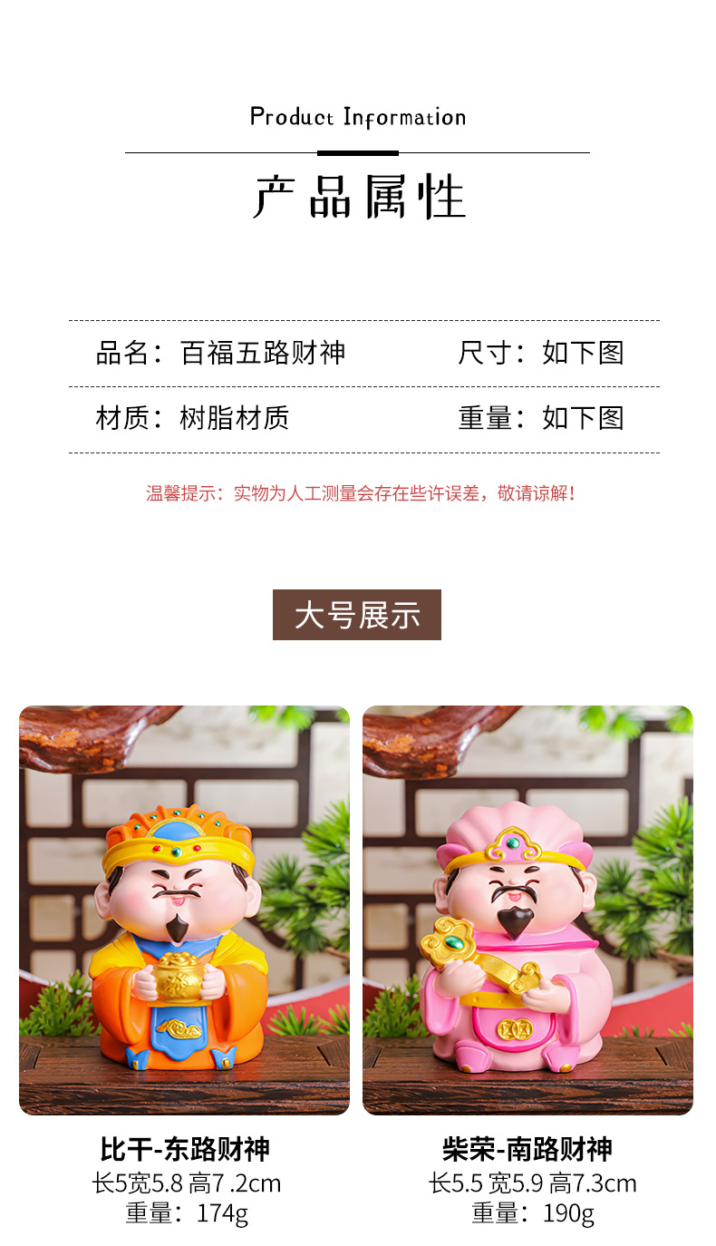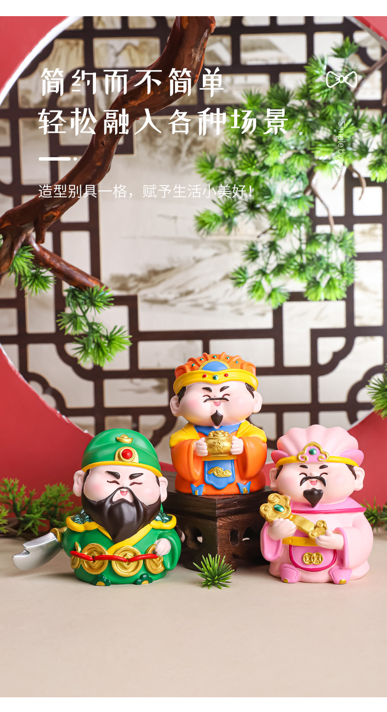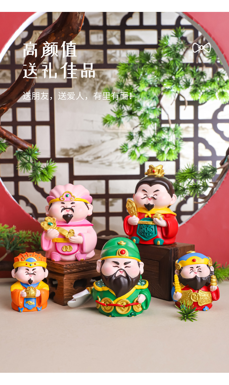 부 수지 공예의 바이푸 울루 신 장식 부의 귀여운 작은 신 중국 스타일 홈 장식 자동차 장식품 축제