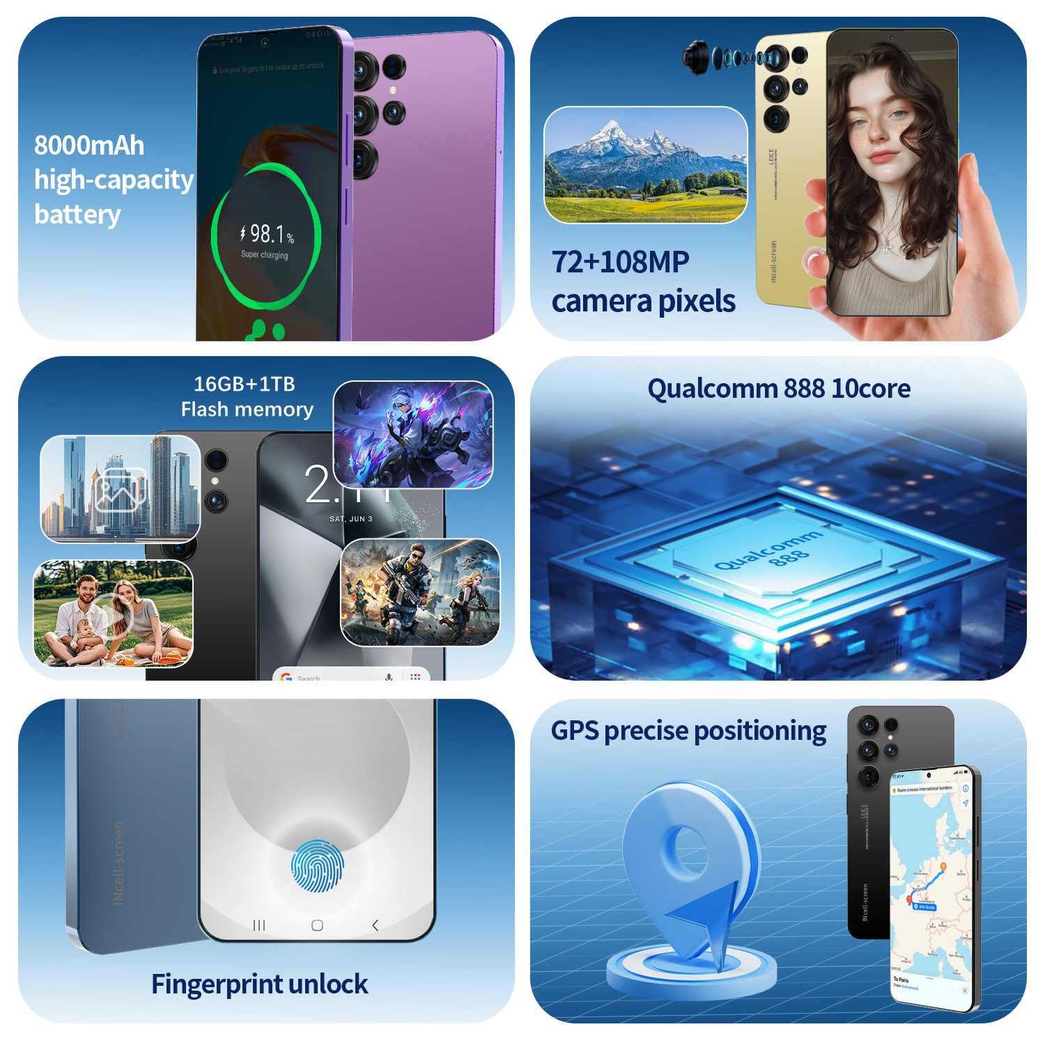쿠고 크로스보더 스마트폰 S24 울트라 올인원 기기 7.3inch 안드로이드 시스템 8.1(2+16)