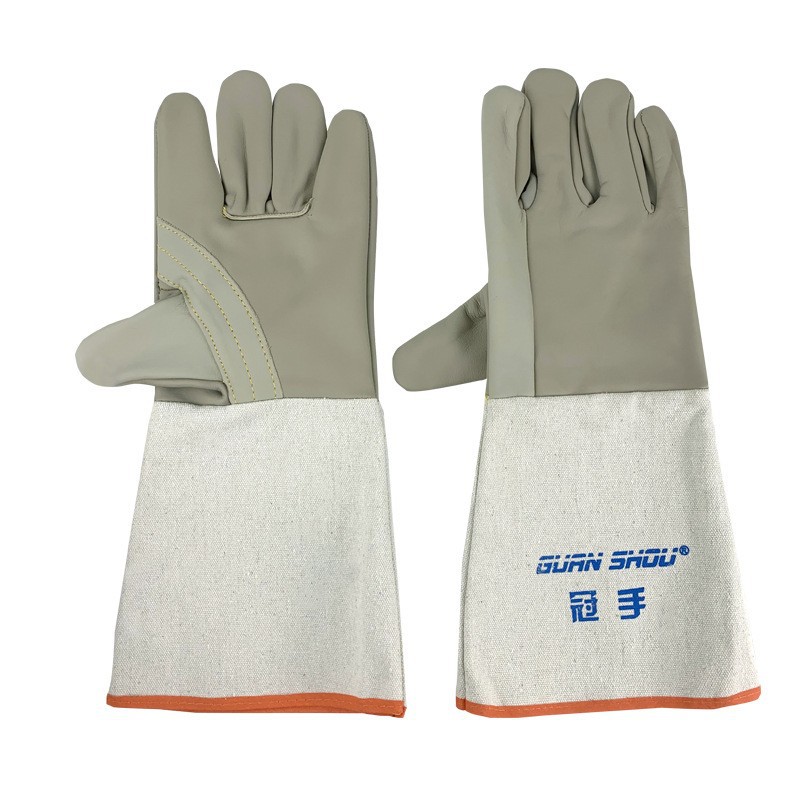 Guanhao 용접 장갑 캔버스 넥 가구 가죽 긴 화상 방지 단열 내마모성 용접 노동 보호 장갑