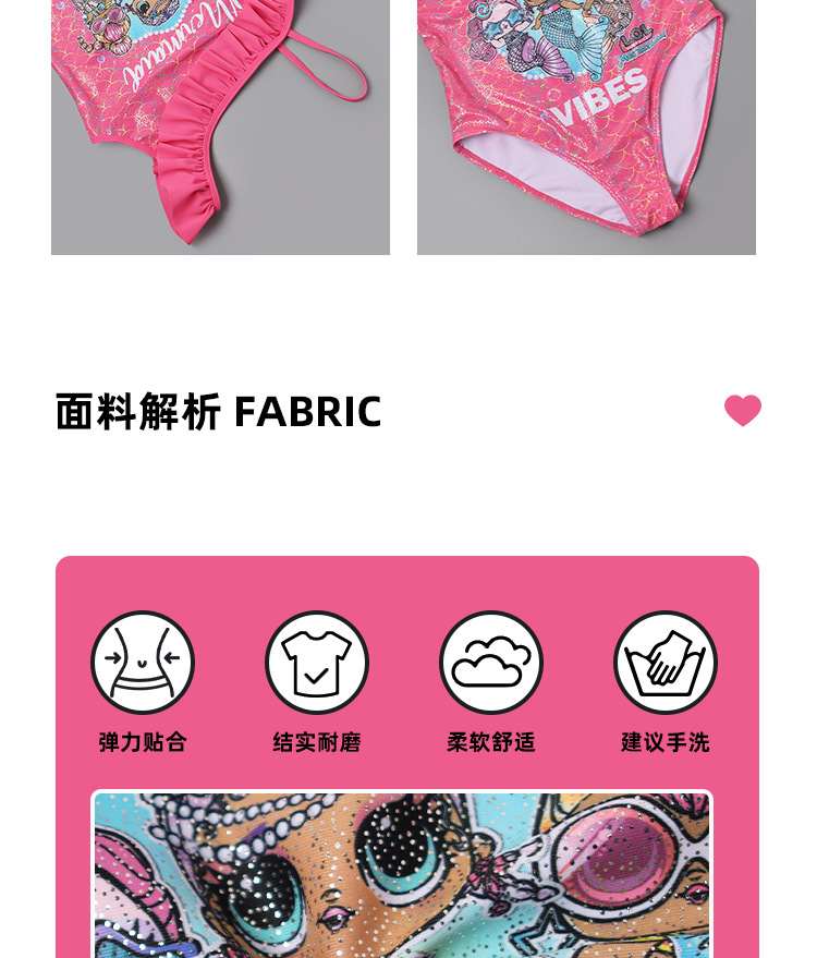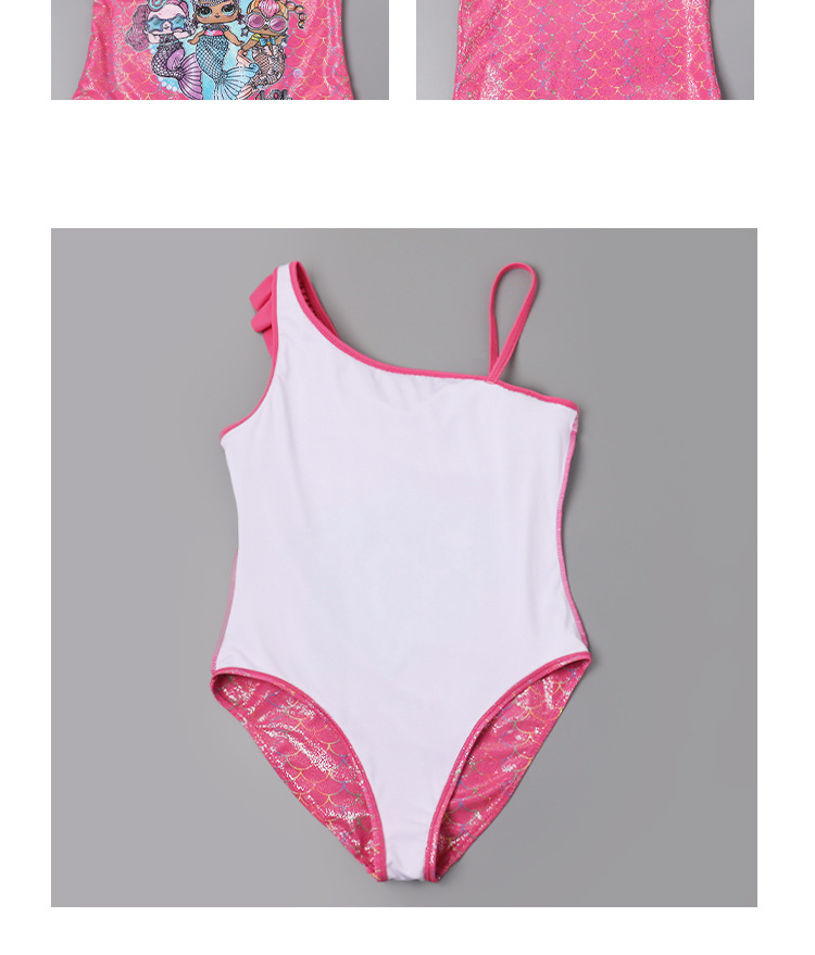 새로운 크로스보더 여아 원피스 수영복, 러플 오프숄더 여아 트라이앵글 원피스, 러브 머메이드 수영복
