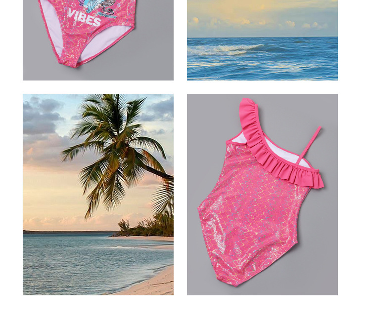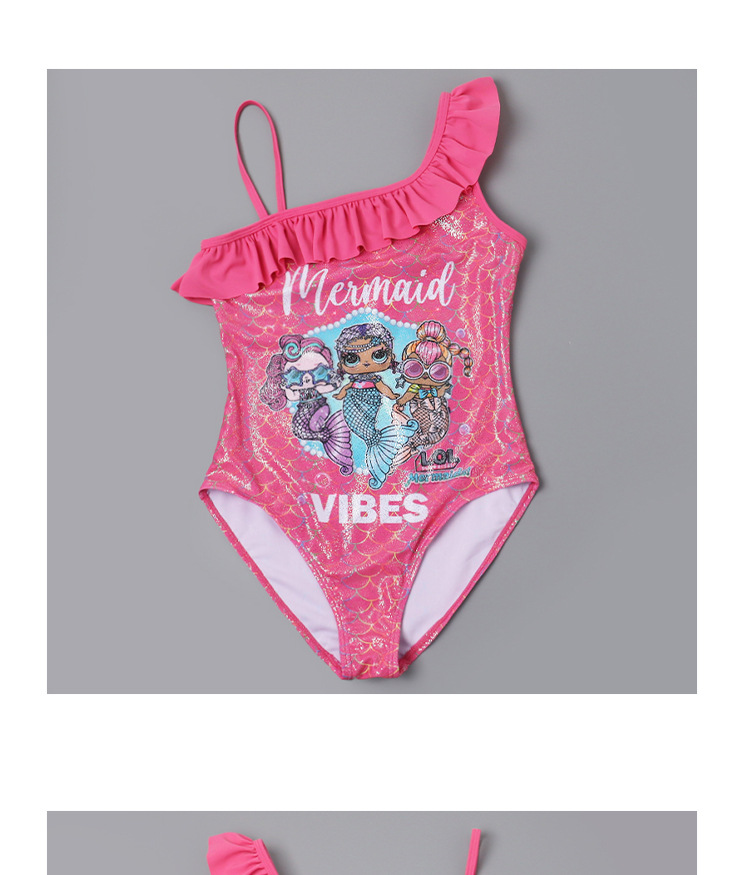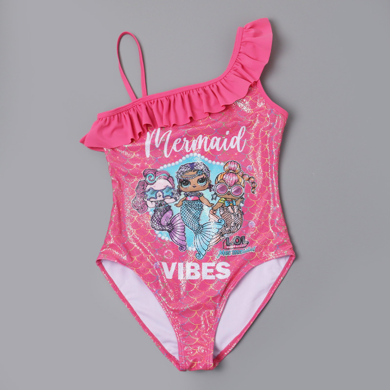 새로운 크로스보더 여아 원피스 수영복, 러플 오프숄더 여아 트라이앵글 원피스, 러브 머메이드 수영복스토어 가기