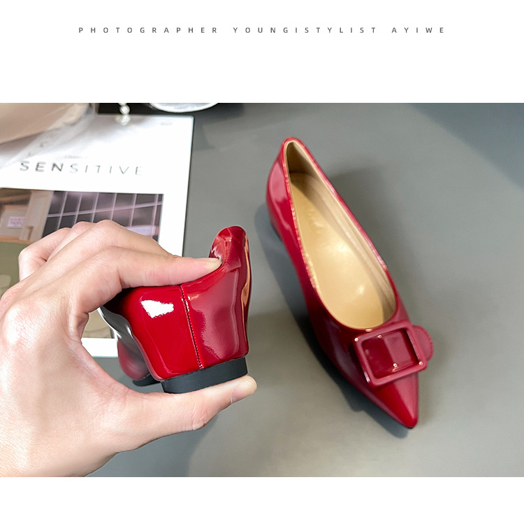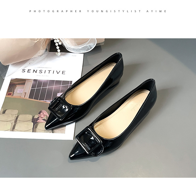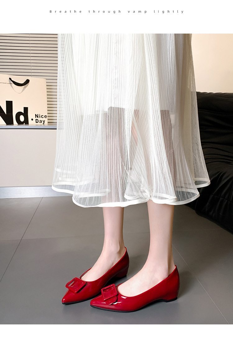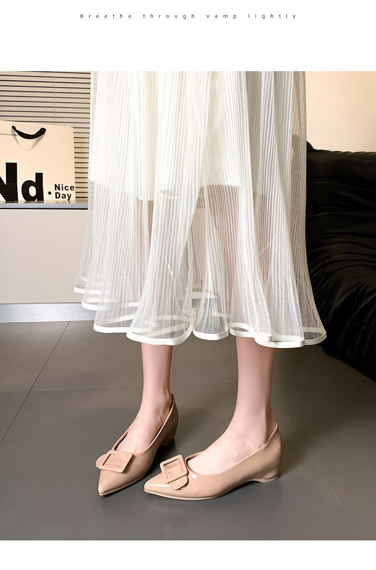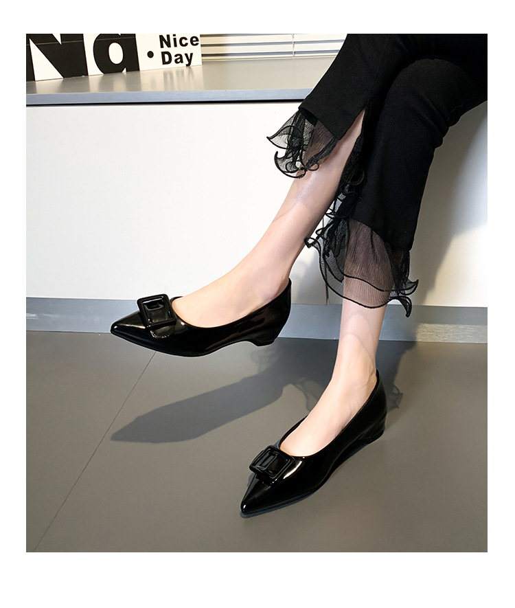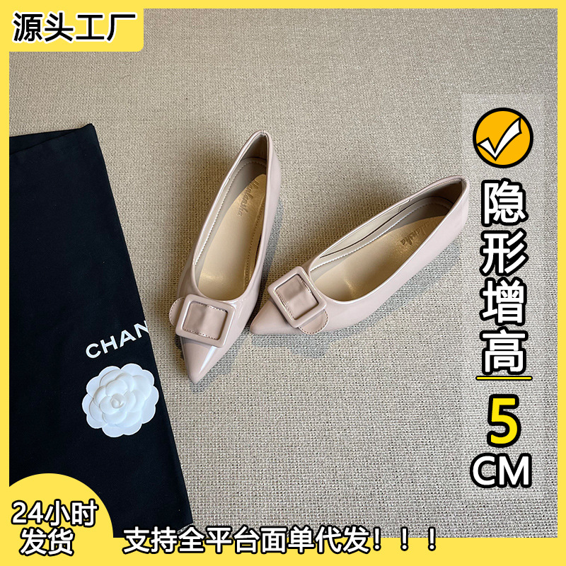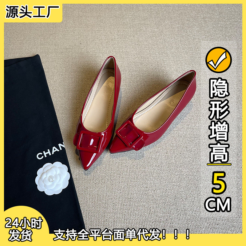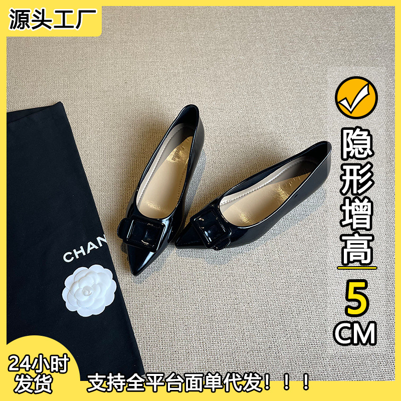높이 5cm 크기의 포도 엄마 증가 신발 여성 2025 년 봄과 가을 뾰족한 가죽 여성 신발 고급 굽 작업 신발 OL스토어 가기