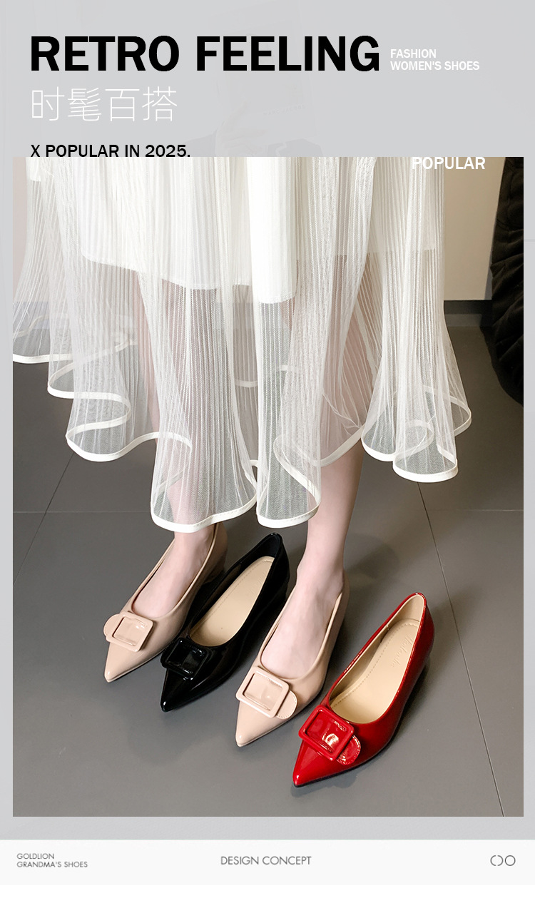 높이 5cm 크기의 포도 엄마 증가 신발 여성 2025 년 봄과 가을 뾰족한 가죽 여성 신발 고급 굽 작업 신발 OL