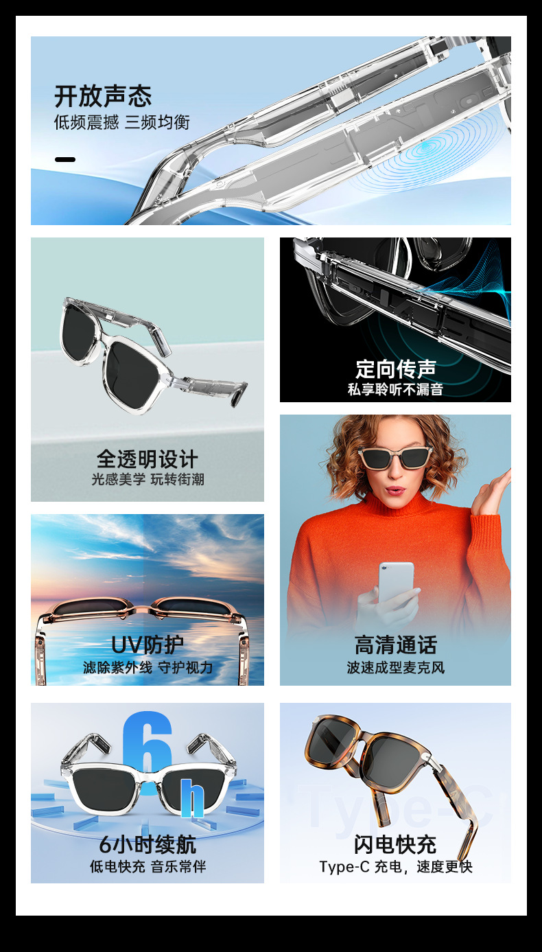 G01 새로운 투명 AI 번역 스마트 안경 블랙 기술 전화 음악 블루투스 안경 소스 공장 듣기스토어 가기