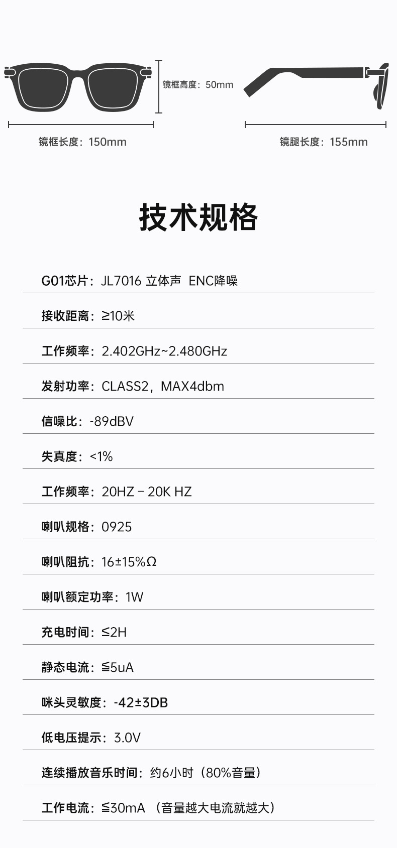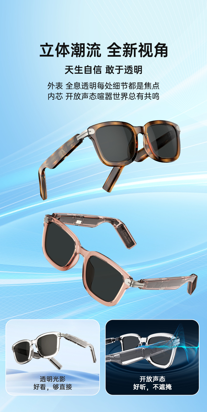 G01 새로운 투명 AI 번역 스마트 안경 블랙 기술 전화 음악 블루투스 안경 소스 공장 듣기
