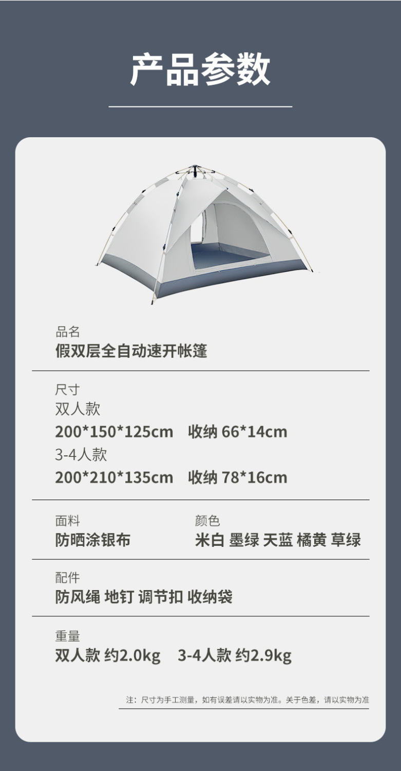 텐트 야외 태양 보호 두꺼운 태양 보호 빠른 열기 자동 두 배 3-4 인 야외 캠핑 해변 텐트스토어 가기