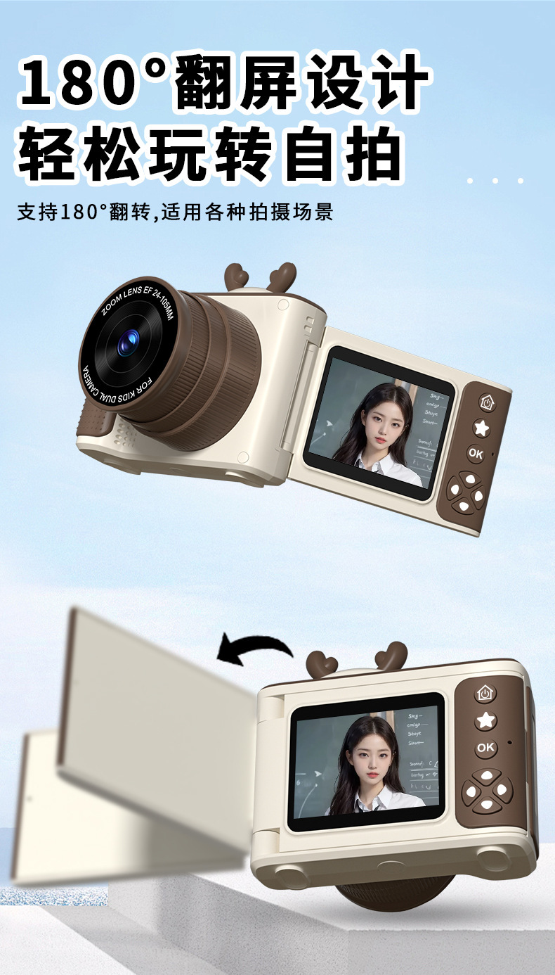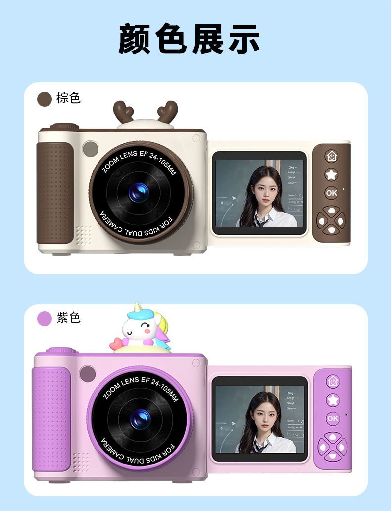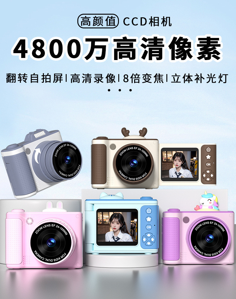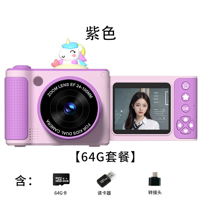 S6 디지털 카메라 플립 스크린 카메라 학생 파티 높은 색상 가치 어린이 만화 카메라 HD 학생 카메라 선물